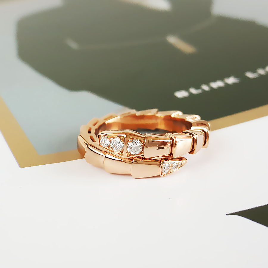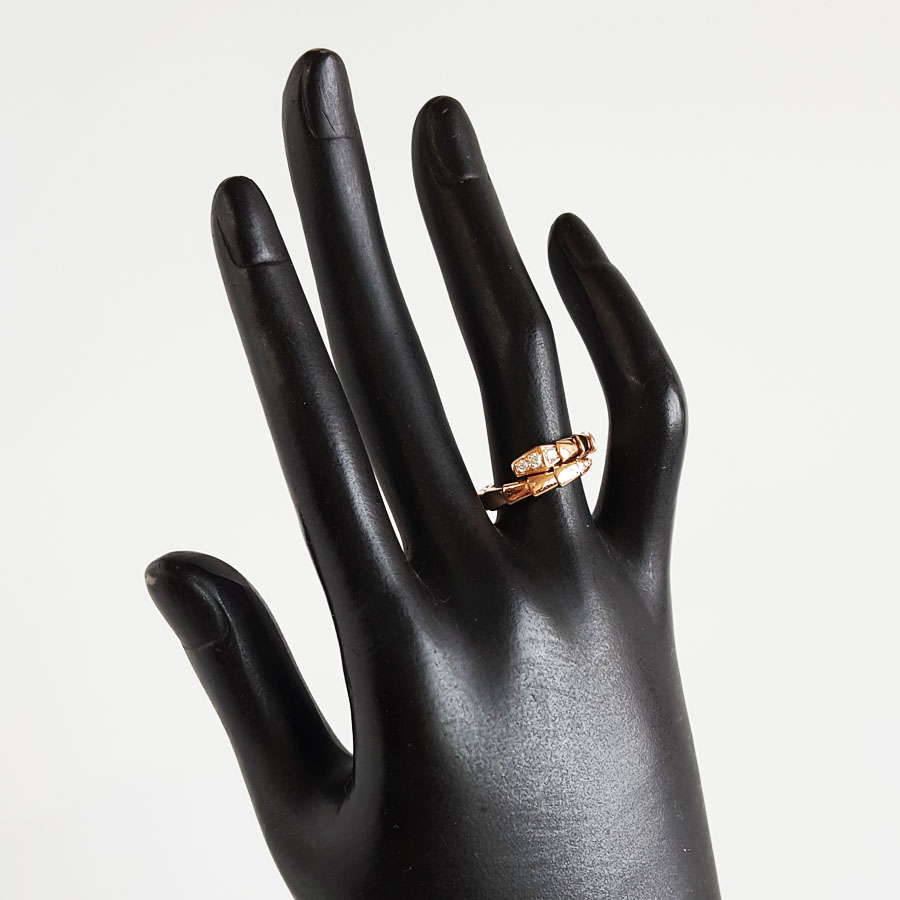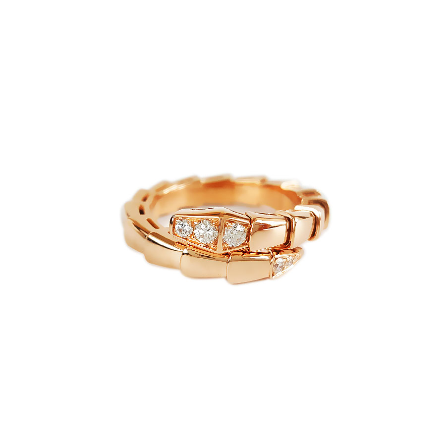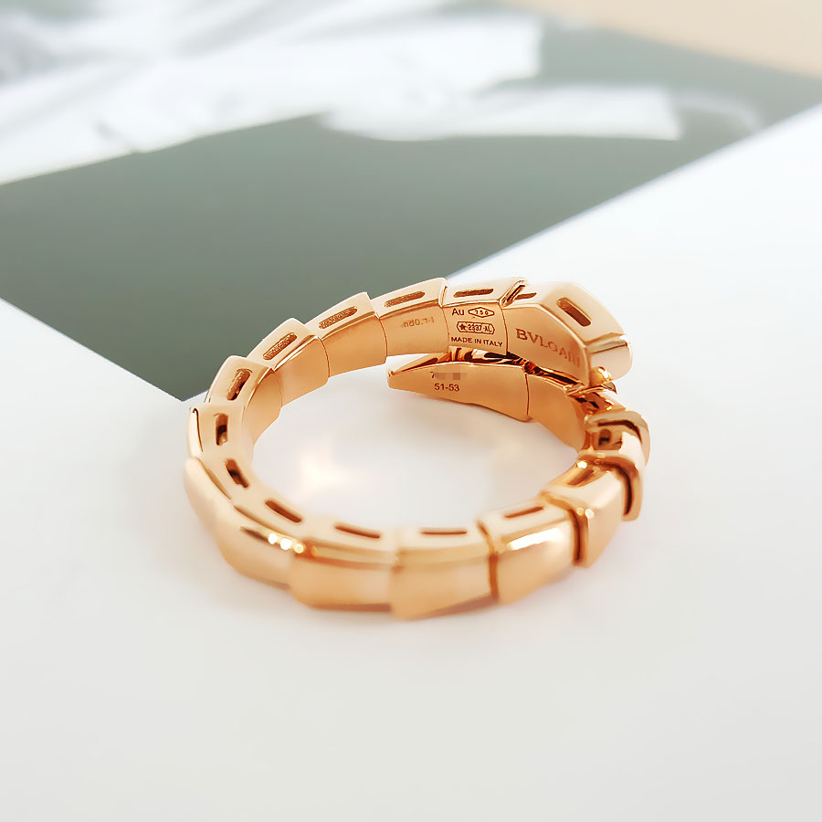 【95新】BVLGARI宝格丽Serpenti Viper系列AN85991418K玫瑰金首尾钻蛇骨戒指51-53号(M码)中性款现售价:22300!140725TH02