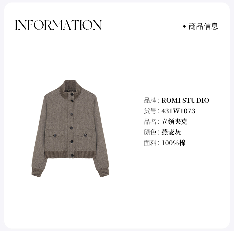 ROMI STUDIO“自我轮廓”*羊毛人字斜纹立领短款外套 431W1073