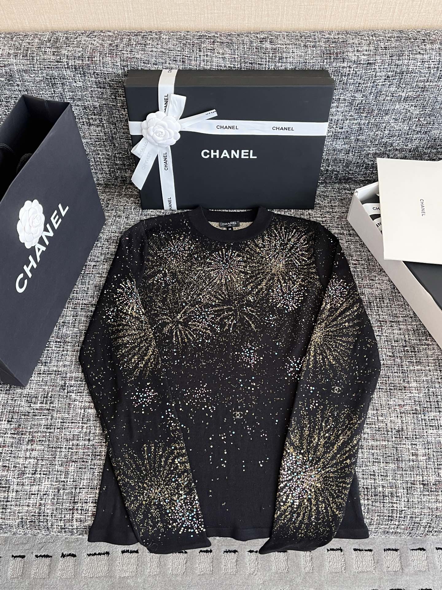 CHANEL 香奈儿25秋冬新款毛衣🐮34100购买Zp拆解打造,订织订染美利奴进口面料🐮 真正用到100%跟原版材料对版出货💪工艺放大看细节除还原度接近98以上 做工也无敌了🔥真正做到1:1还原 直接闭着眼购买👀码数:S M L