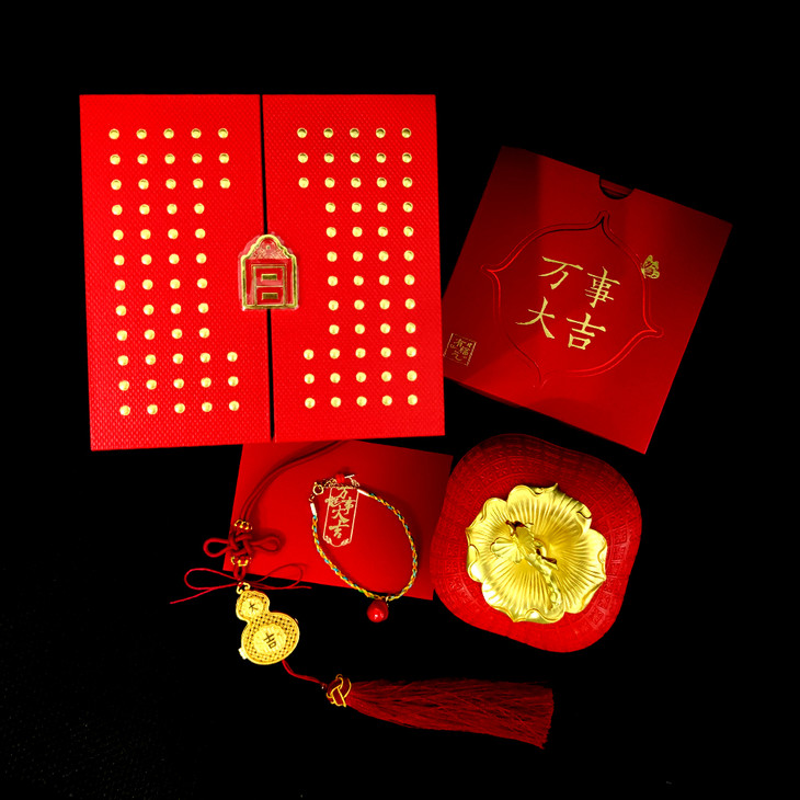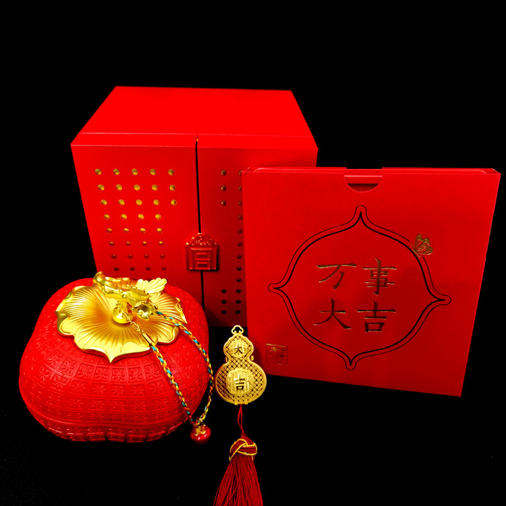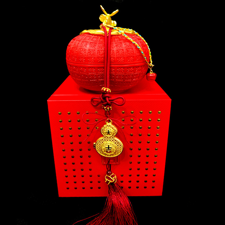 工行《万事大吉》挂件套装 含大吉葫芦挂件、柿柿如意吊坠、柿来运转宝盒,总共含金0.2克和纯银15.6克