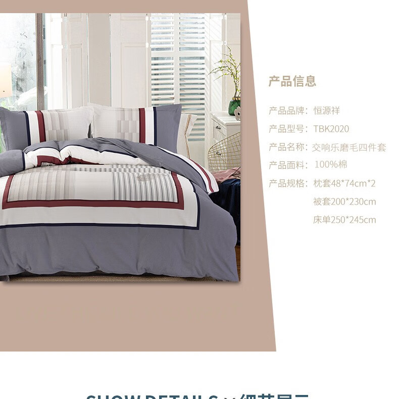恒源祥礼业TBK2020交响乐磨毛四件套全棉冬季套件 1.5m(被套:200*230cm)