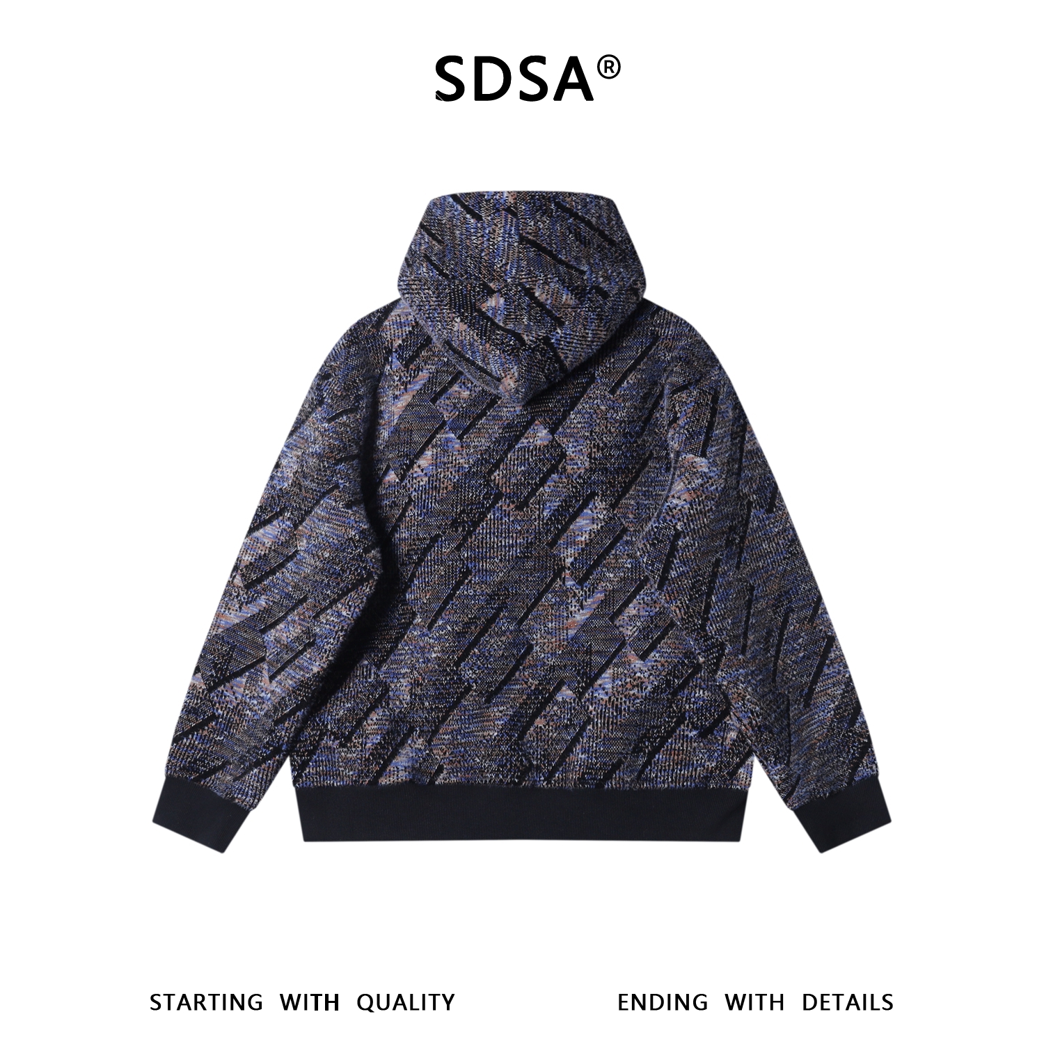 SDSA男士秋冬新款痞帅男装时尚绒毛撞色斜拉链连帽卫衣外套百搭