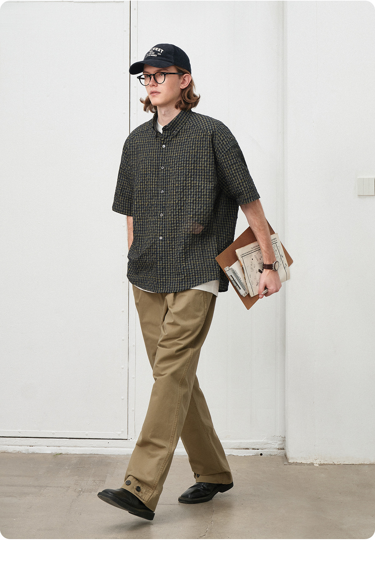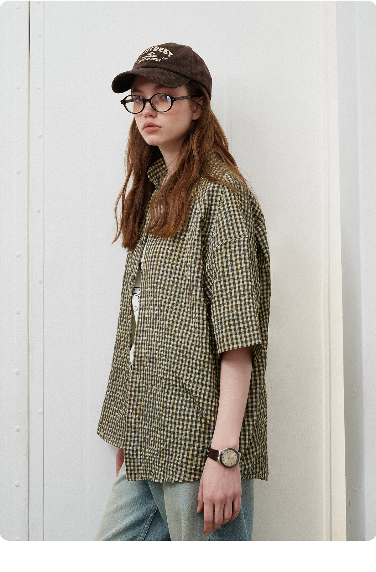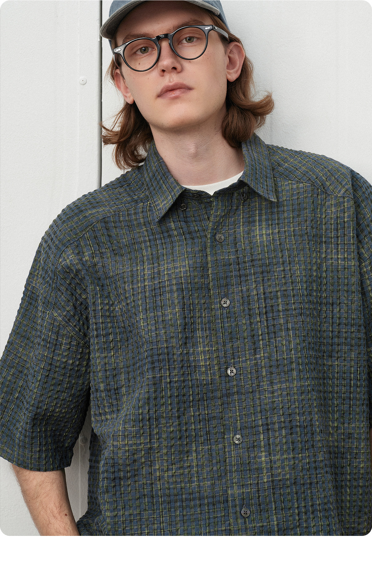 714street泡泡纱格子短袖衬衫男25春夏新款宽松轻薄透气情侣衬衣