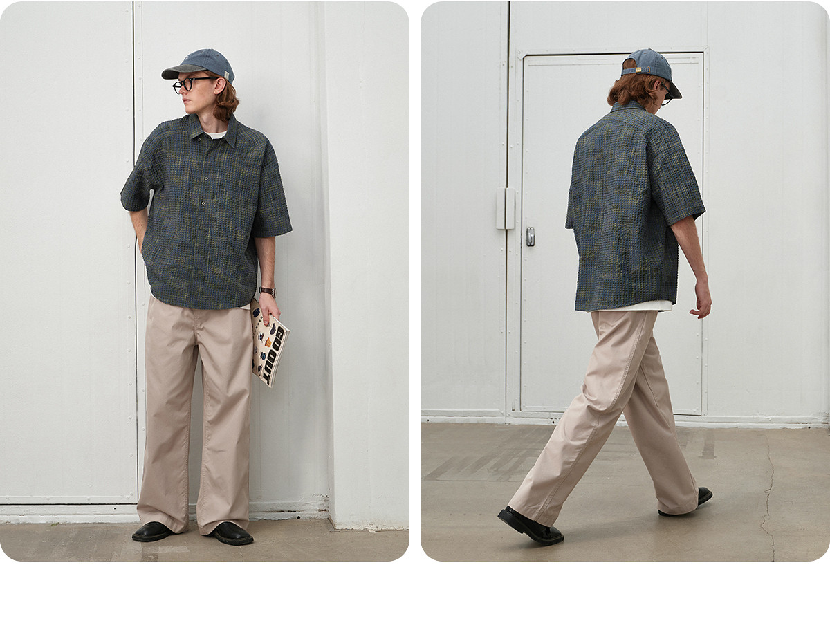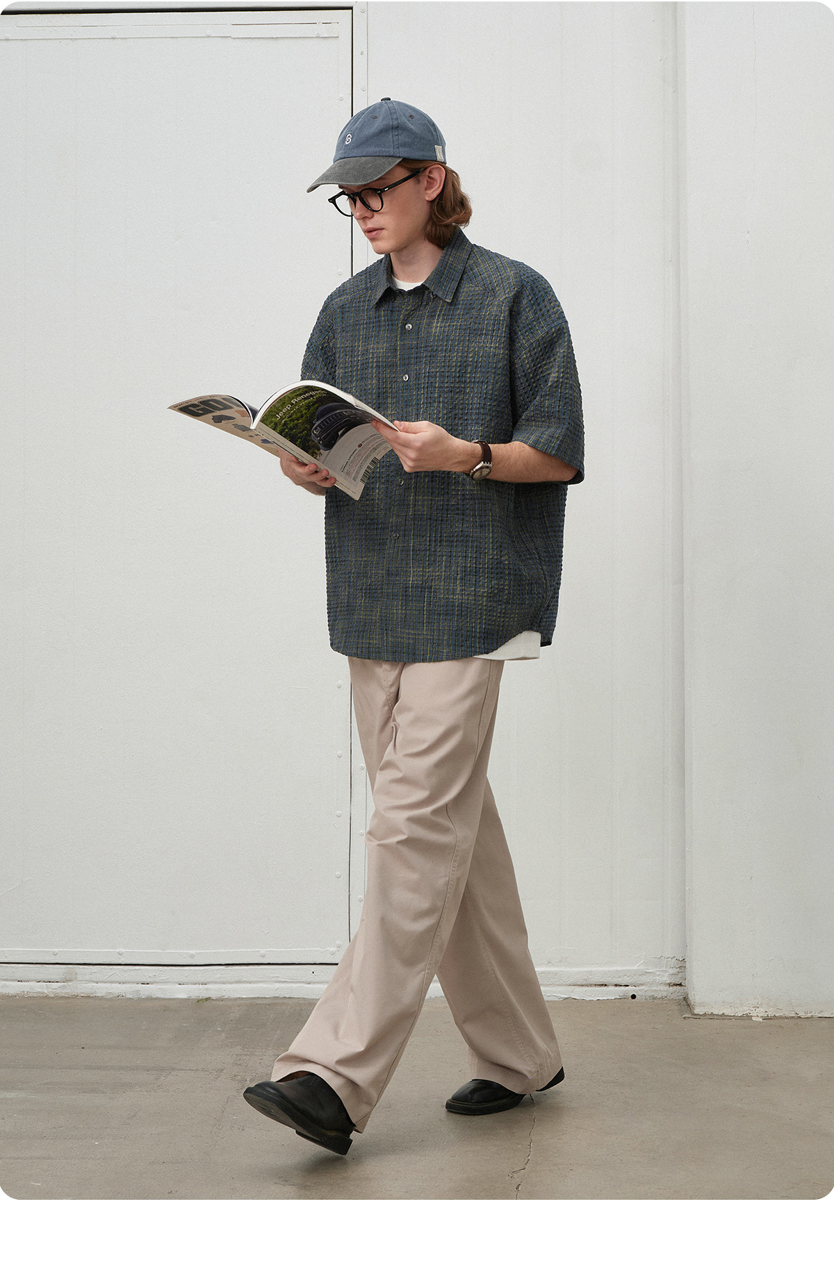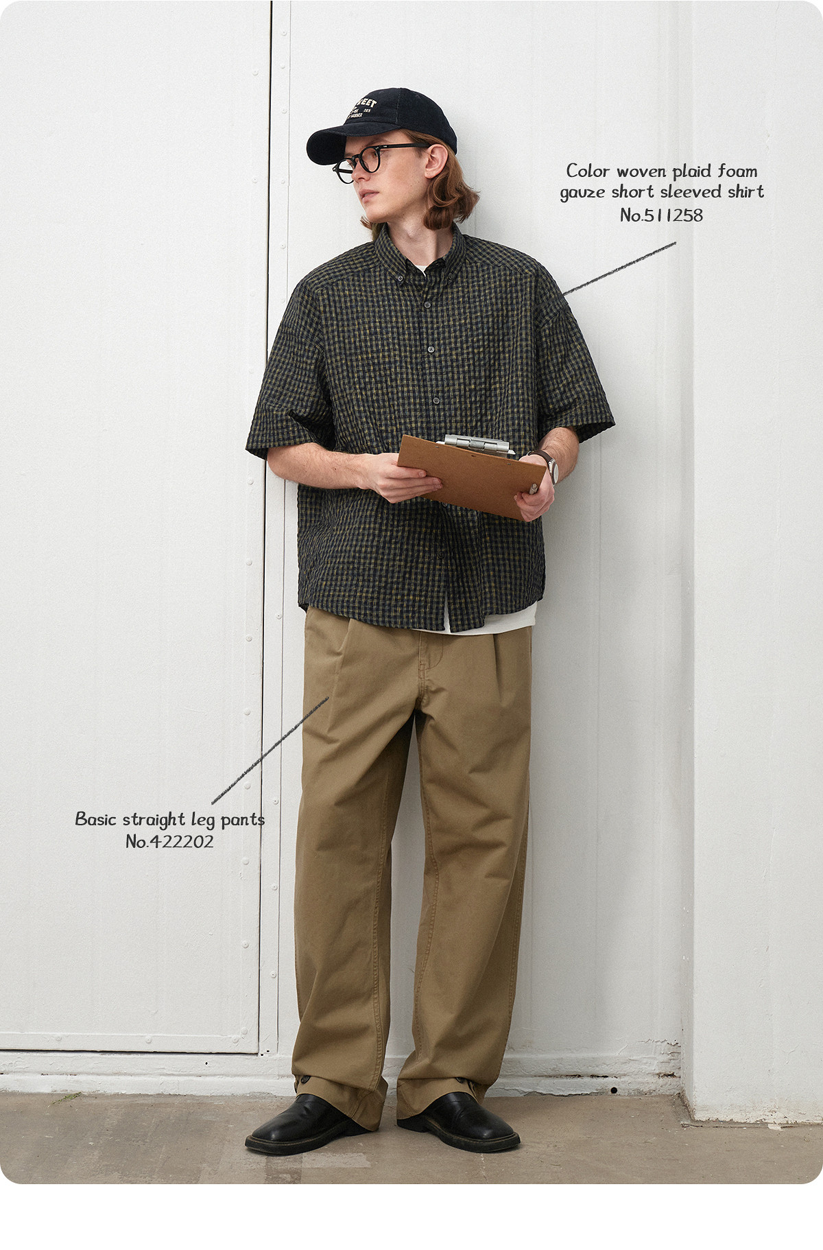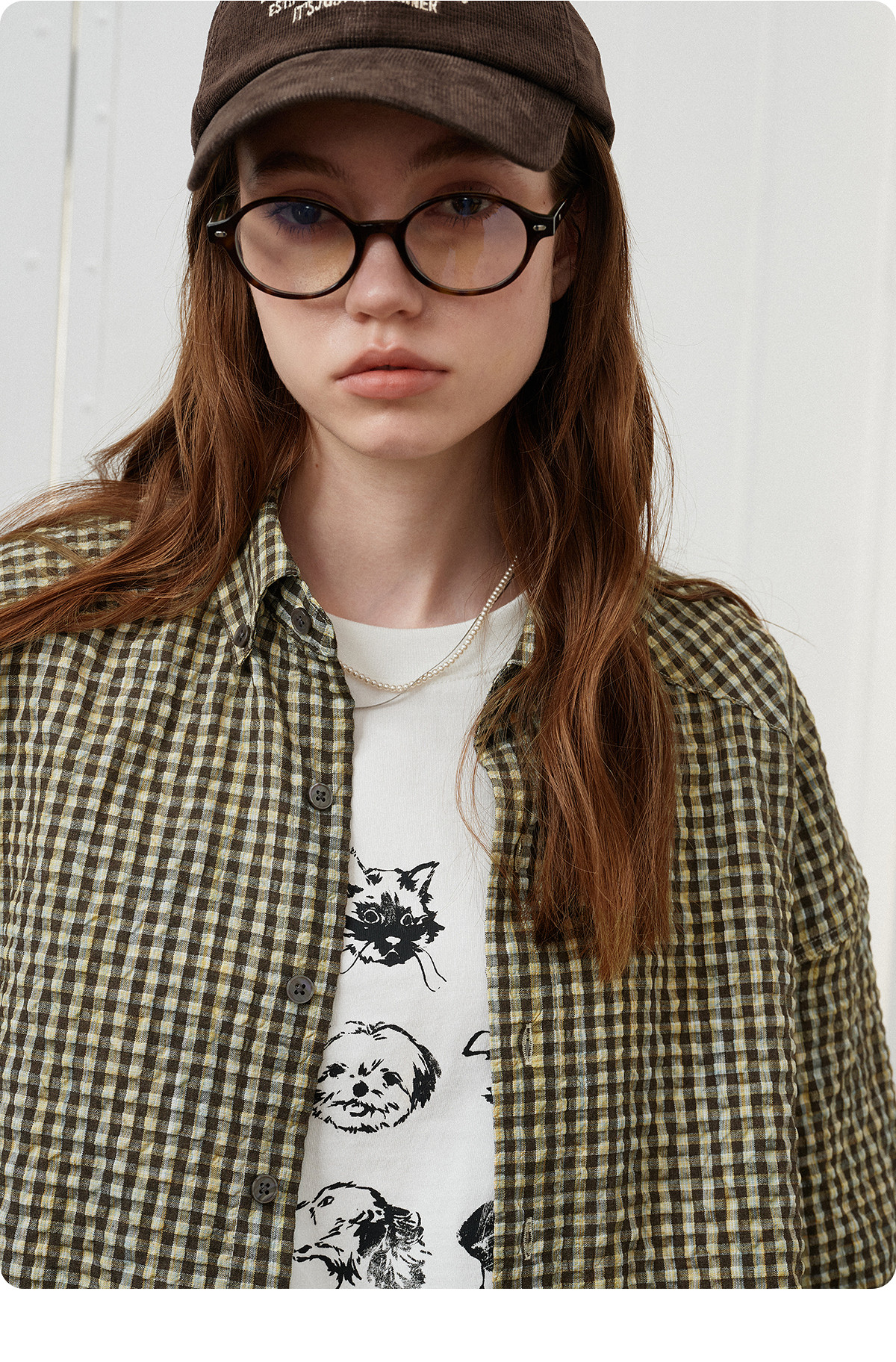 714street泡泡纱格子短袖衬衫男25春夏新款宽松轻薄透气情侣衬衣