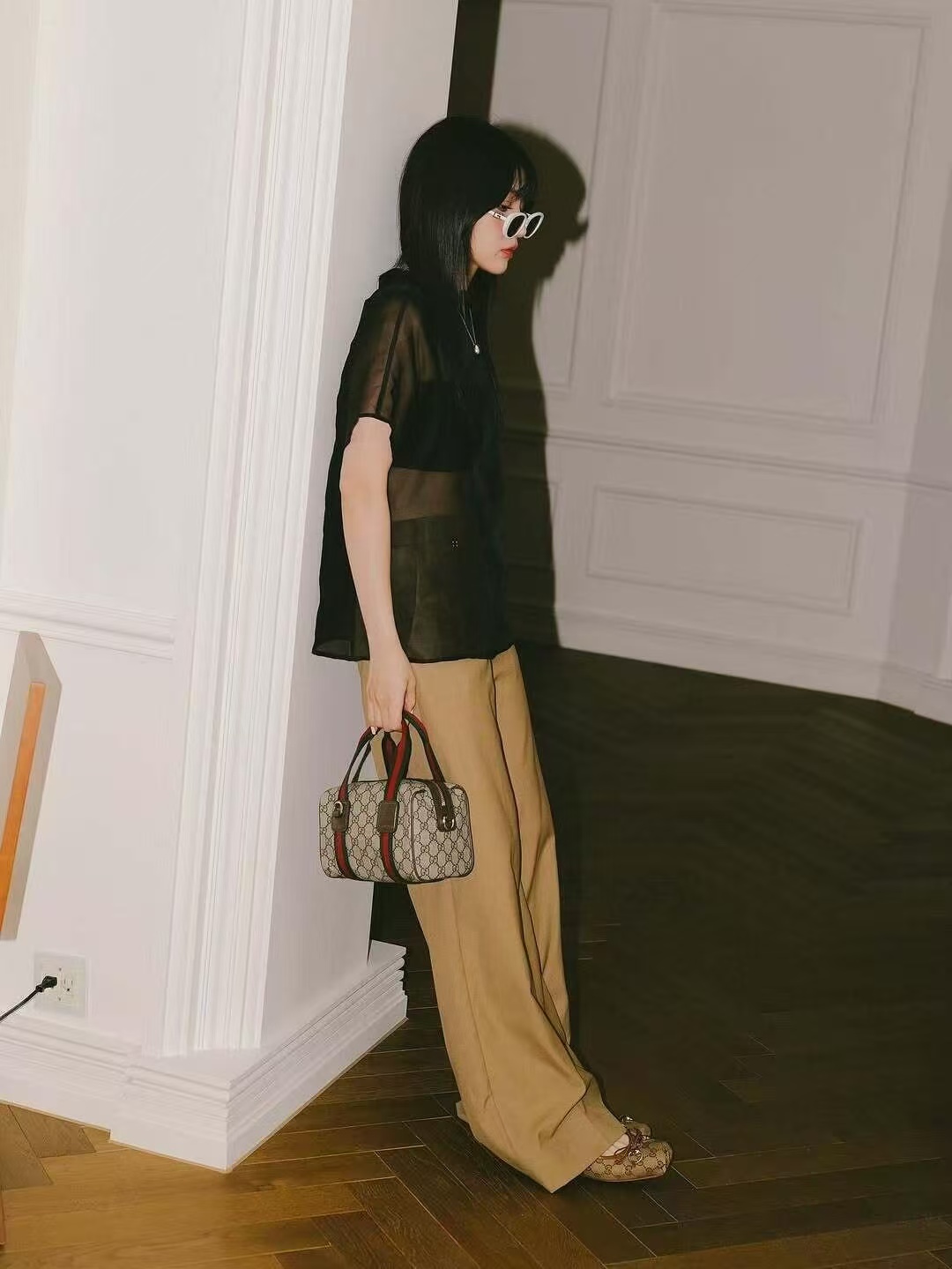 GUCCI古驰 品牌徽标 GG Monogram 帆布 手提包 迷你 男女同款情侣款 米棕色