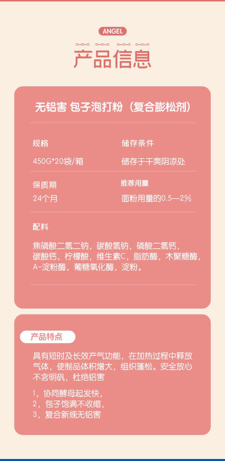 安琪包子泡打粉450g*20(复合膨松剂)【151】(未添加铝明矾)
