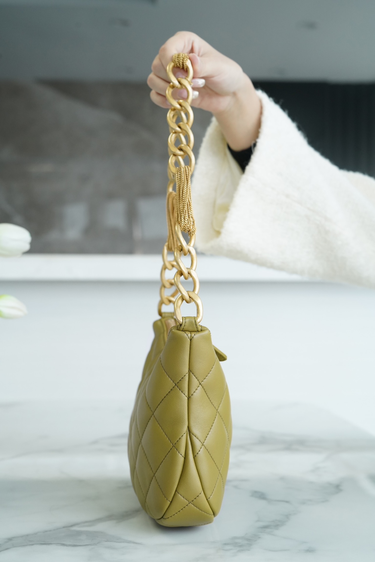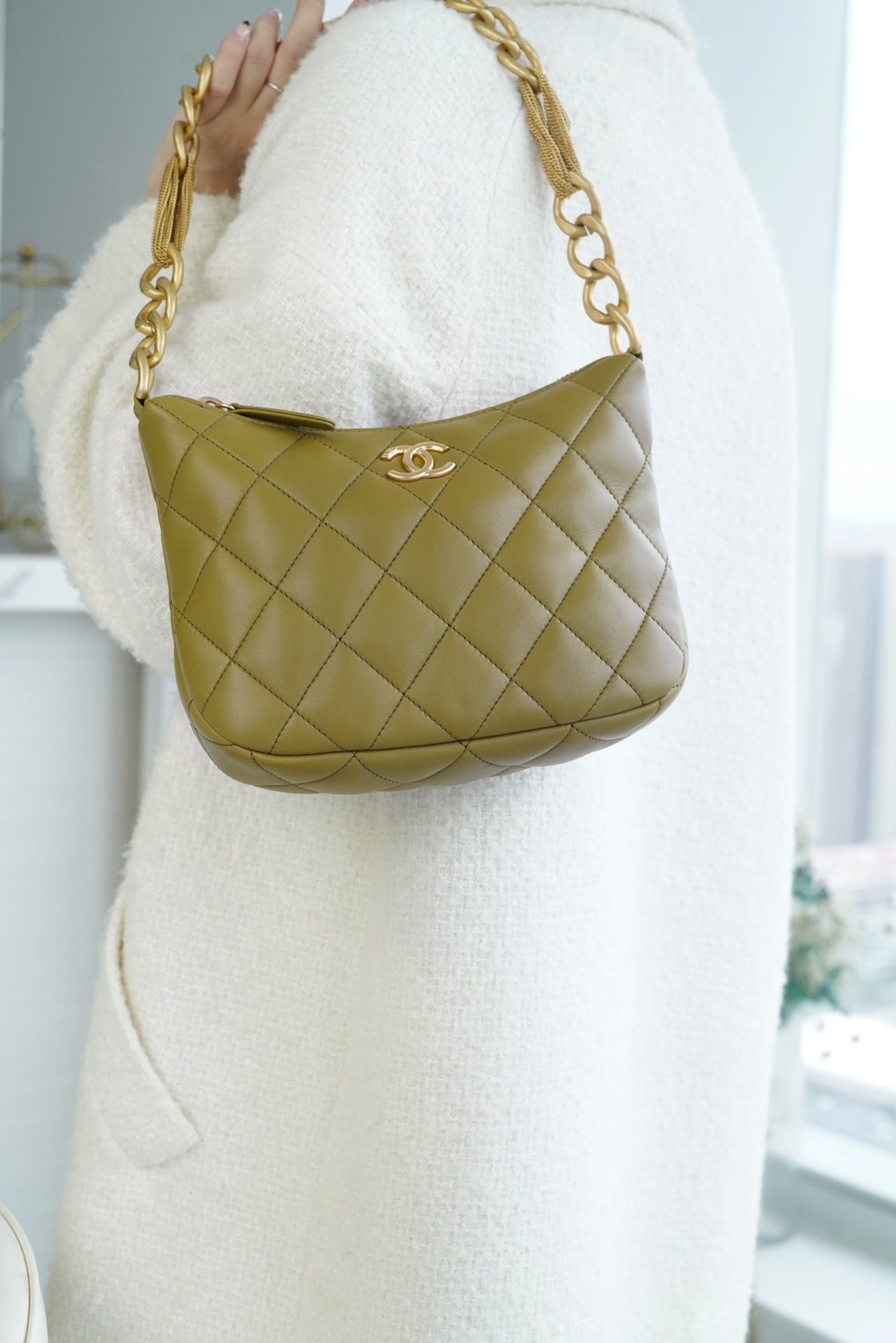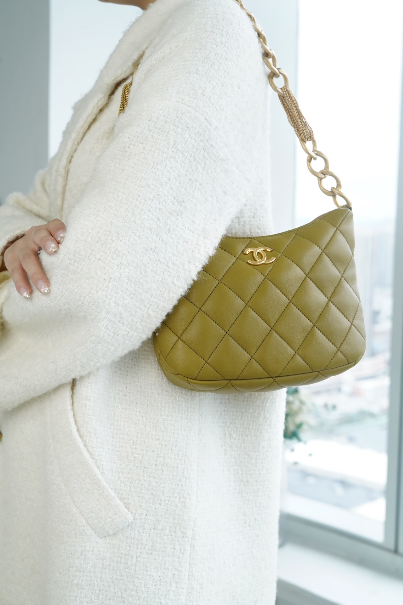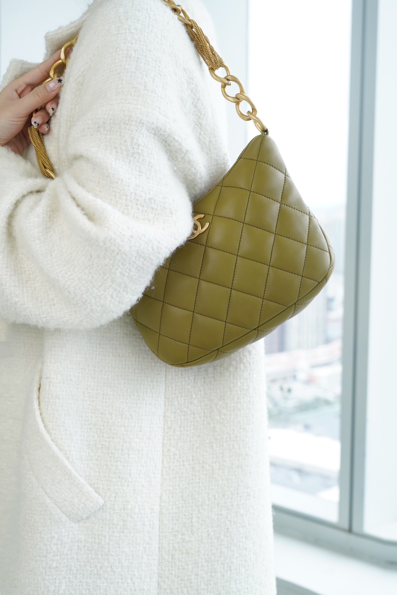 包包整体轻盈不厚重,独特又复古的五金链美到极致,工艺感极强,经典的黑金配色?菱格,流苏控可以冲,吸睛力我给??分!