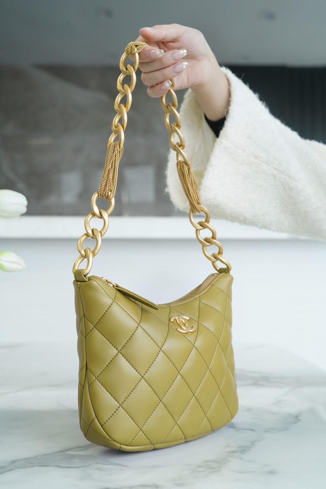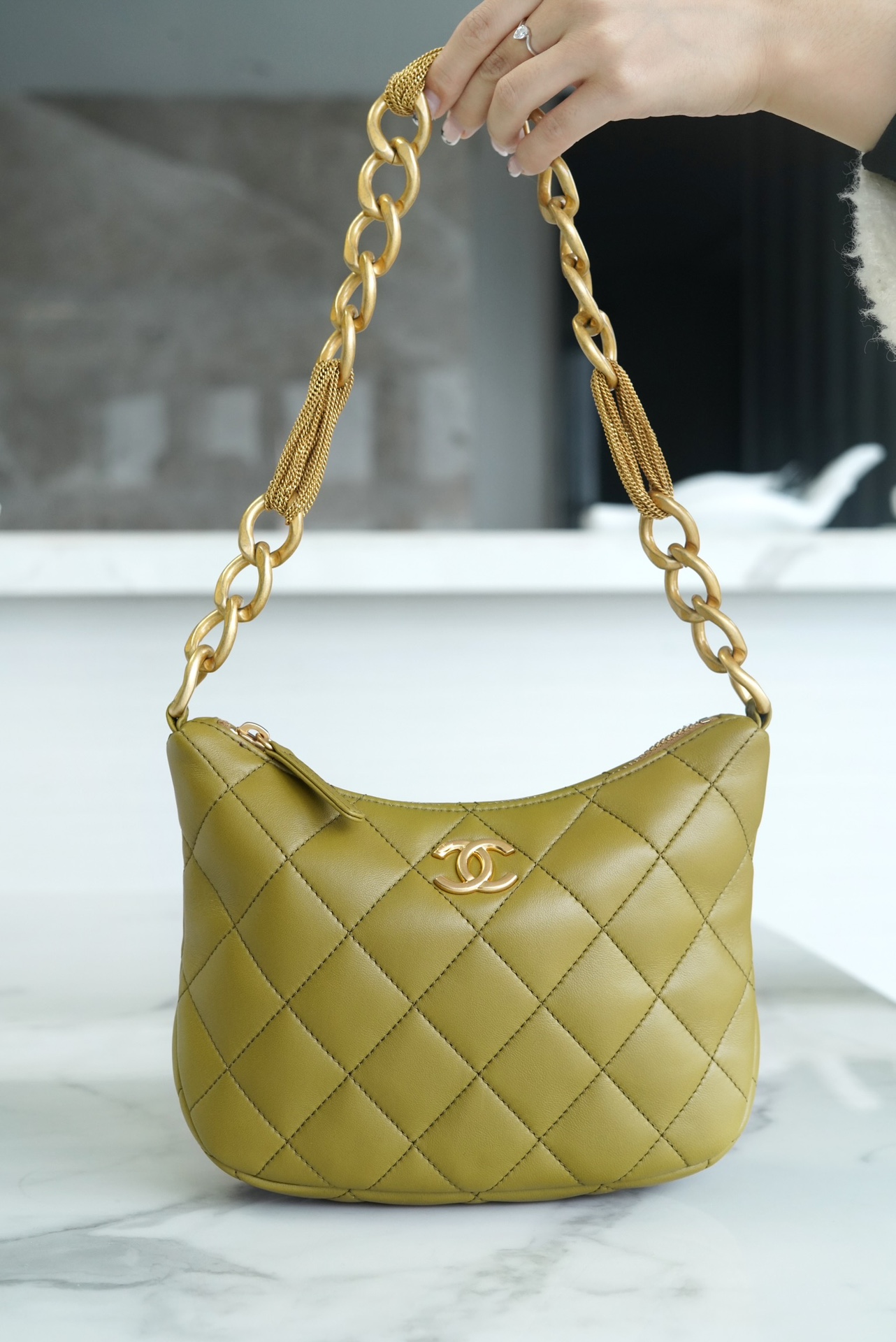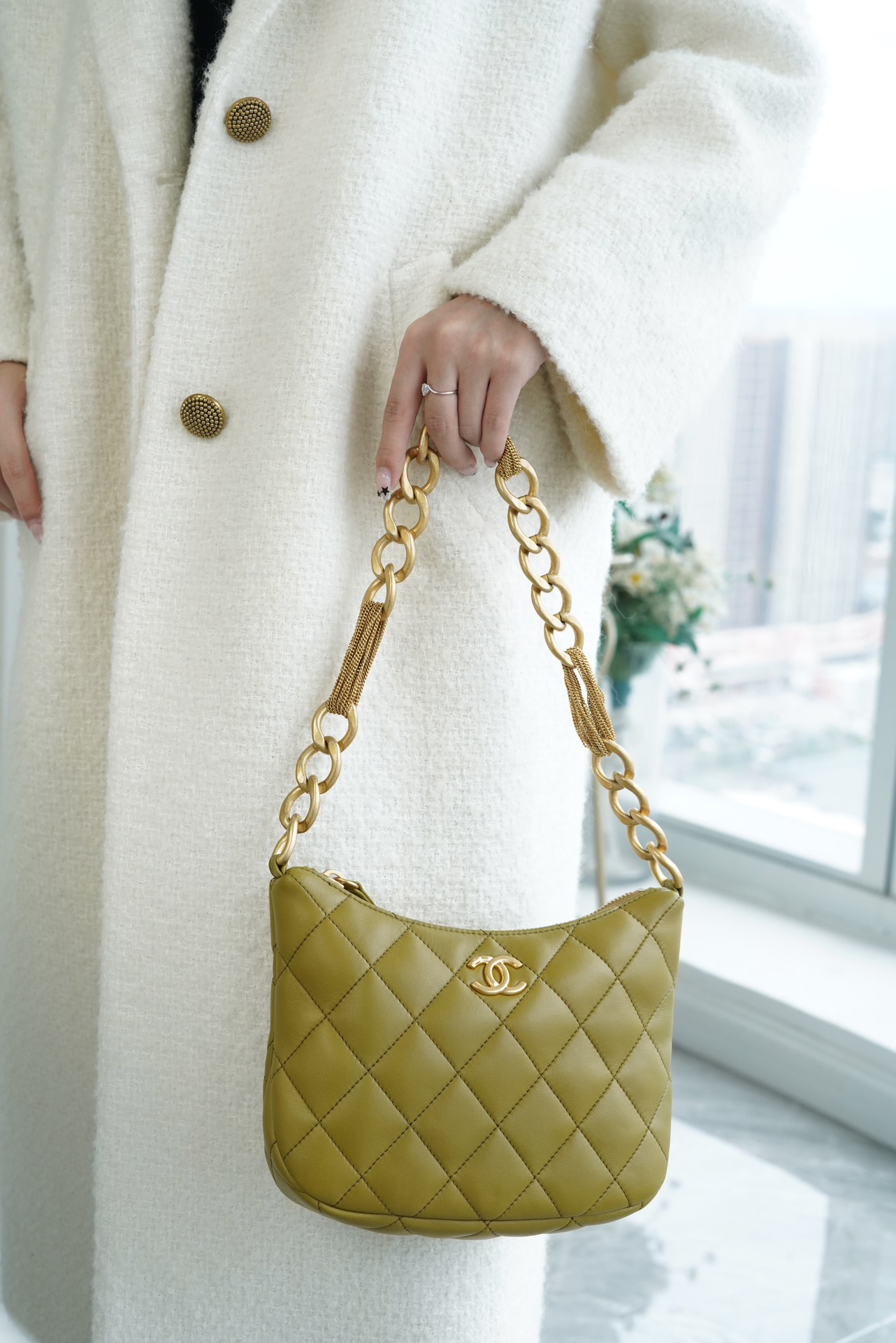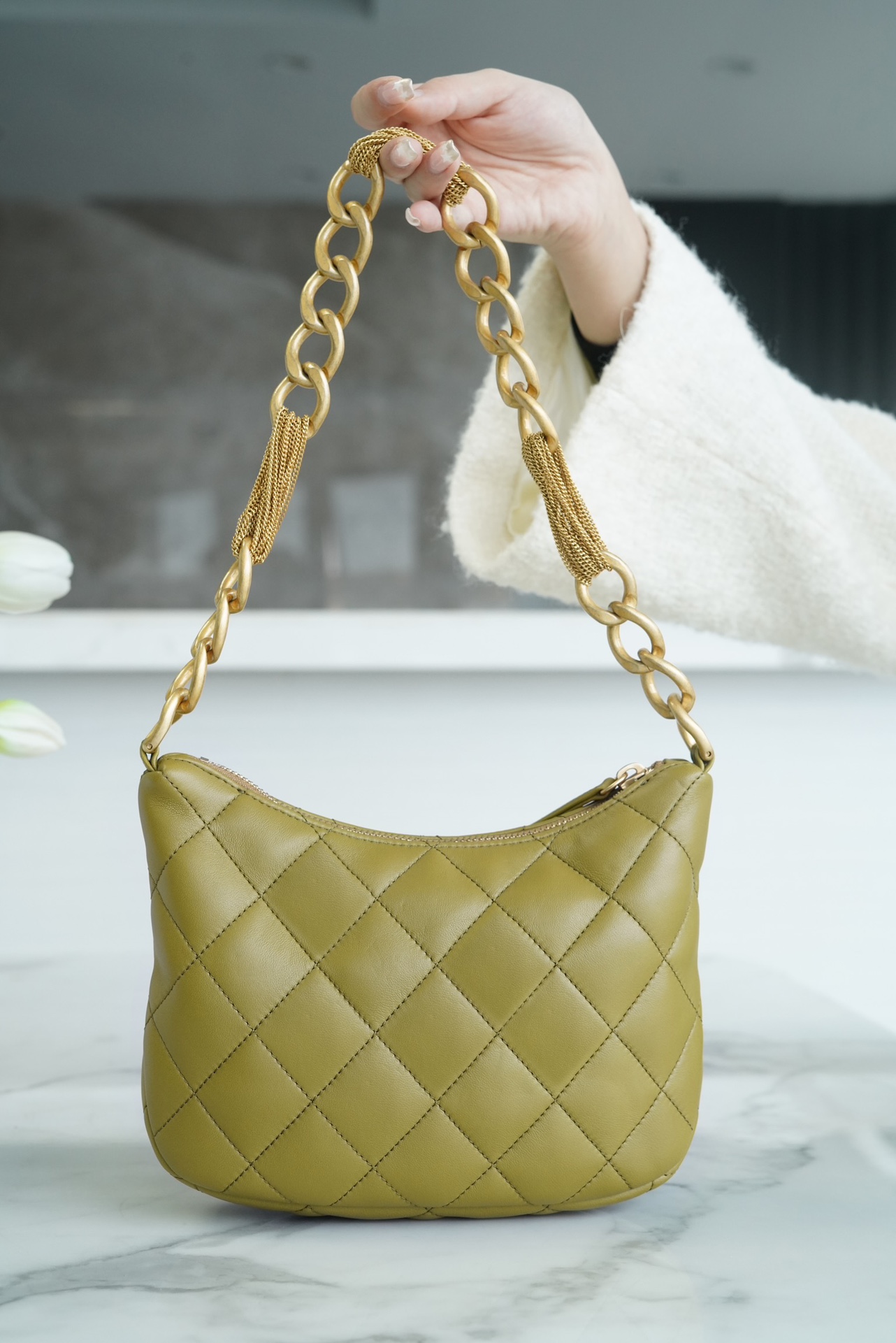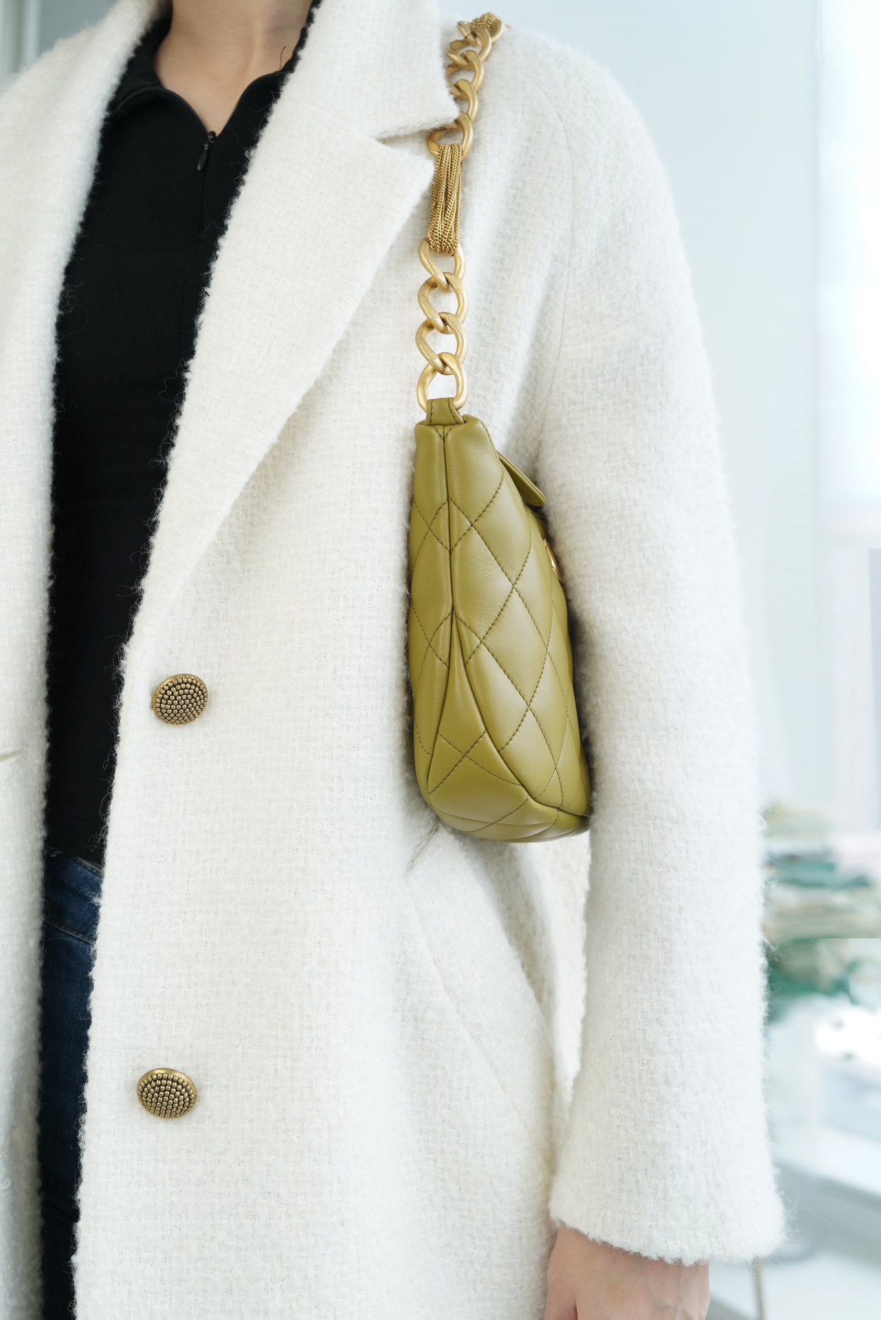 包包整体轻盈不厚重,独特又复古的五金链美到极致,工艺感极强,经典的黑金配色?菱格,流苏控可以冲,吸睛力我给??分!