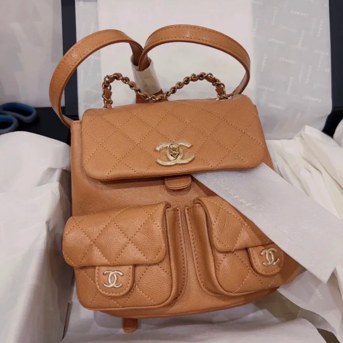 香奶奶 23P新款 Duma双肩包 牛皮 大号焦糖 商品图0