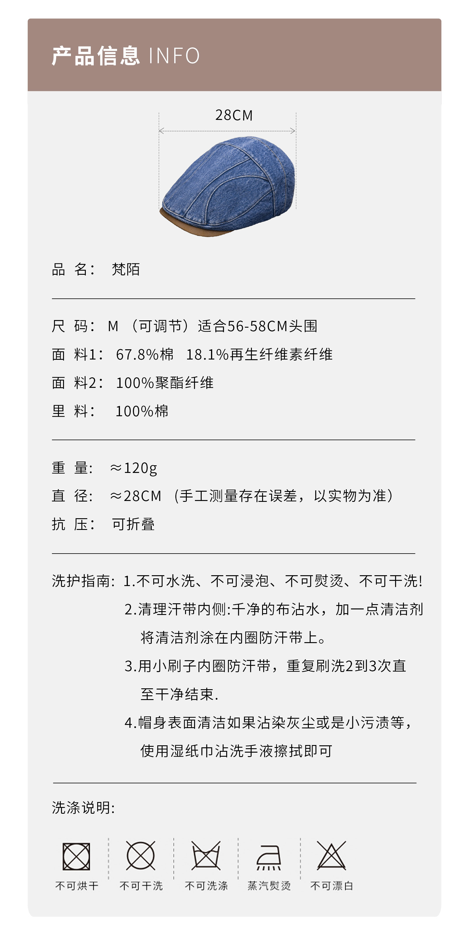 疯帽子 水洗牛仔前进帽 日系复古鸭舌帽 休闲百搭雅痞报童帽BY333