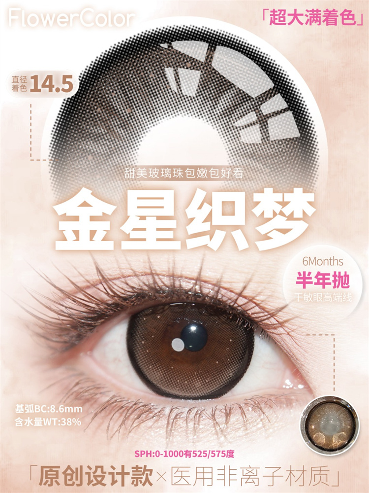 【满着色】Flower Color 金星织梦 半年抛直径14.5mm日常美瞳 棕色