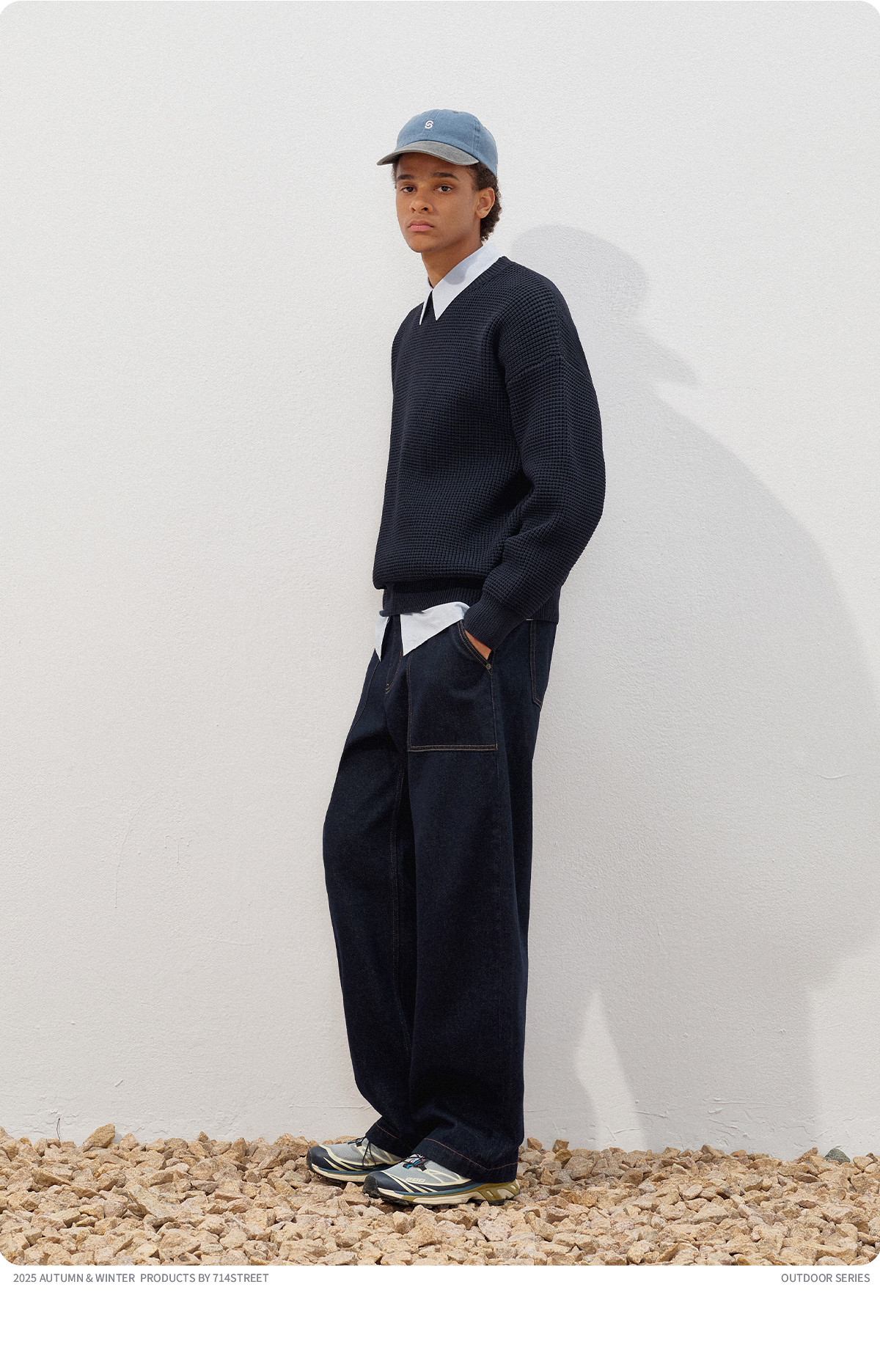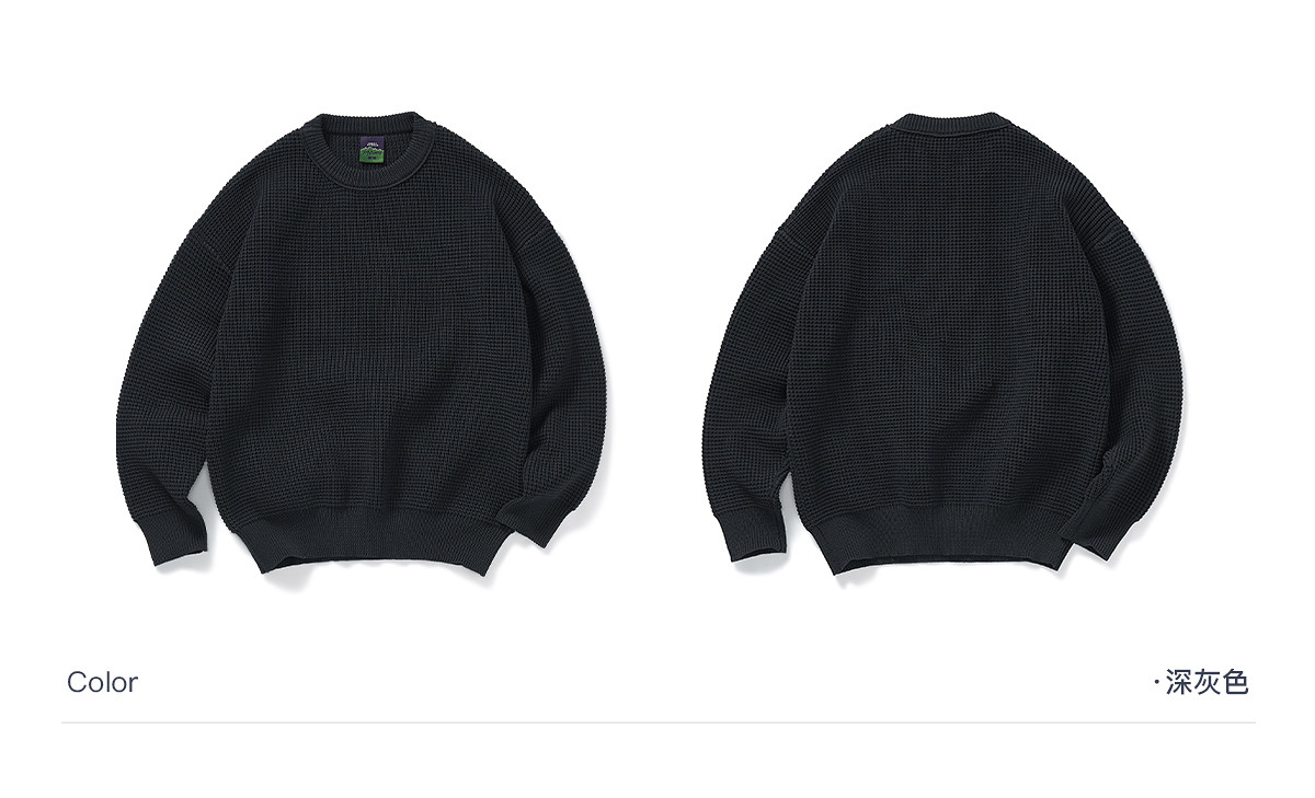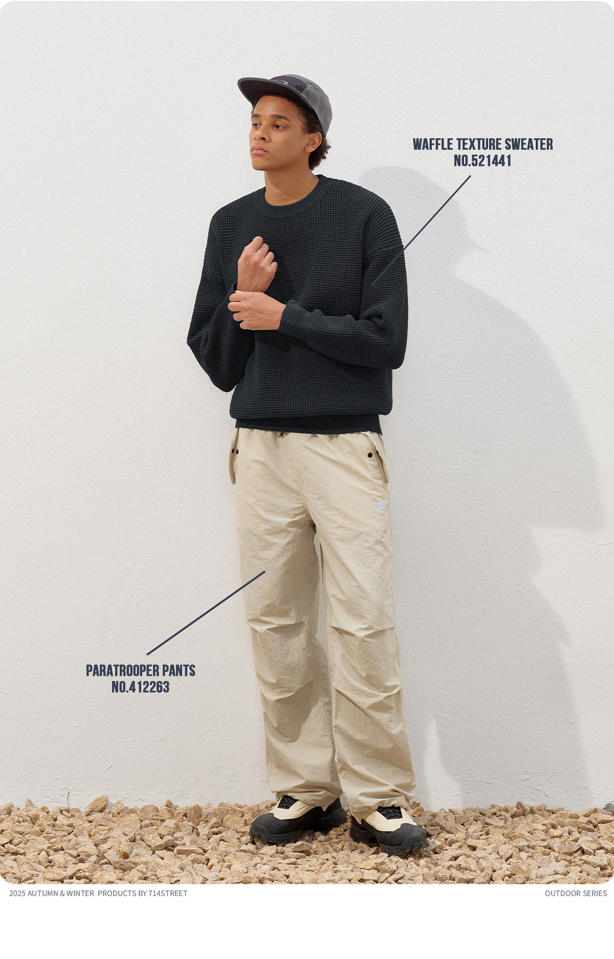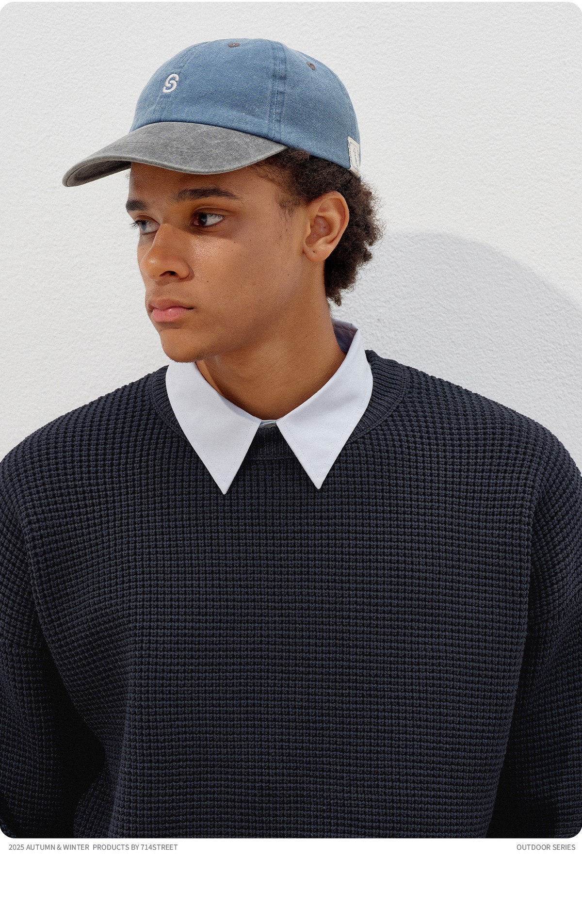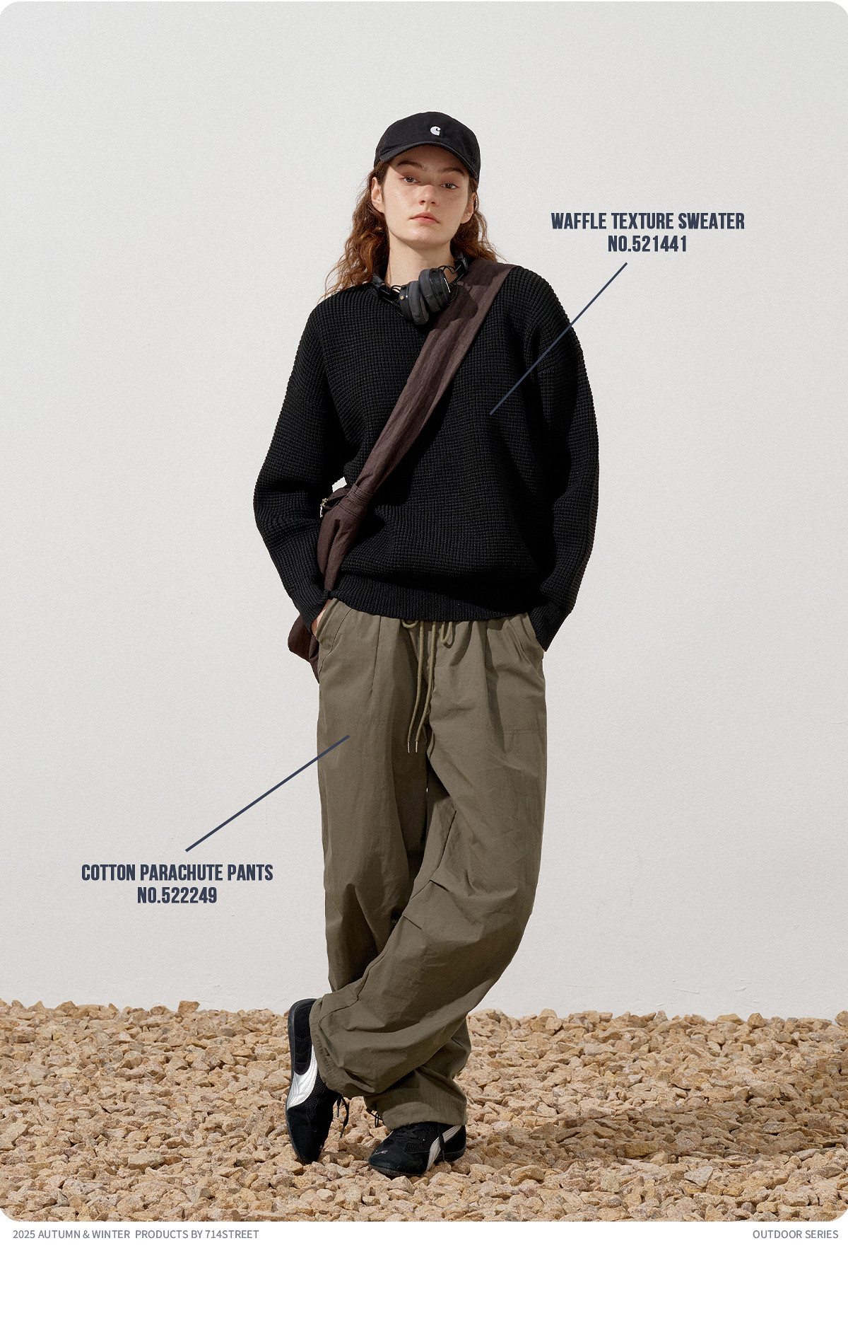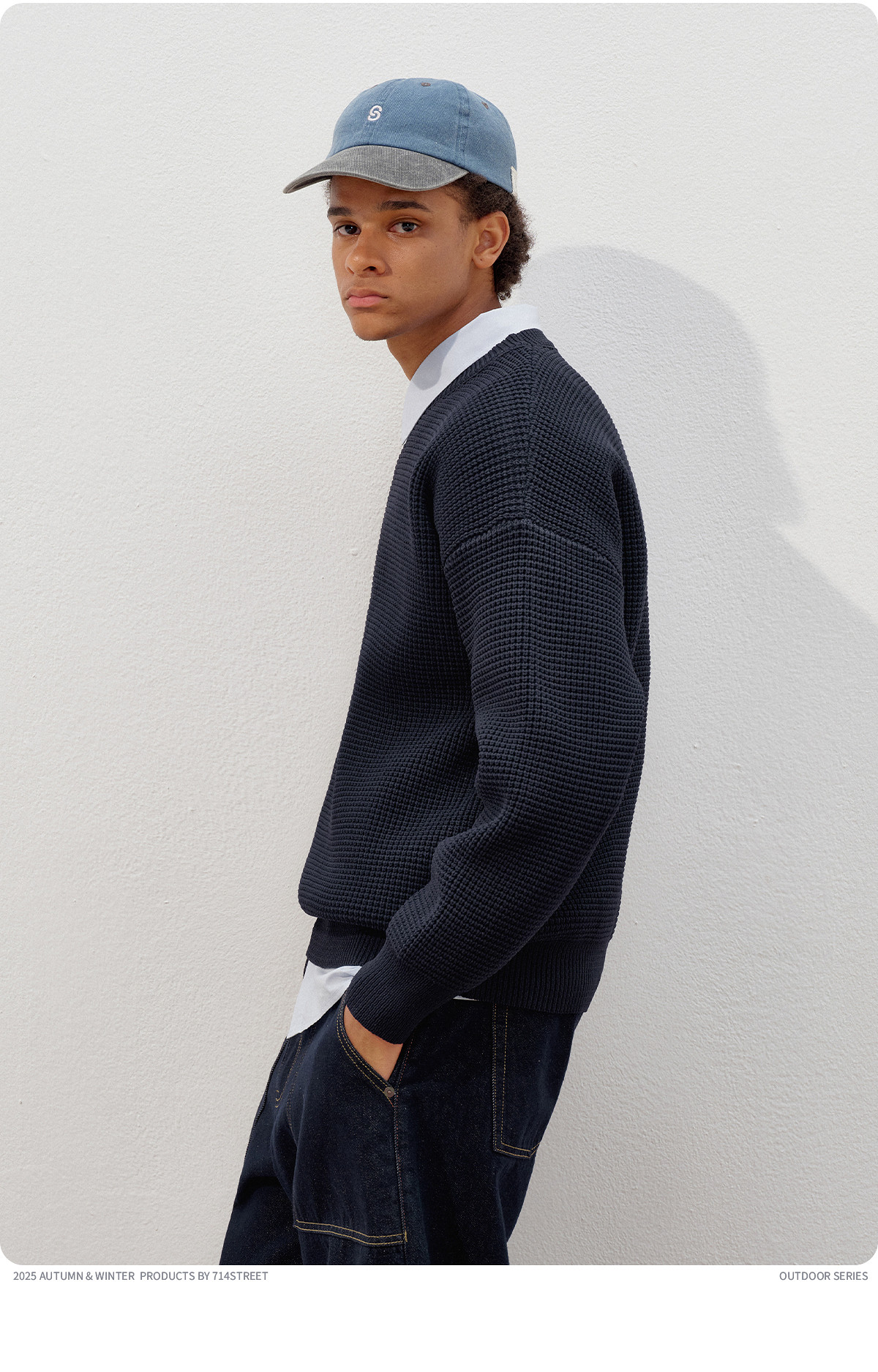714street抗皱华夫格纹理长袖2025秋冬国潮廓形情侣毛衣针织衫男