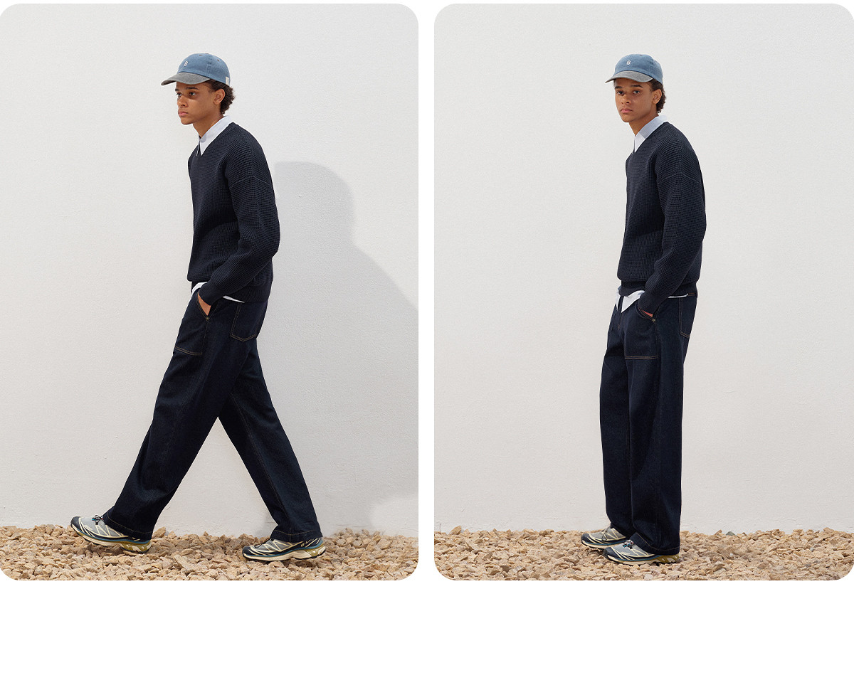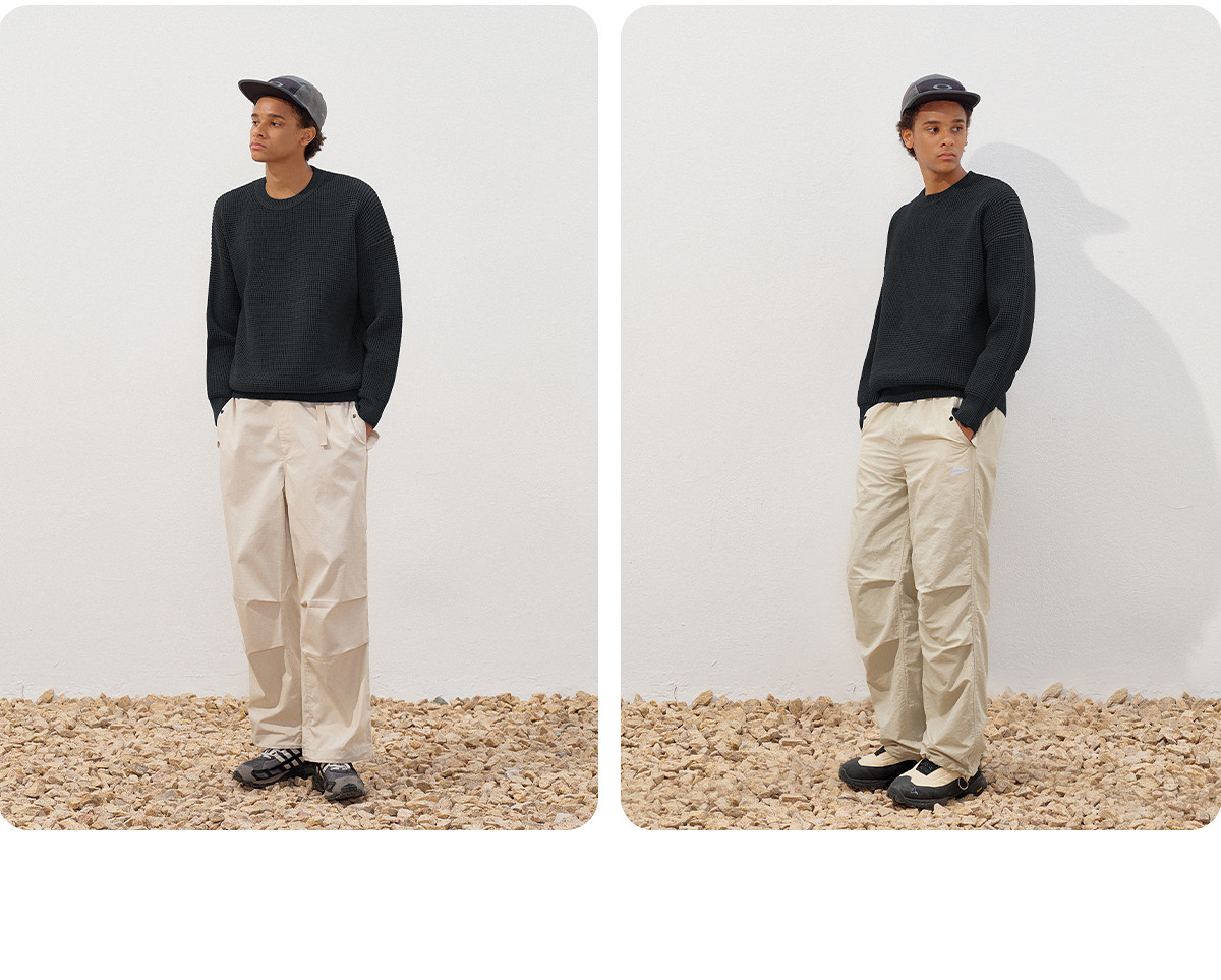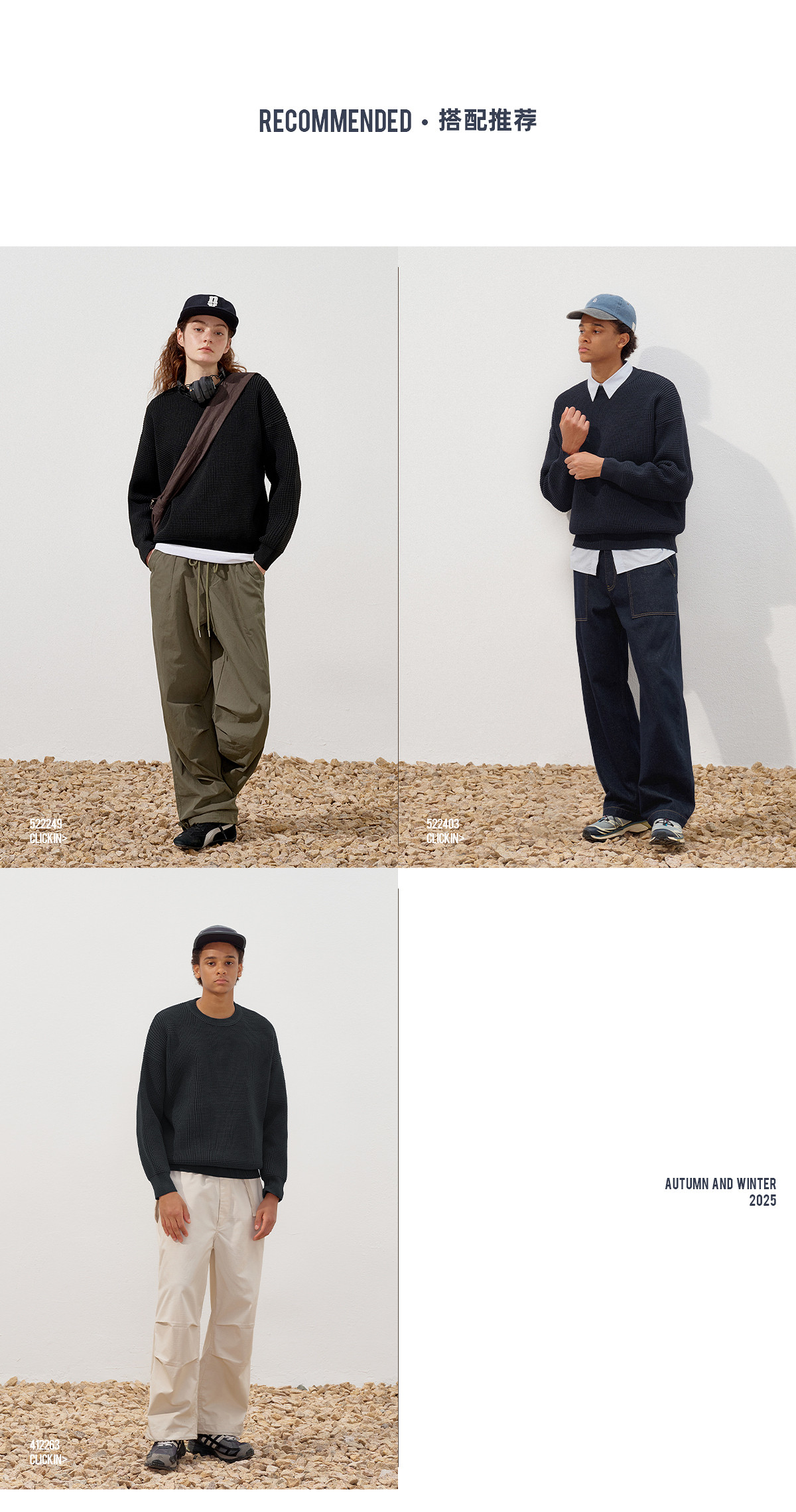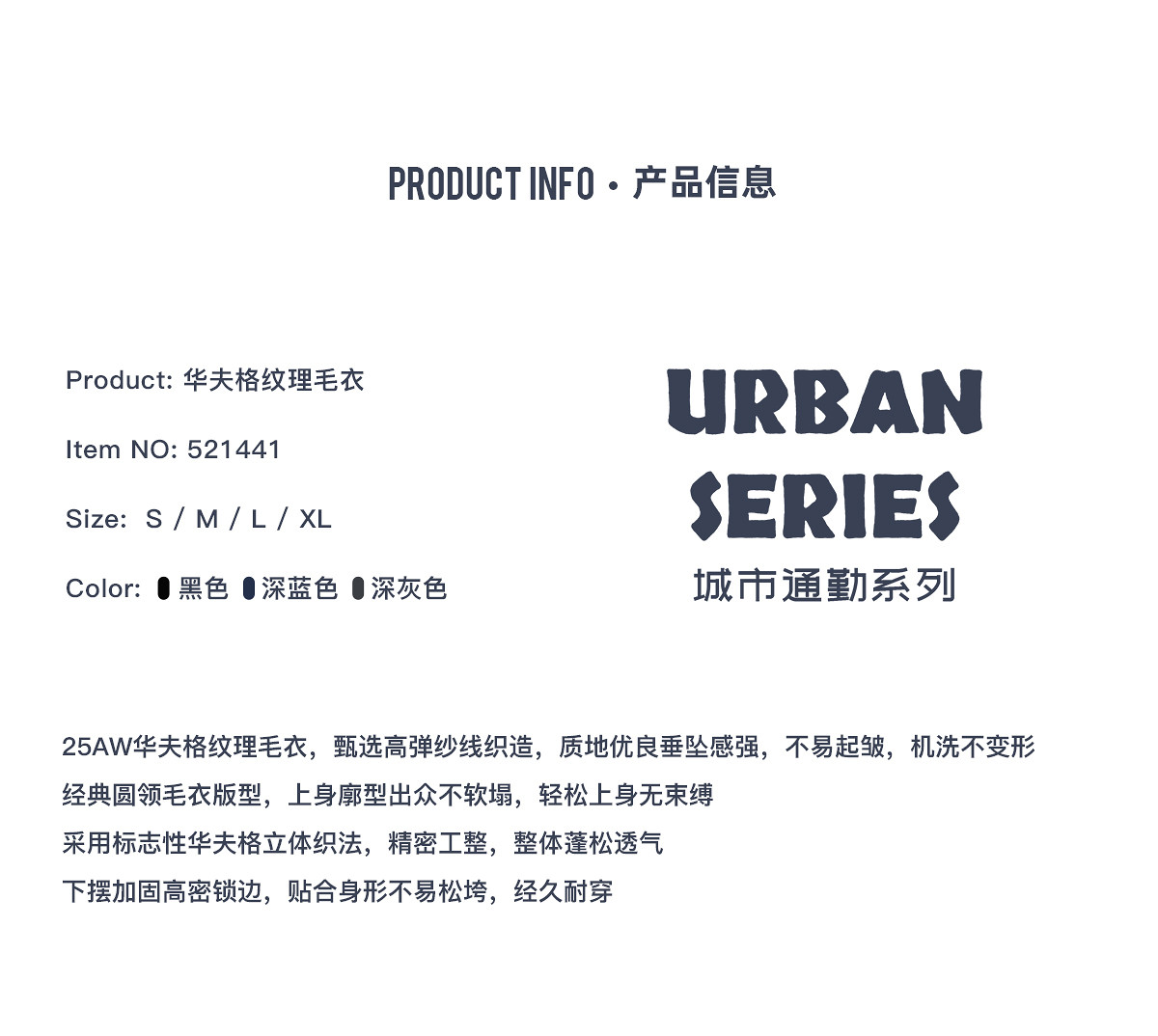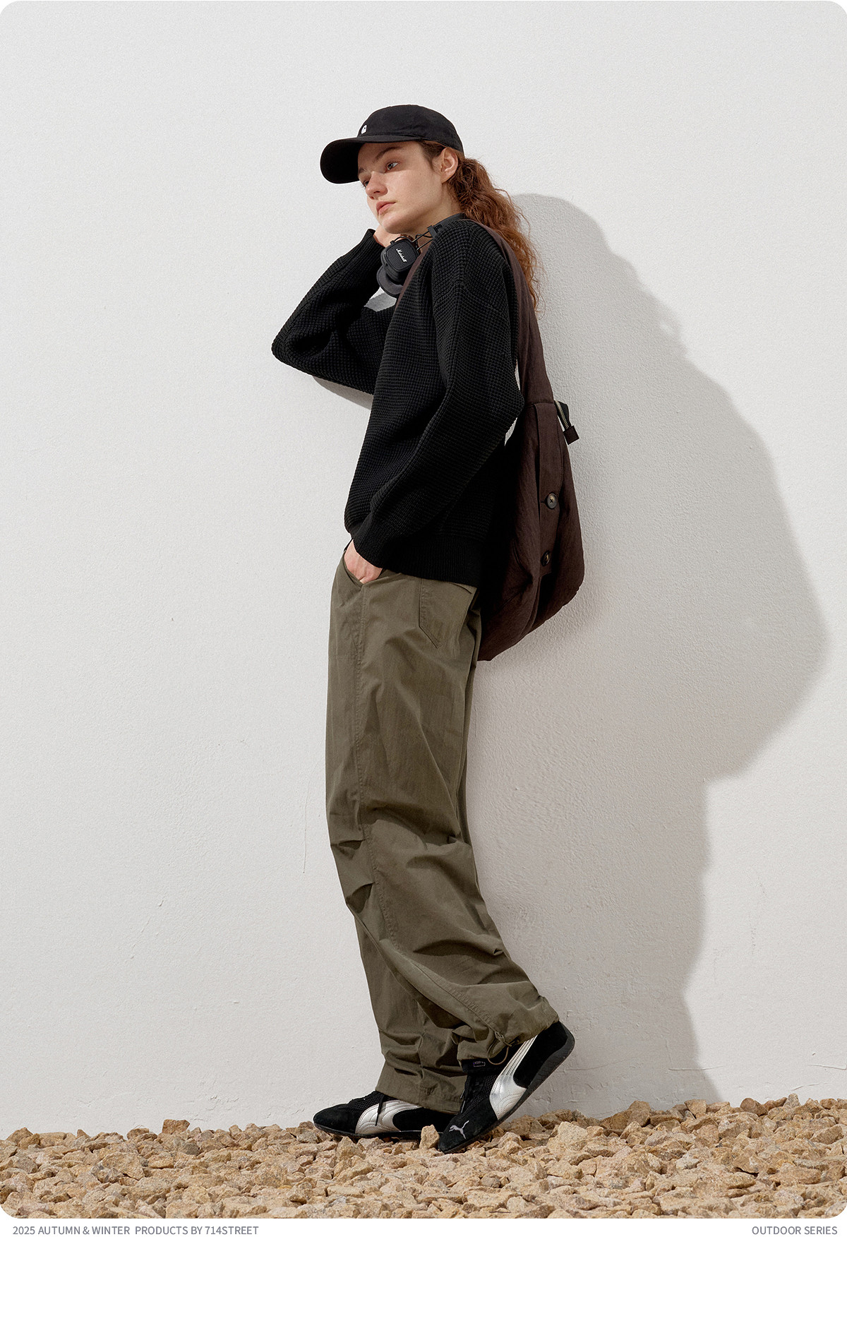 714street抗皱华夫格纹理长袖2025秋冬国潮廓形情侣毛衣针织衫男