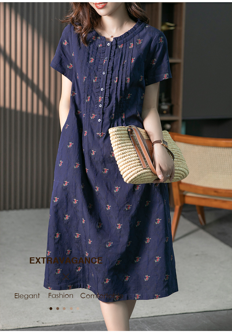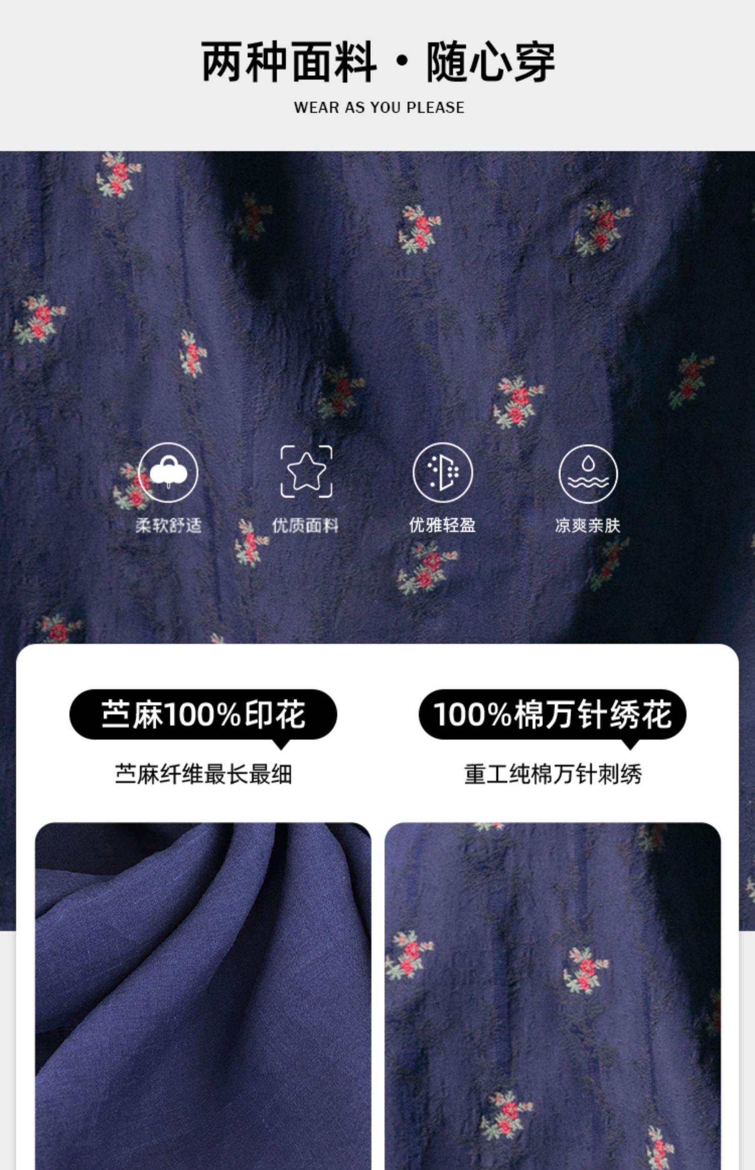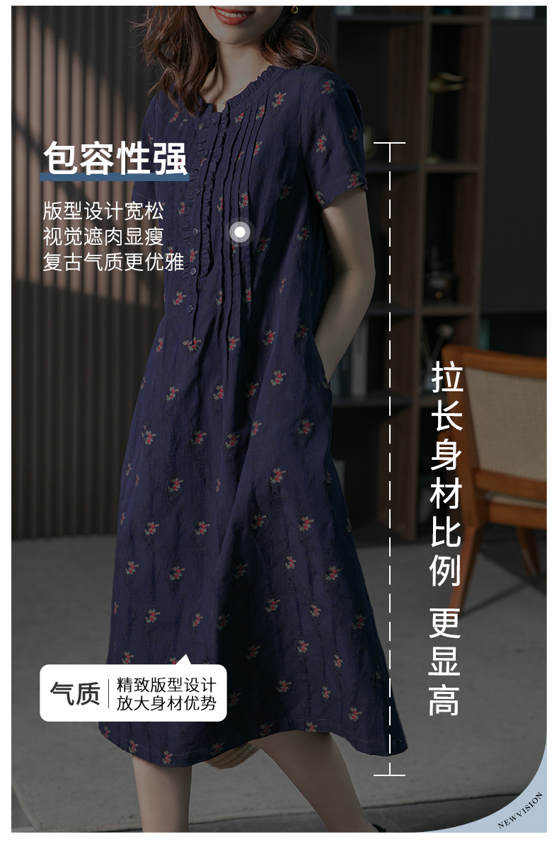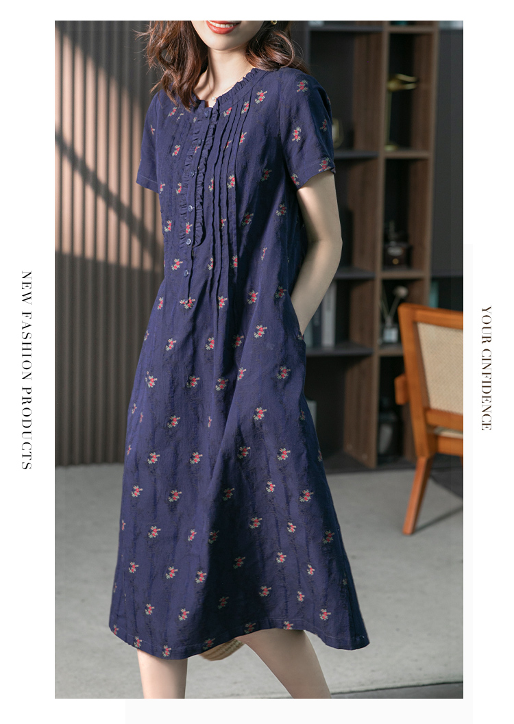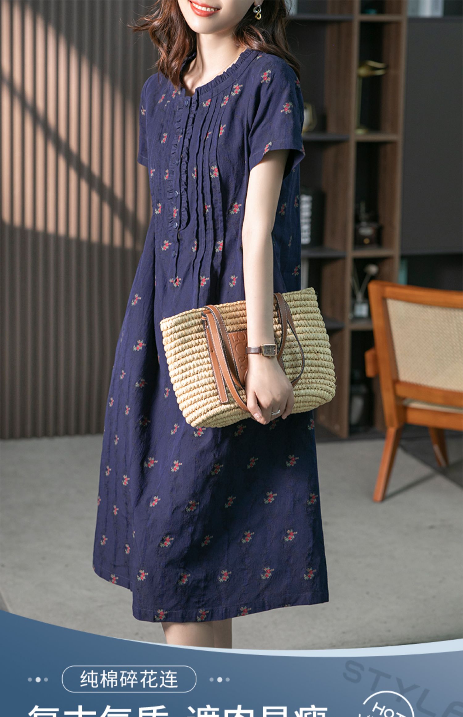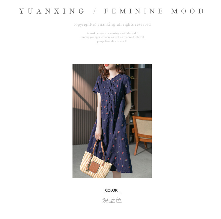 YX【现货7天】棉麻碎花连衣裙女2023夏季新款复古气质温柔风中长款裙子
