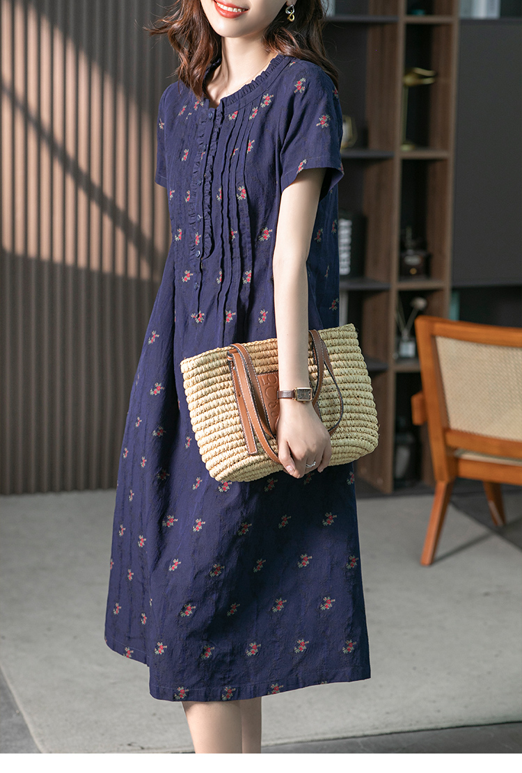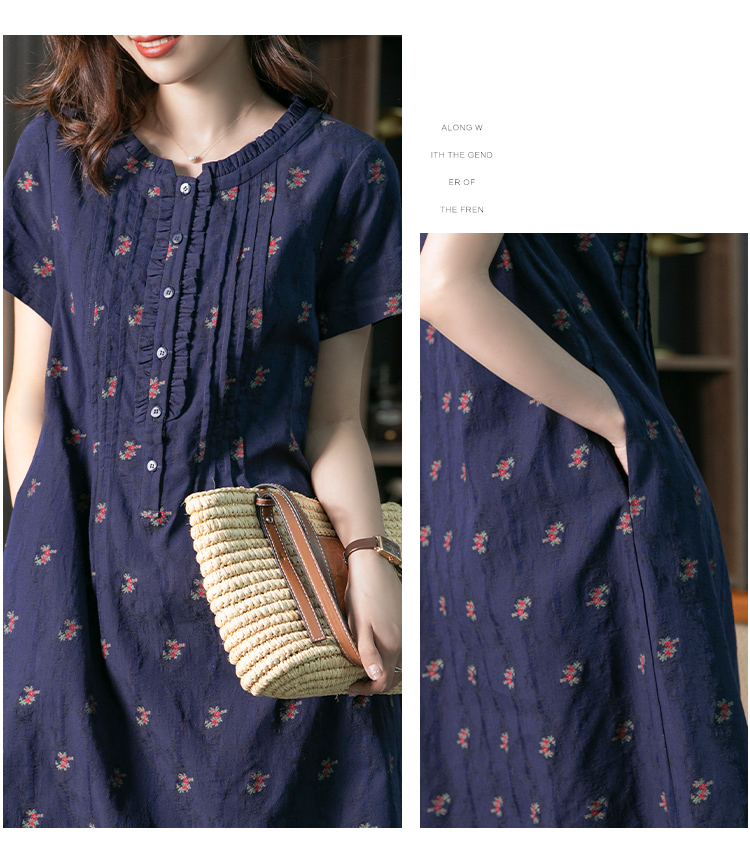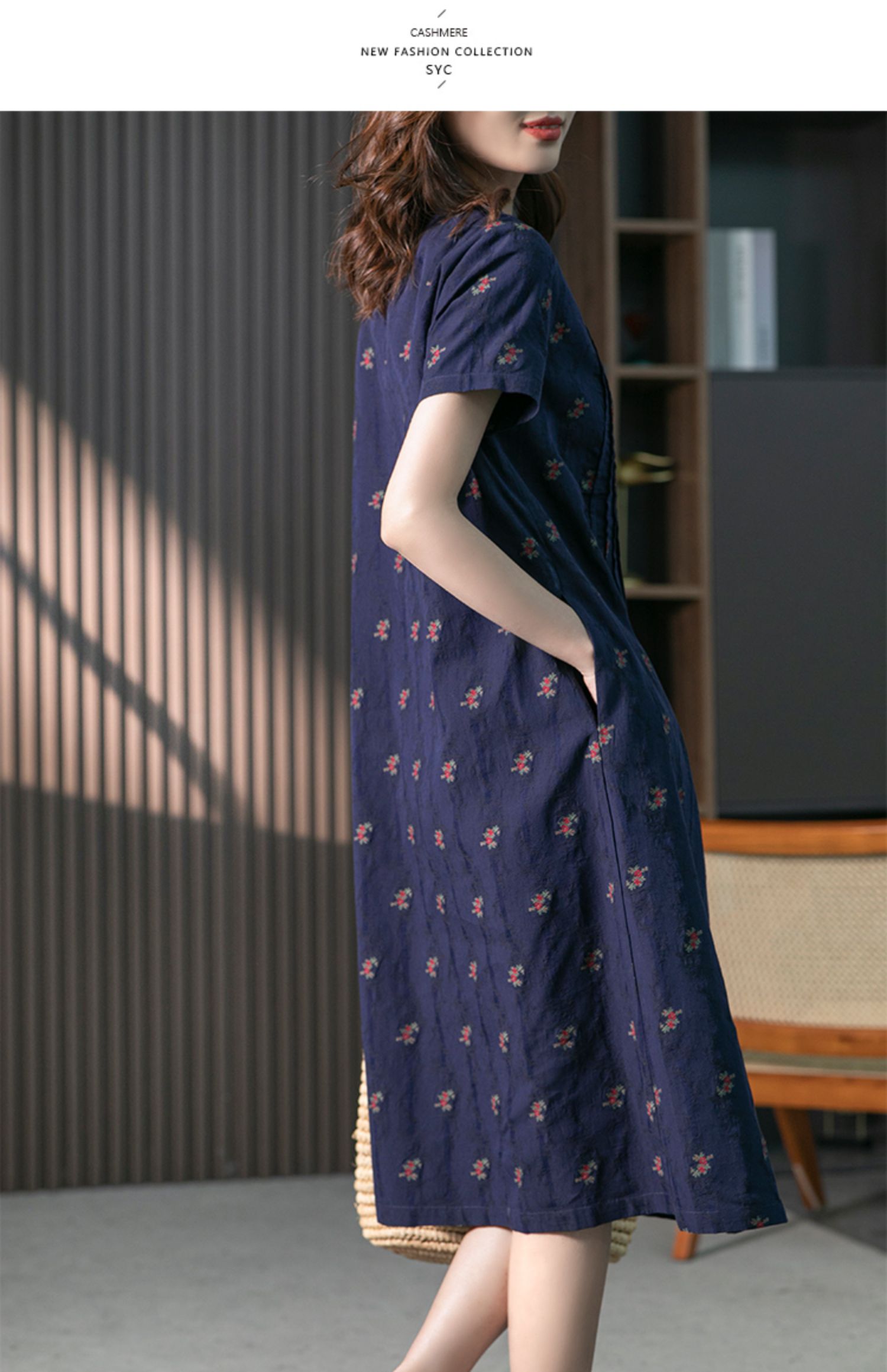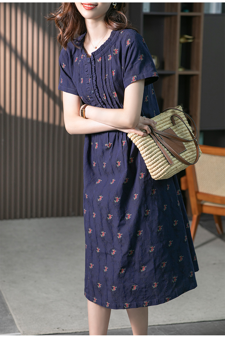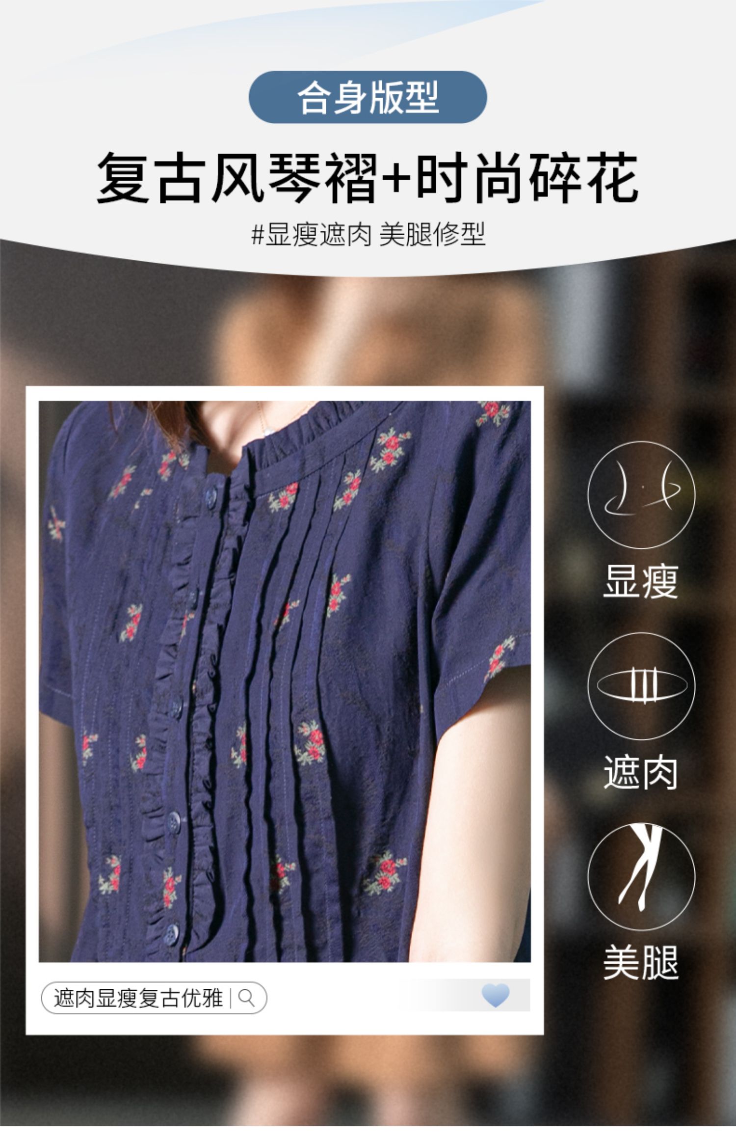 YX【现货7天】棉麻碎花连衣裙女2023夏季新款复古气质温柔风中长款裙子