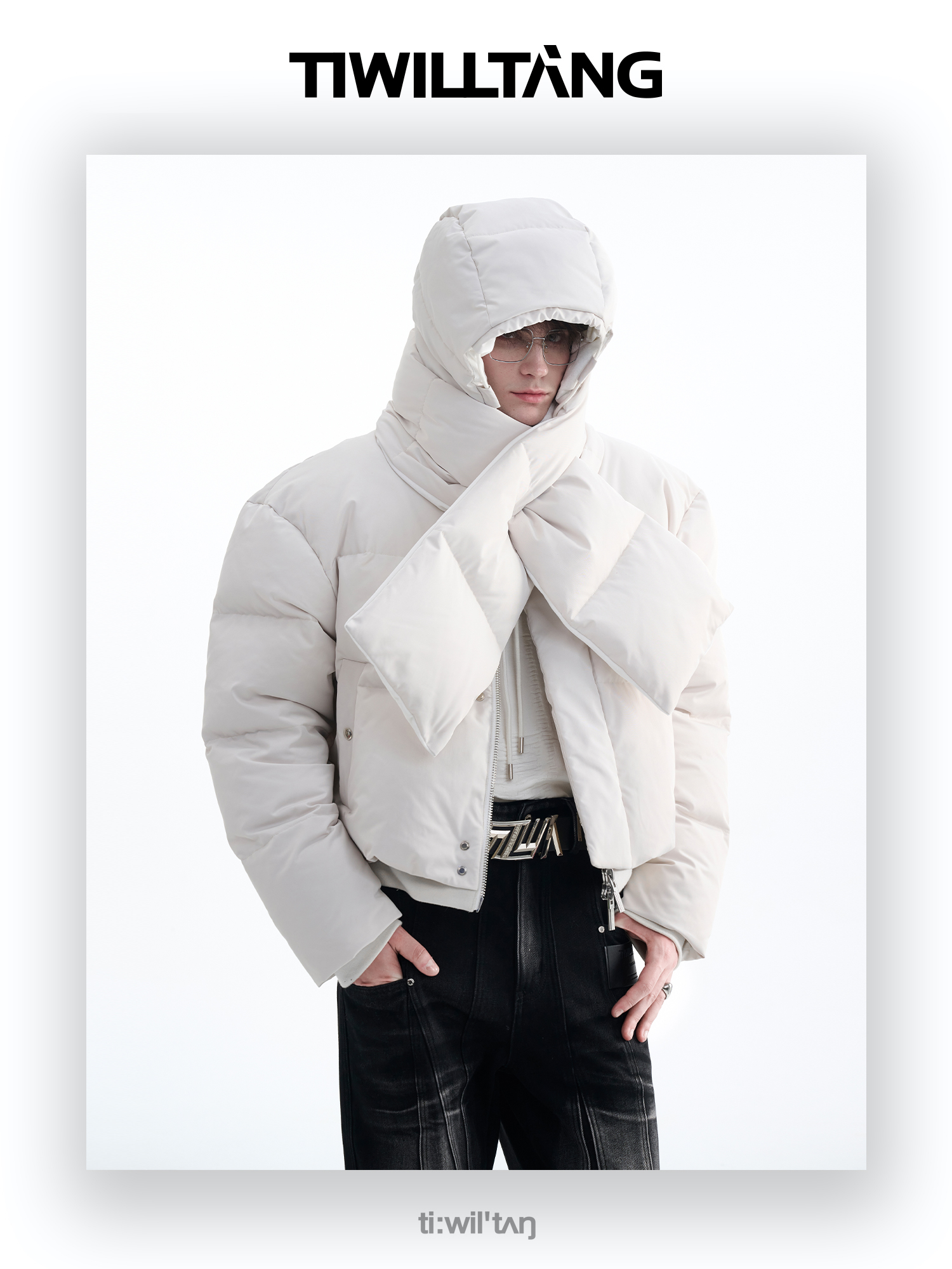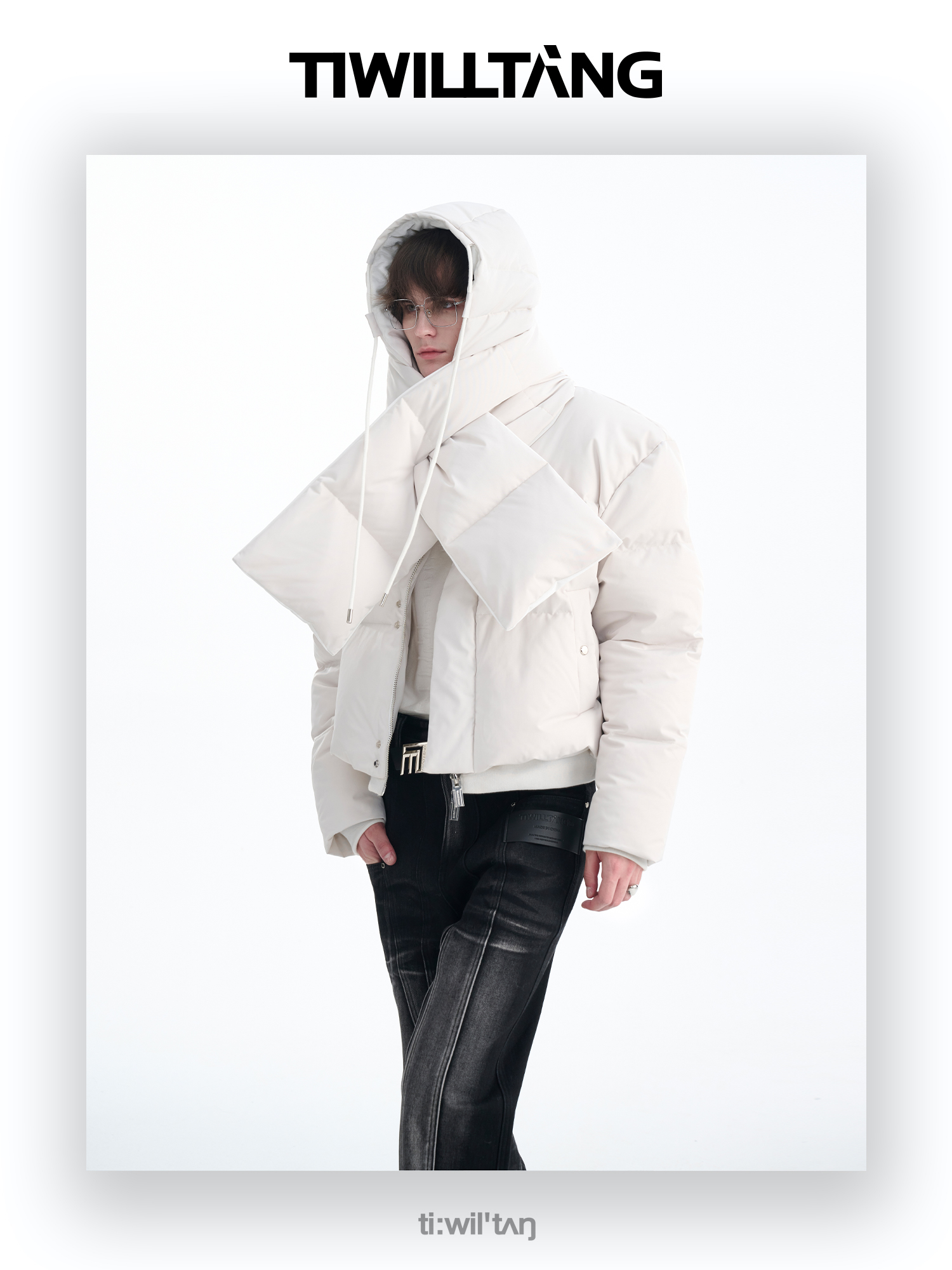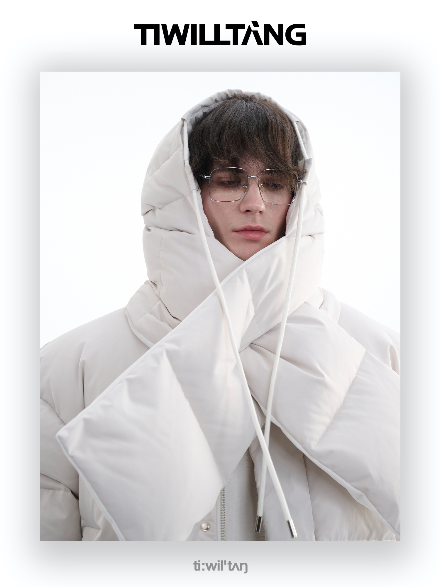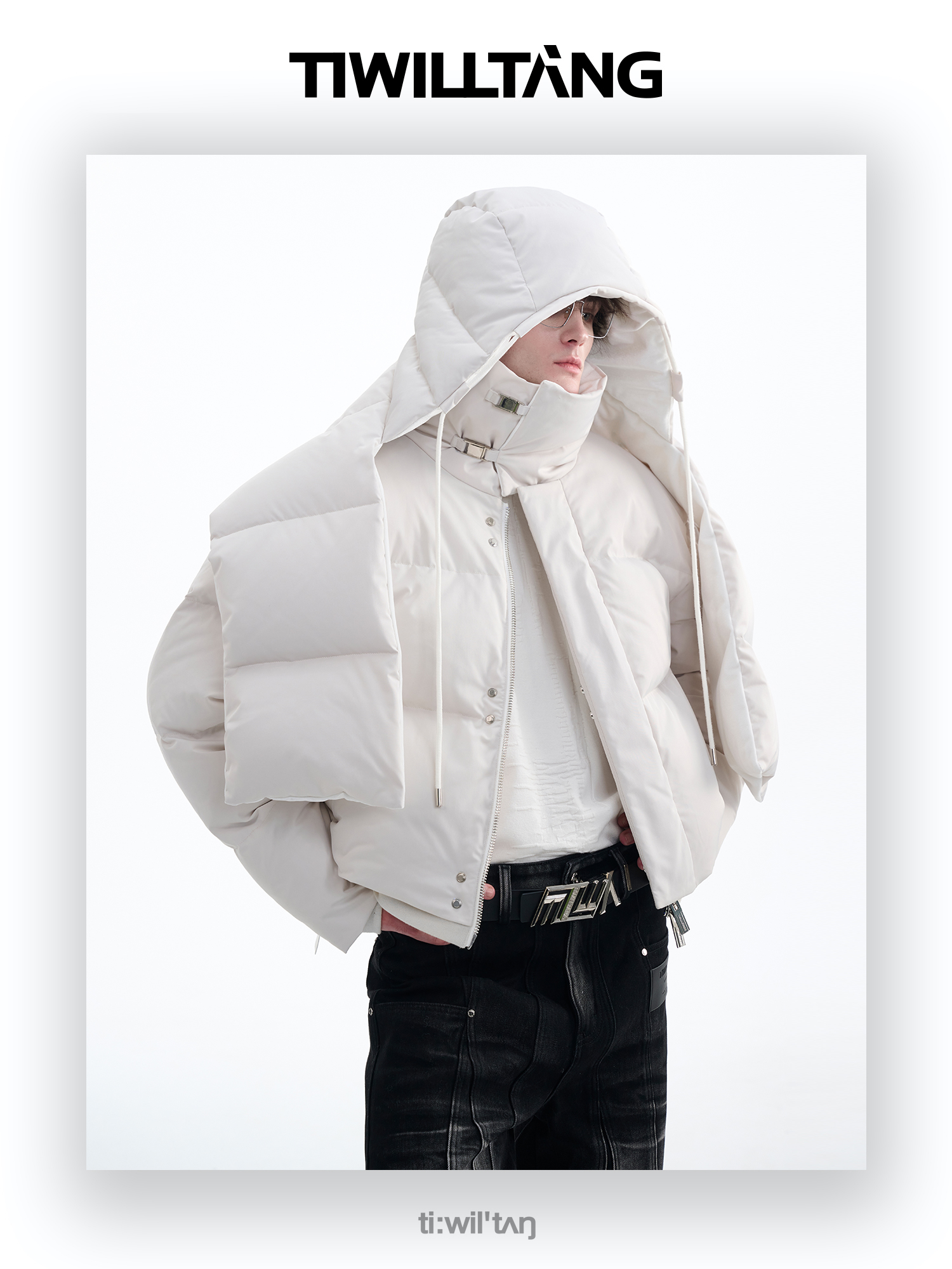 TIWILLTANG启世录“翎寂巍耀”高颜值帽巾一体可拆卸嵿级羽绒服冬
