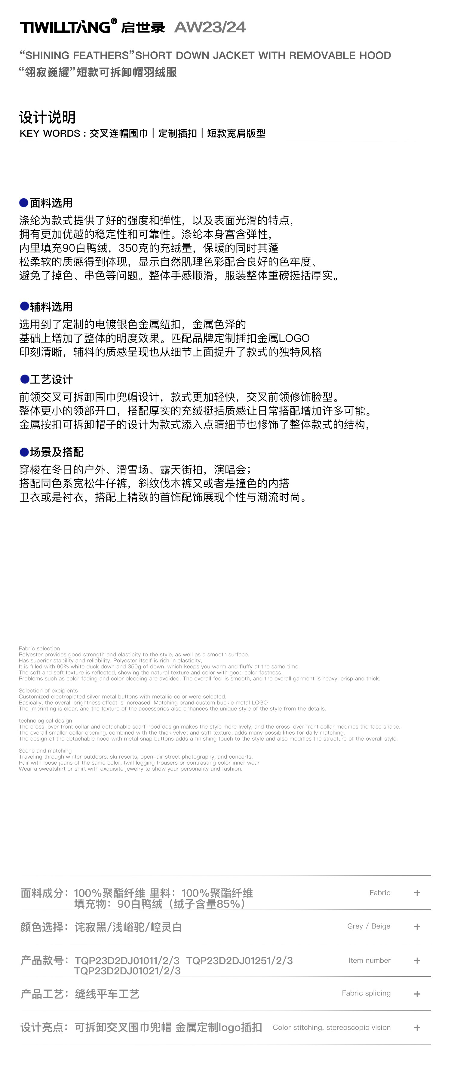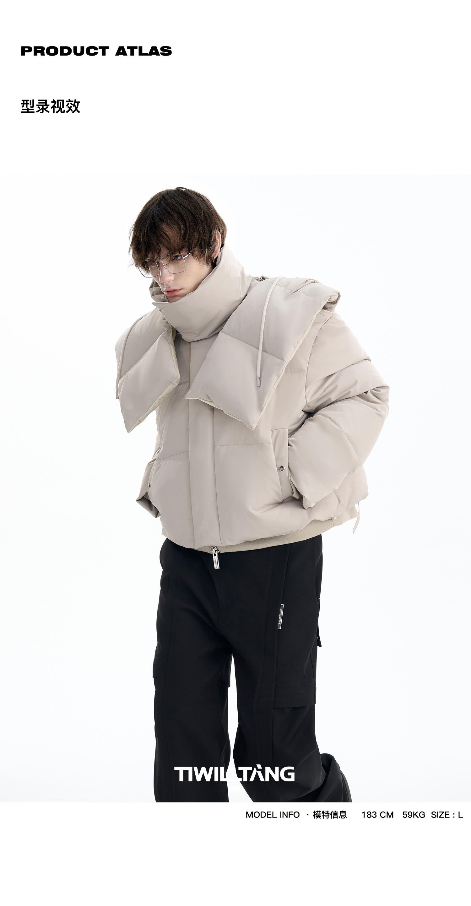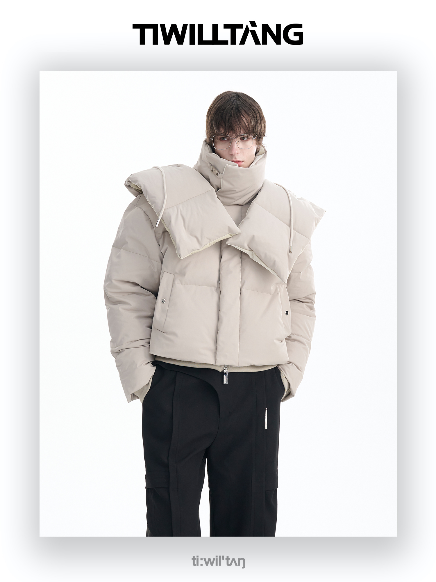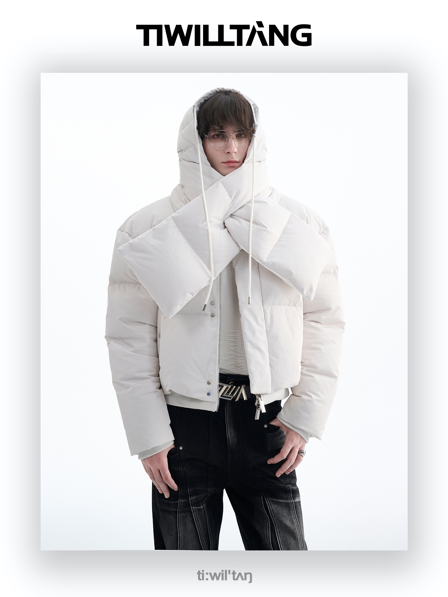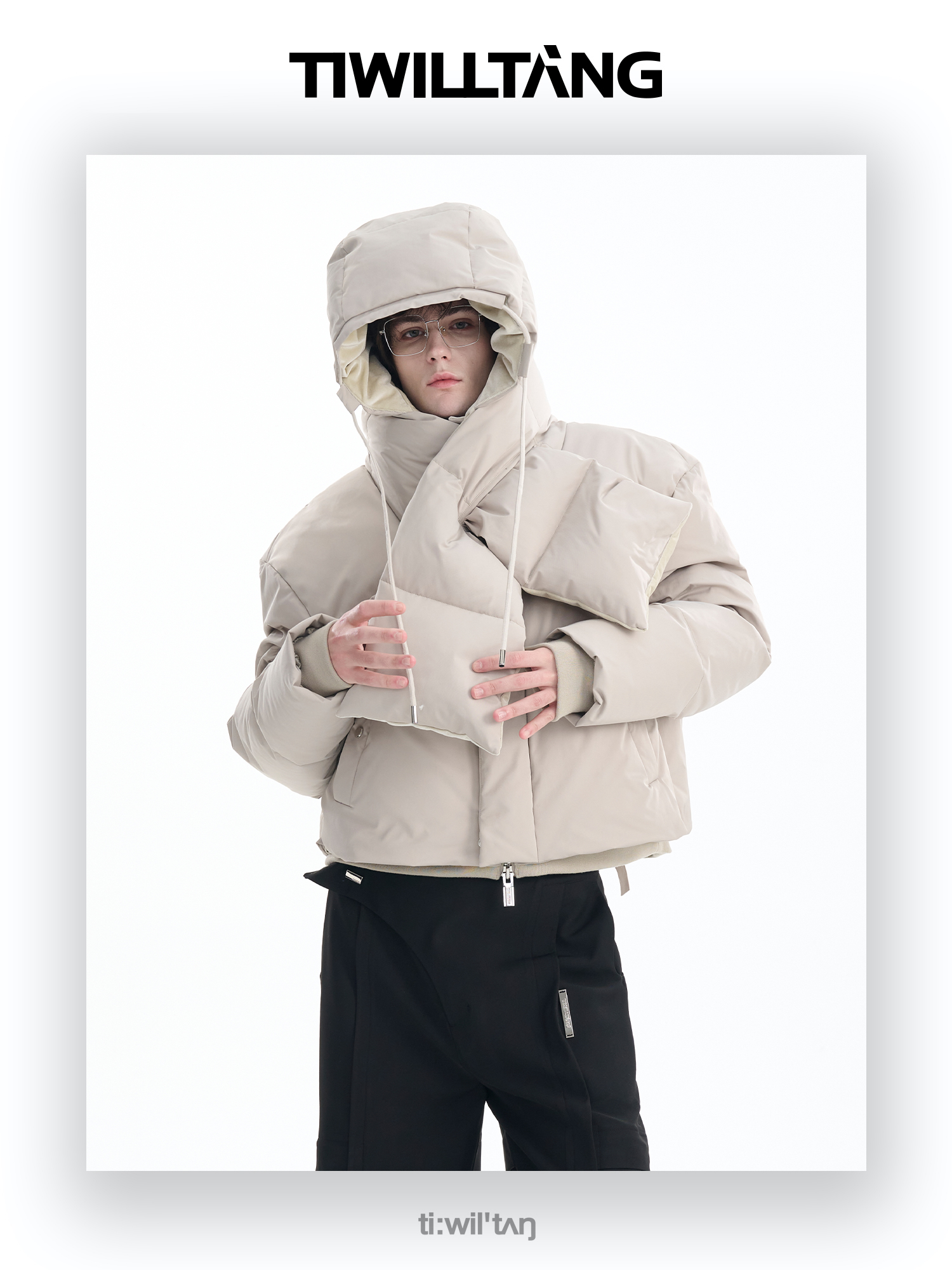 TIWILLTANG启世录“翎寂巍耀”高颜值帽巾一体可拆卸嵿级羽绒服冬