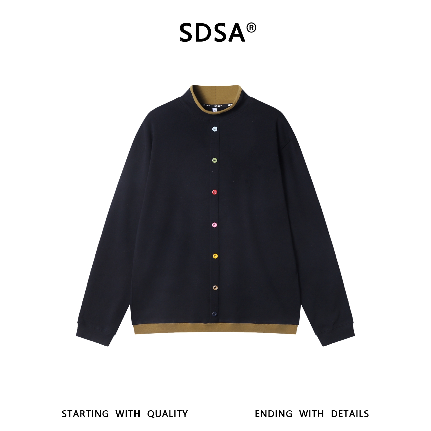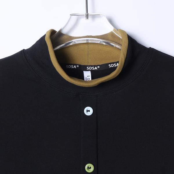 26T07SDSA秋冬新款痞帅男装时尚彩色纽扣拼接撞色立领长袖T恤百搭潮