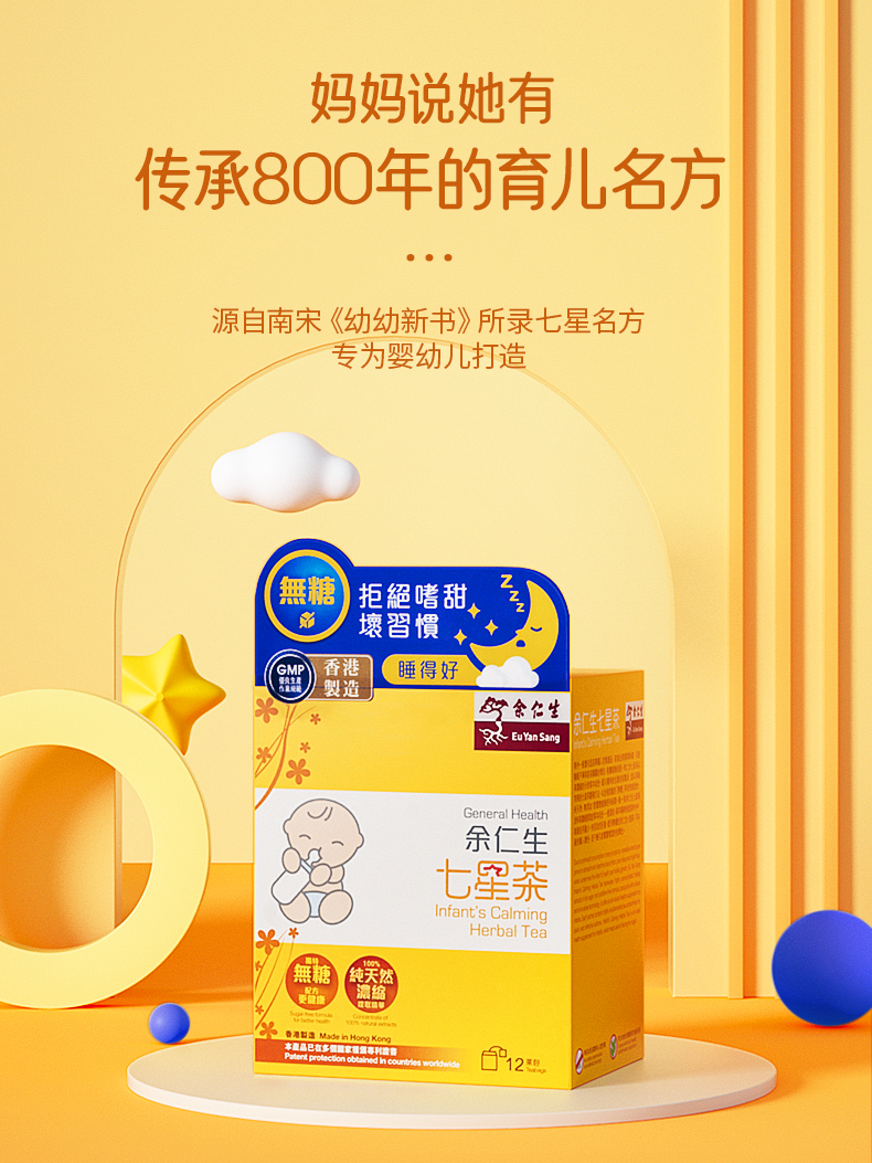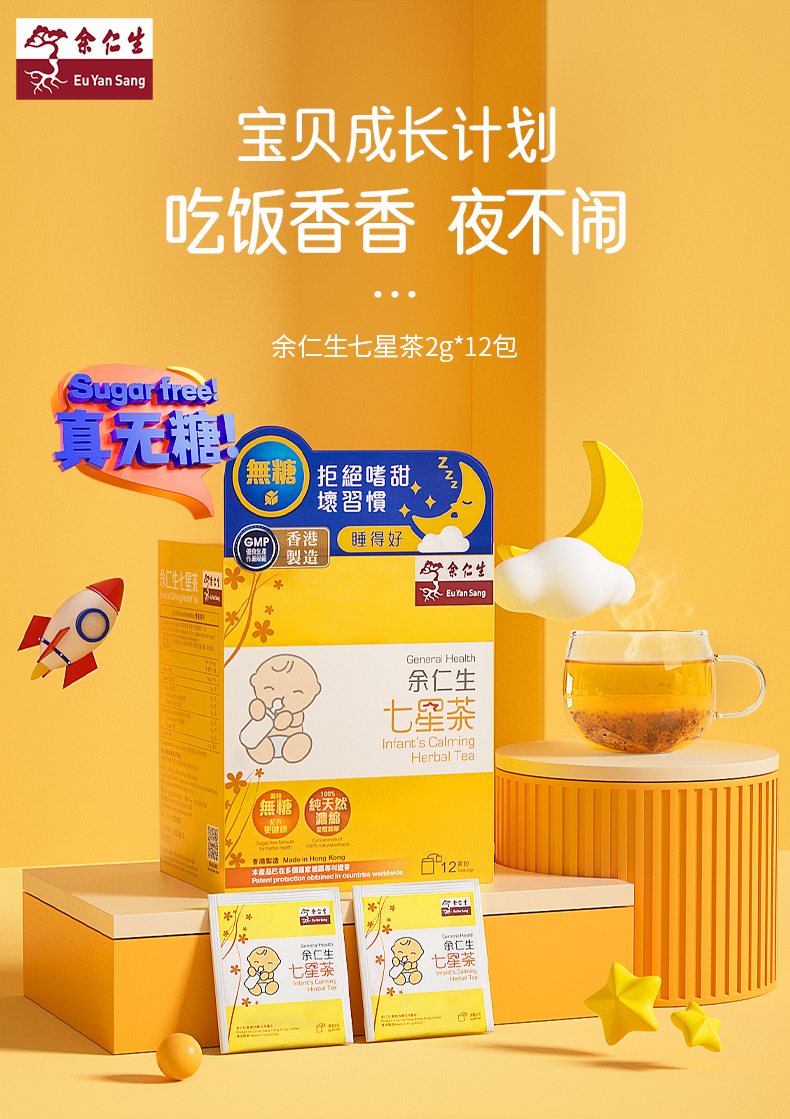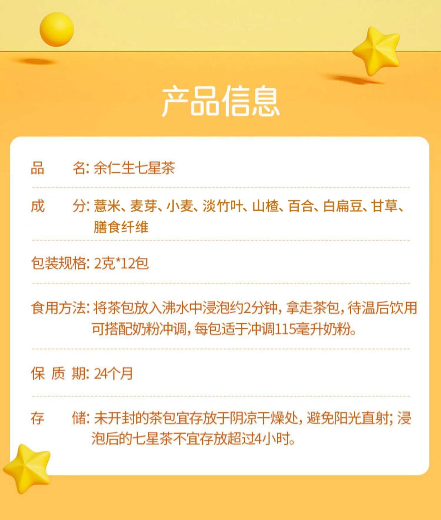 【香港直邮】肠胃消化胃风气带睡眠不宁 正品余仁生七星茶 (12包装)