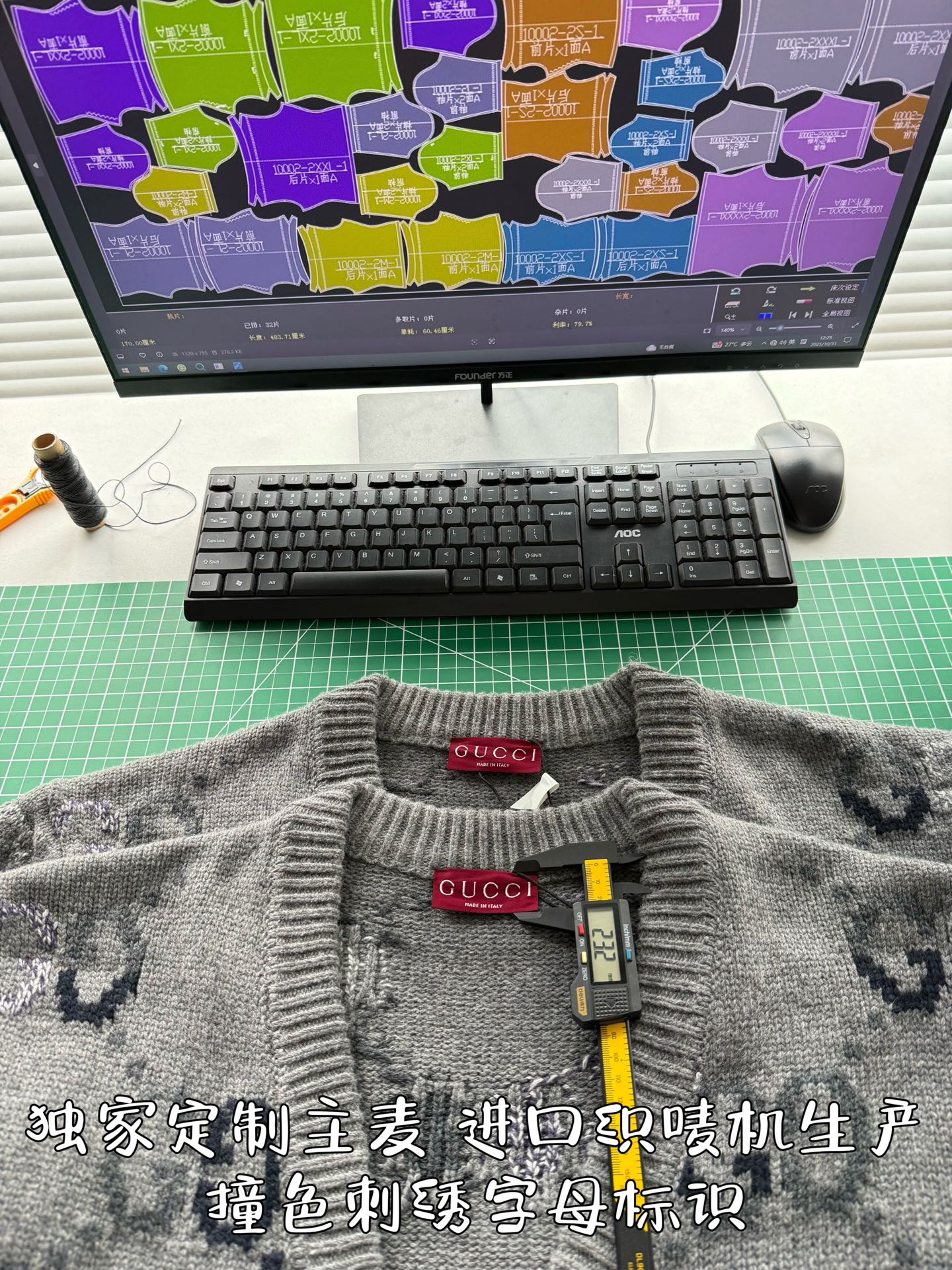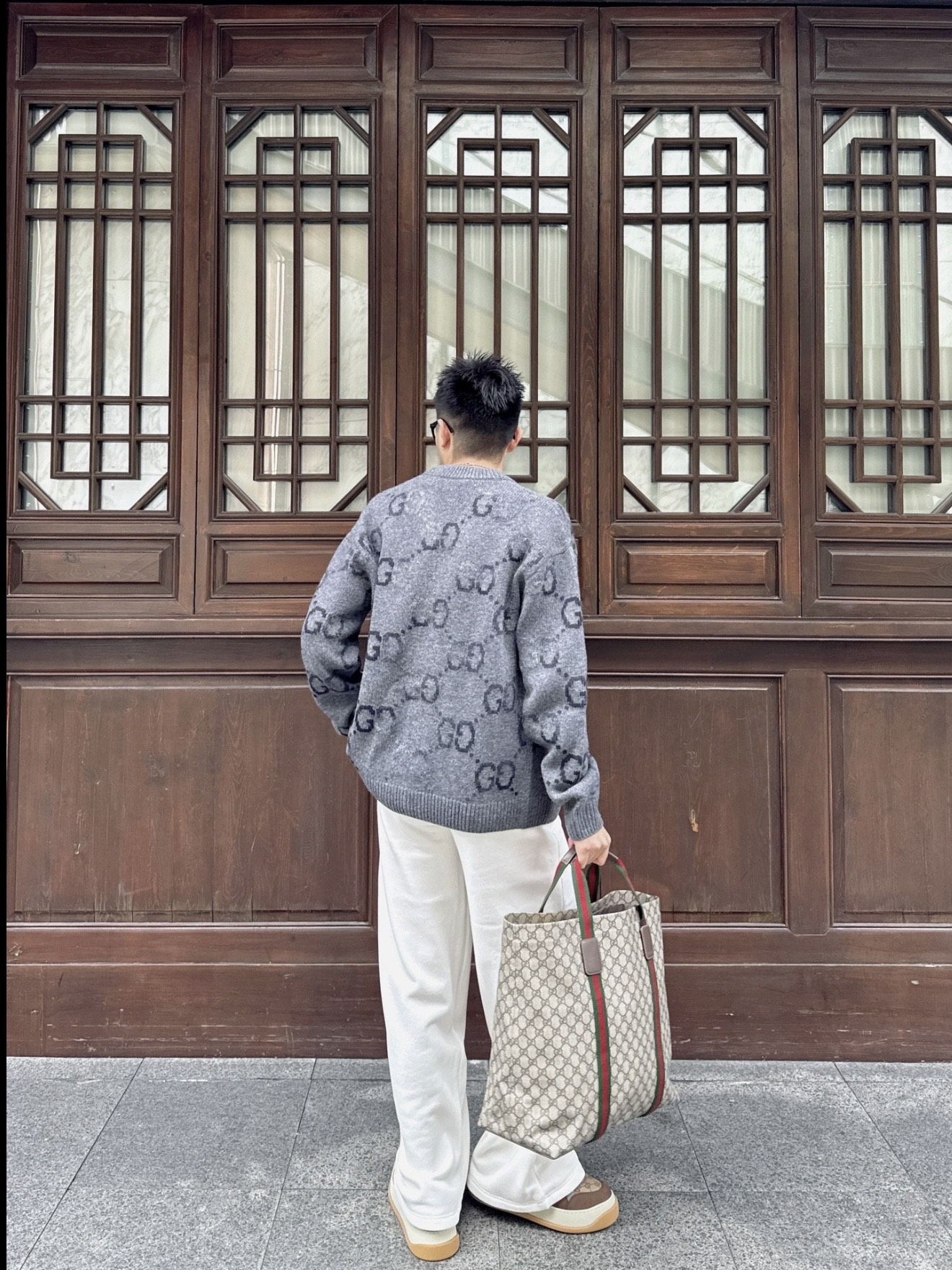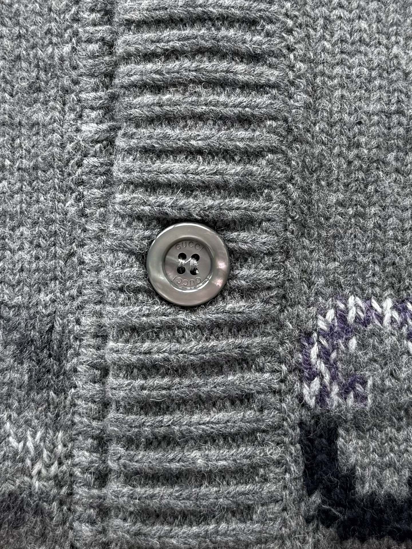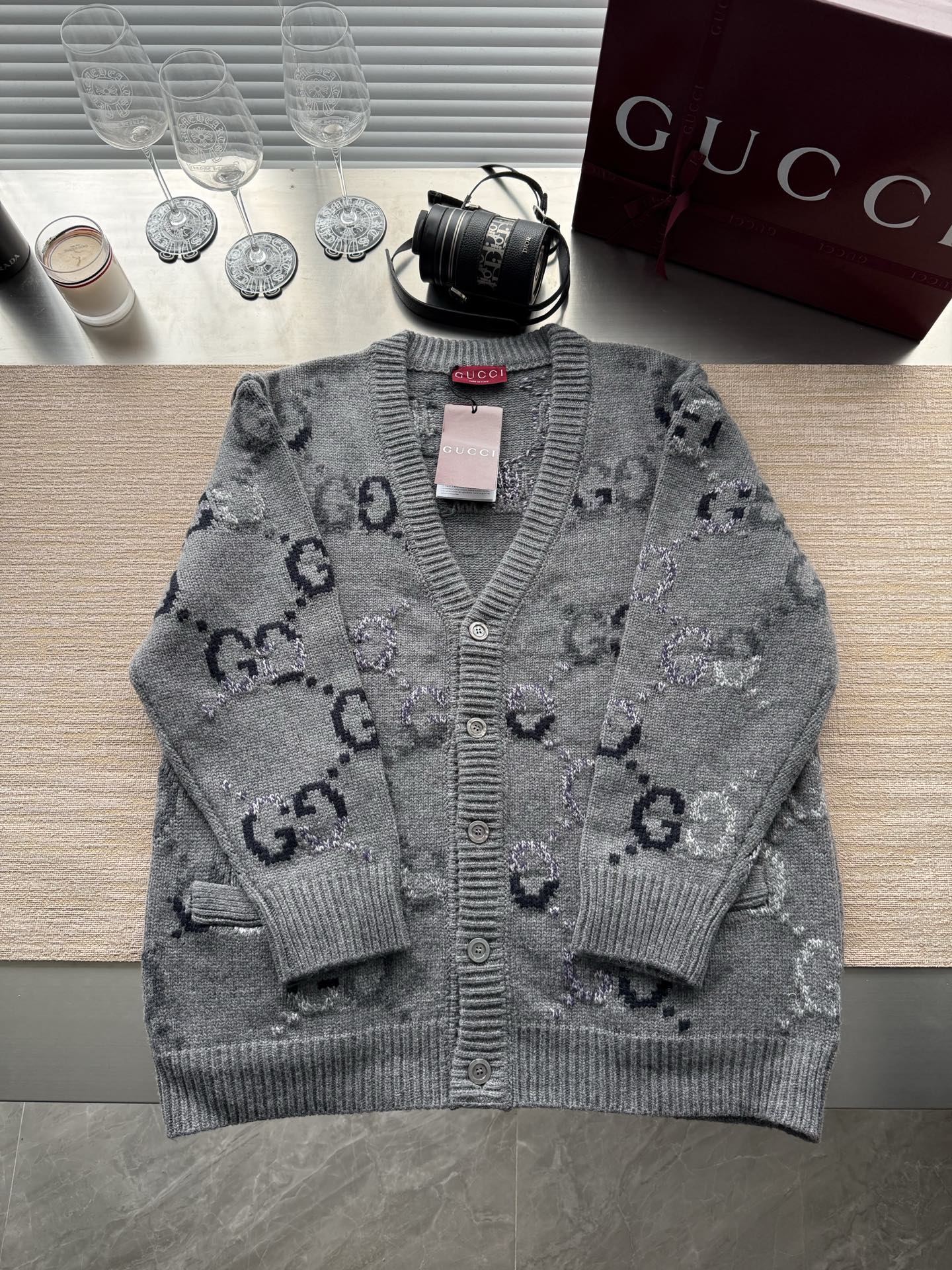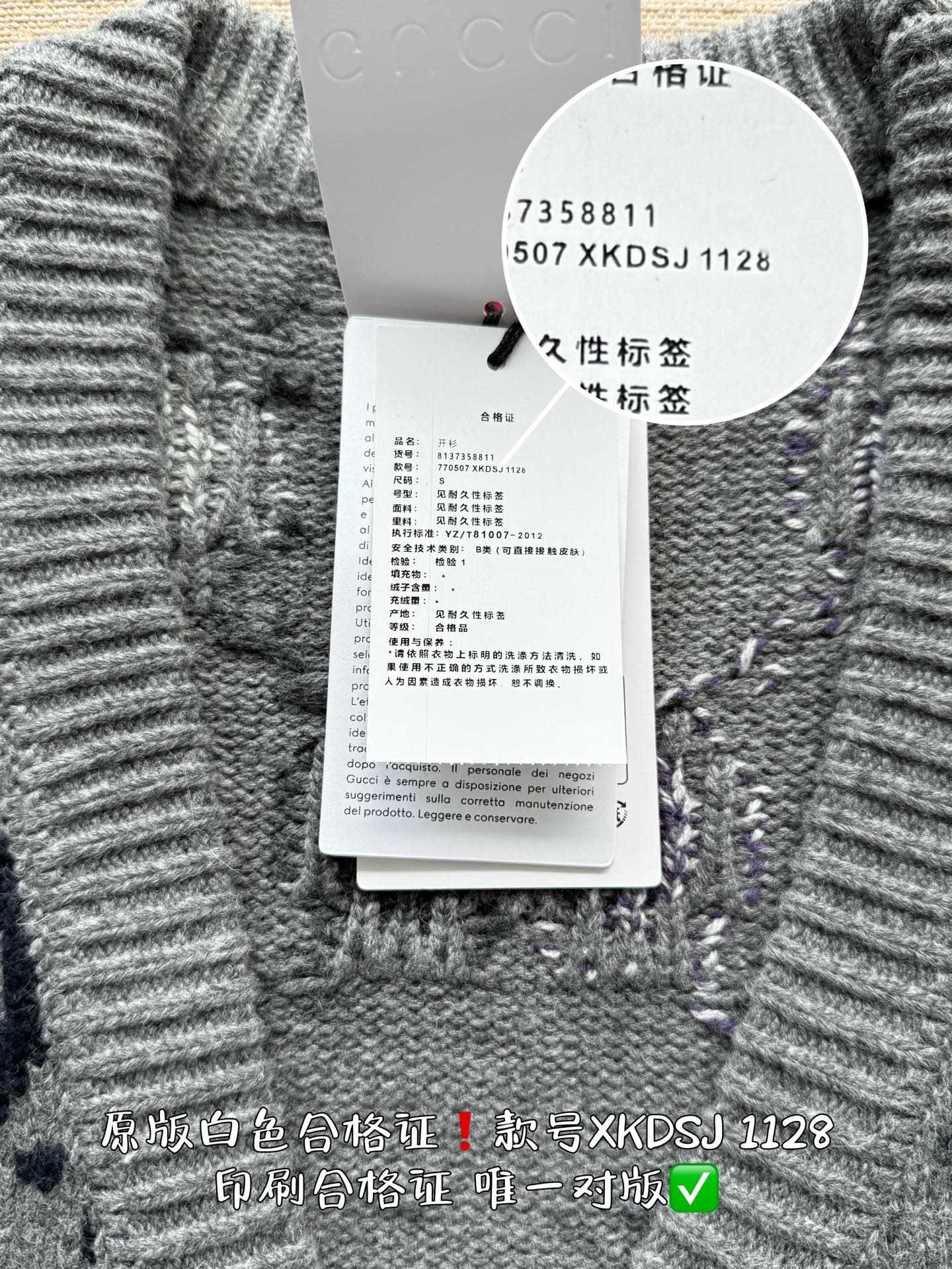 Gucci 2025 FW GG提花羊毛针织开衫‼️整件衣服14000购买Zp拆解打造,定制美利奴羊毛面料,全幅饰以GG字母提花,提花做到与面料融为一体,门襟开模定制GUCCI字母logo珍珠母贝纽扣,定织标志性罗纹V领 袖口 下摆,超紧密度局部编织,真正做到1:1copy 闭眼入 码数:S M L XL