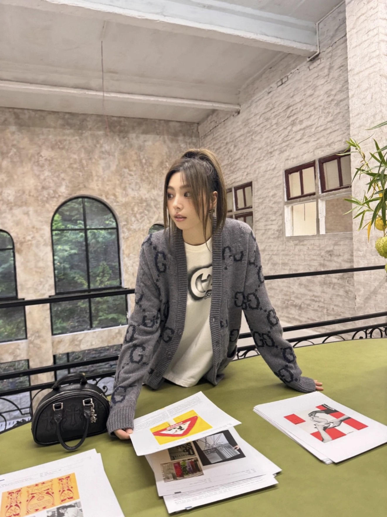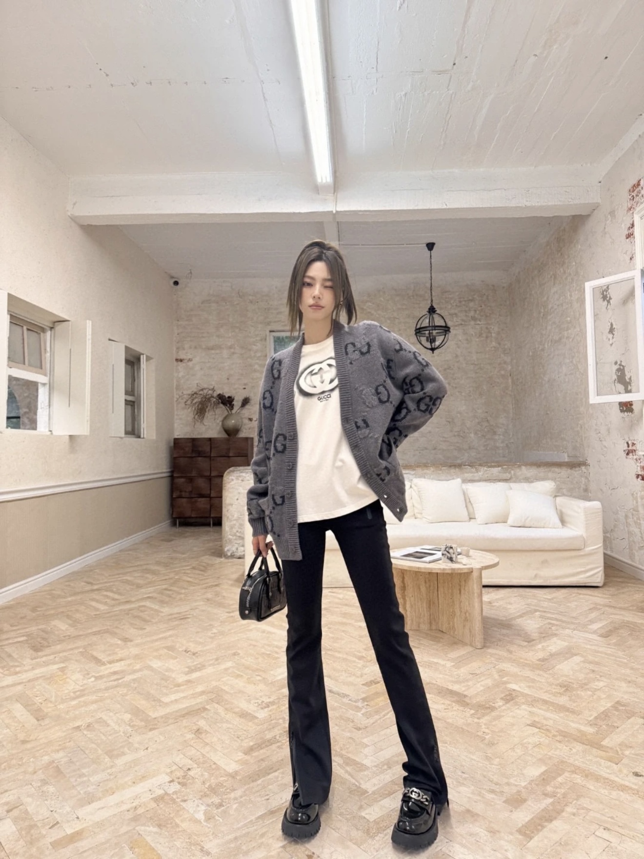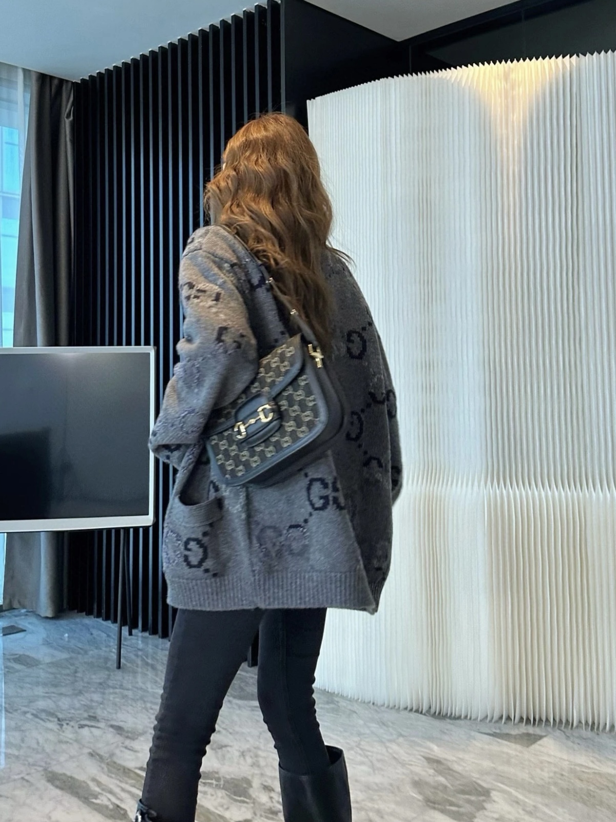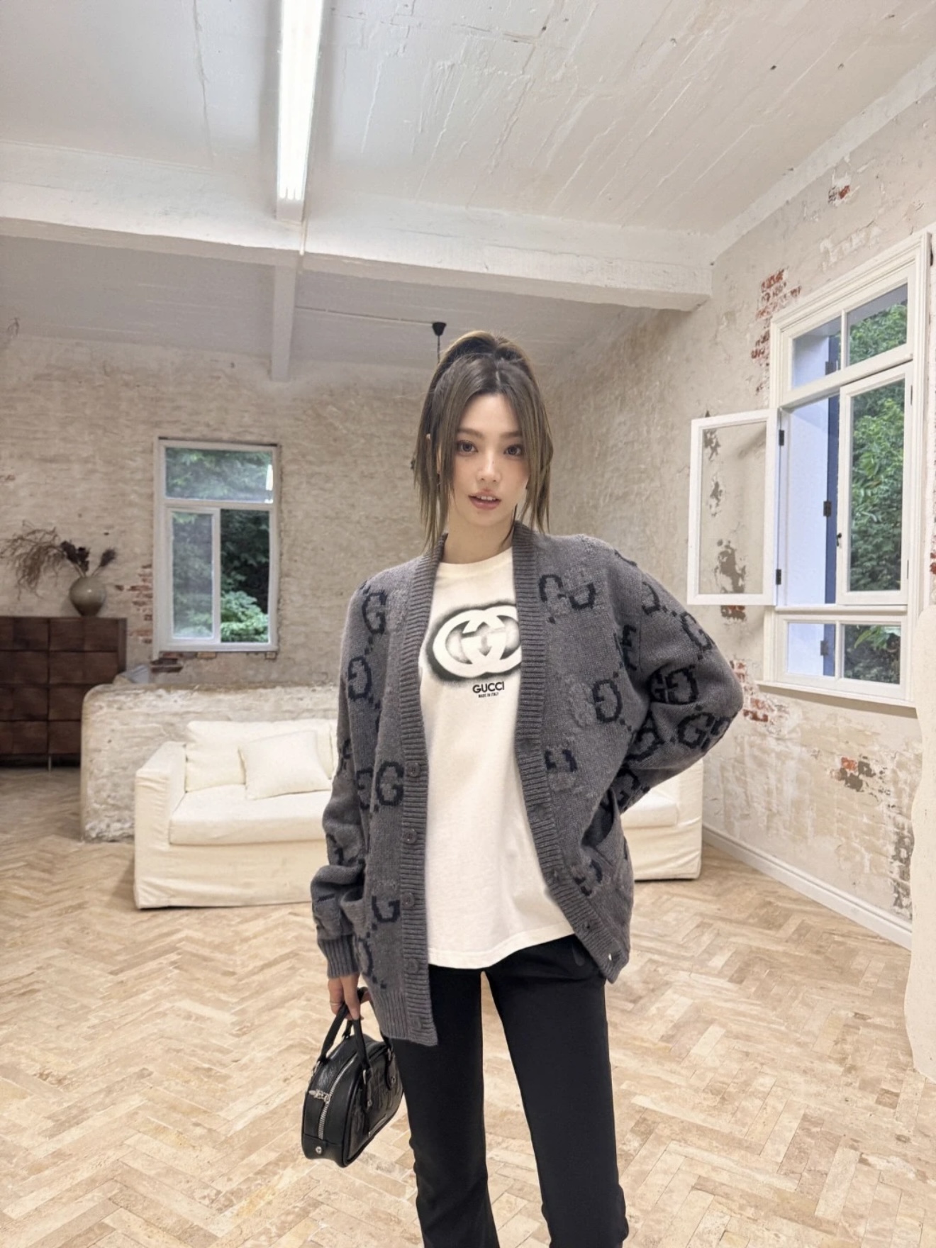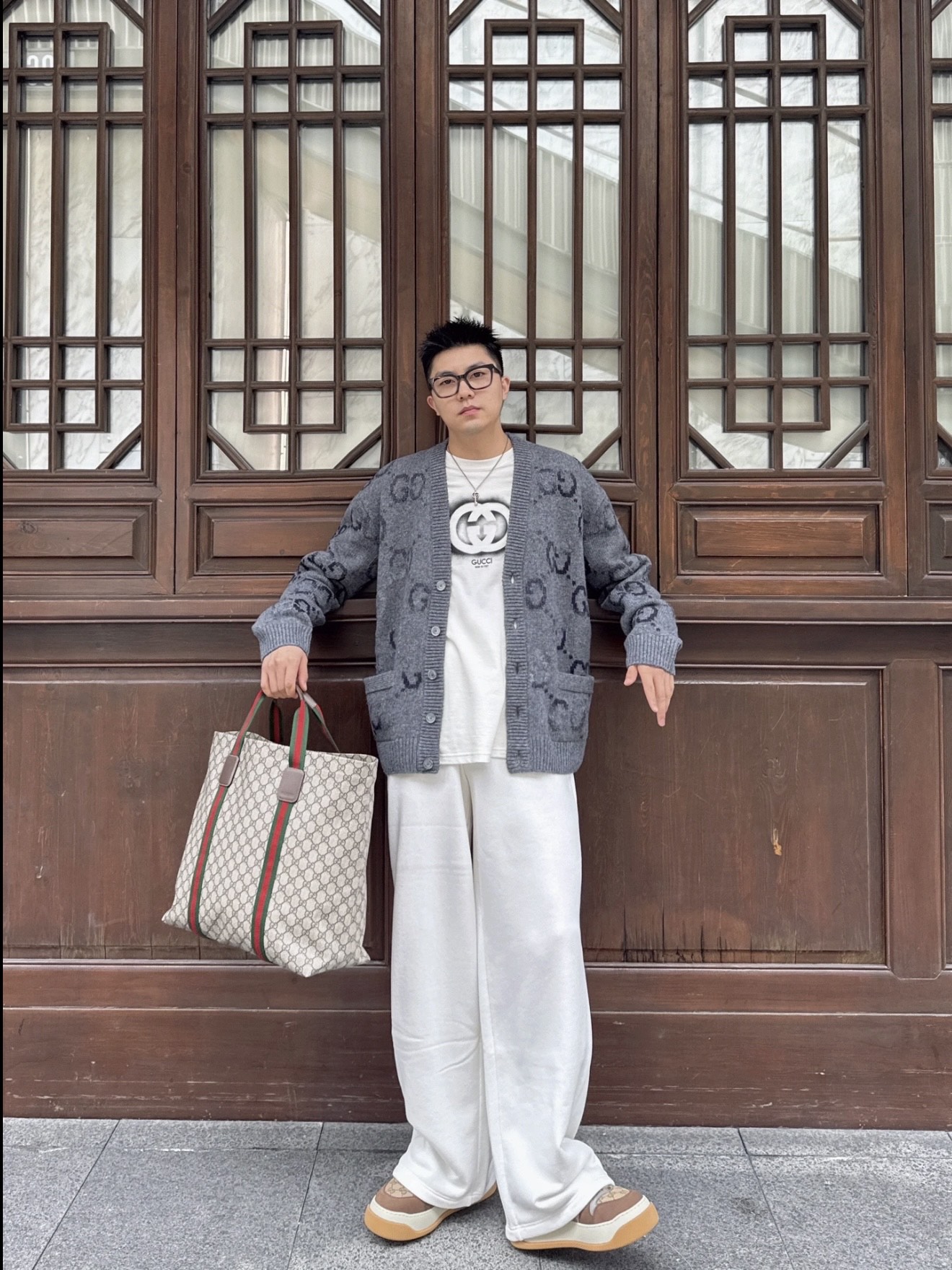 Gucci 2025 FW GG提花羊毛针织开衫‼️整件衣服14000购买Zp拆解打造,定制美利奴羊毛面料,全幅饰以GG字母提花,提花做到与面料融为一体,门襟开模定制GUCCI字母logo珍珠母贝纽扣,定织标志性罗纹V领 袖口 下摆,超紧密度局部编织,真正做到1:1copy 闭眼入 码数:S M L XL