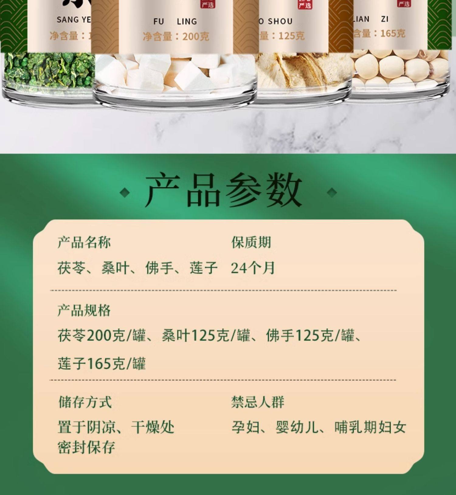 茯苓桑叶佛手柑莲子茶旗舰店中药材正品野生食用白伏苓片干500g粉