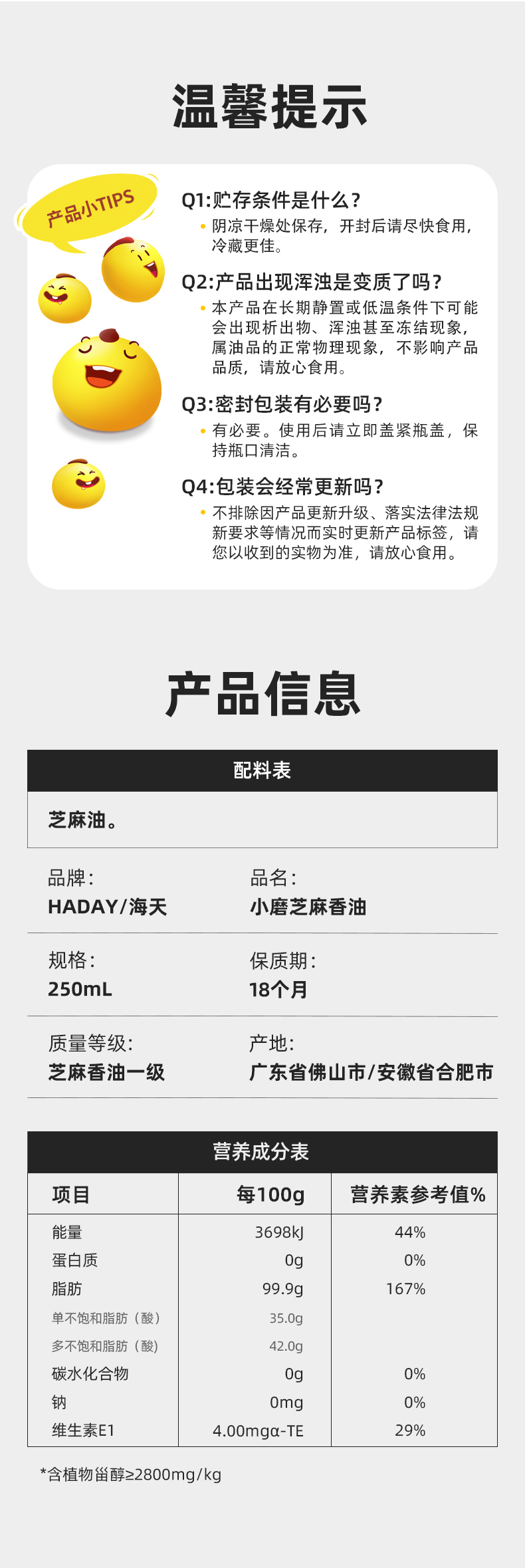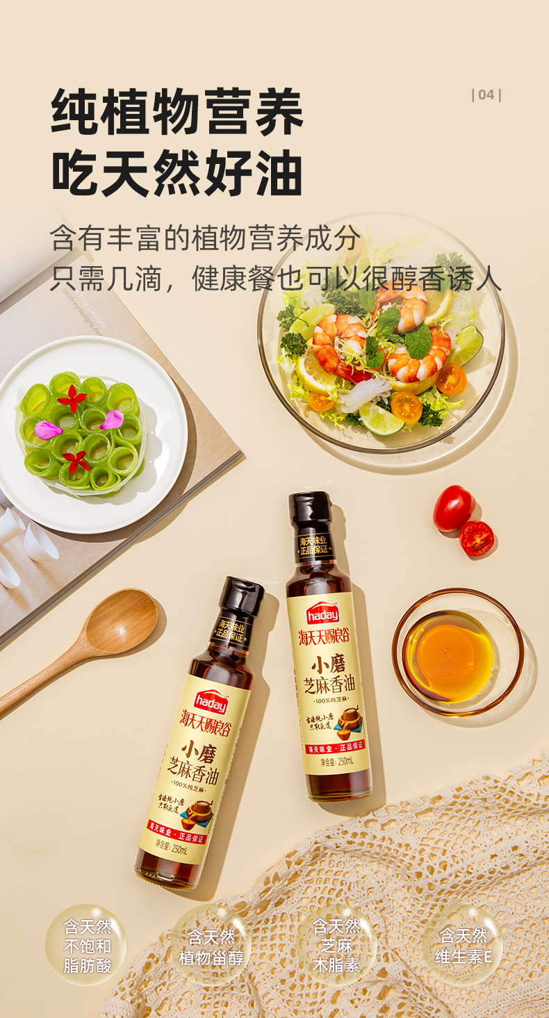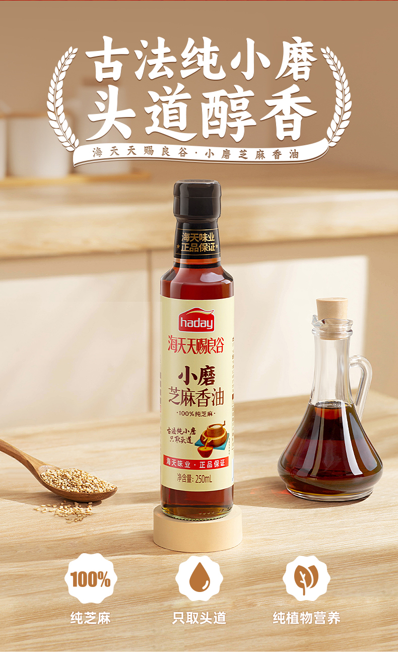 海天小磨芝麻香油250mL黑芝麻香油250ml不添加