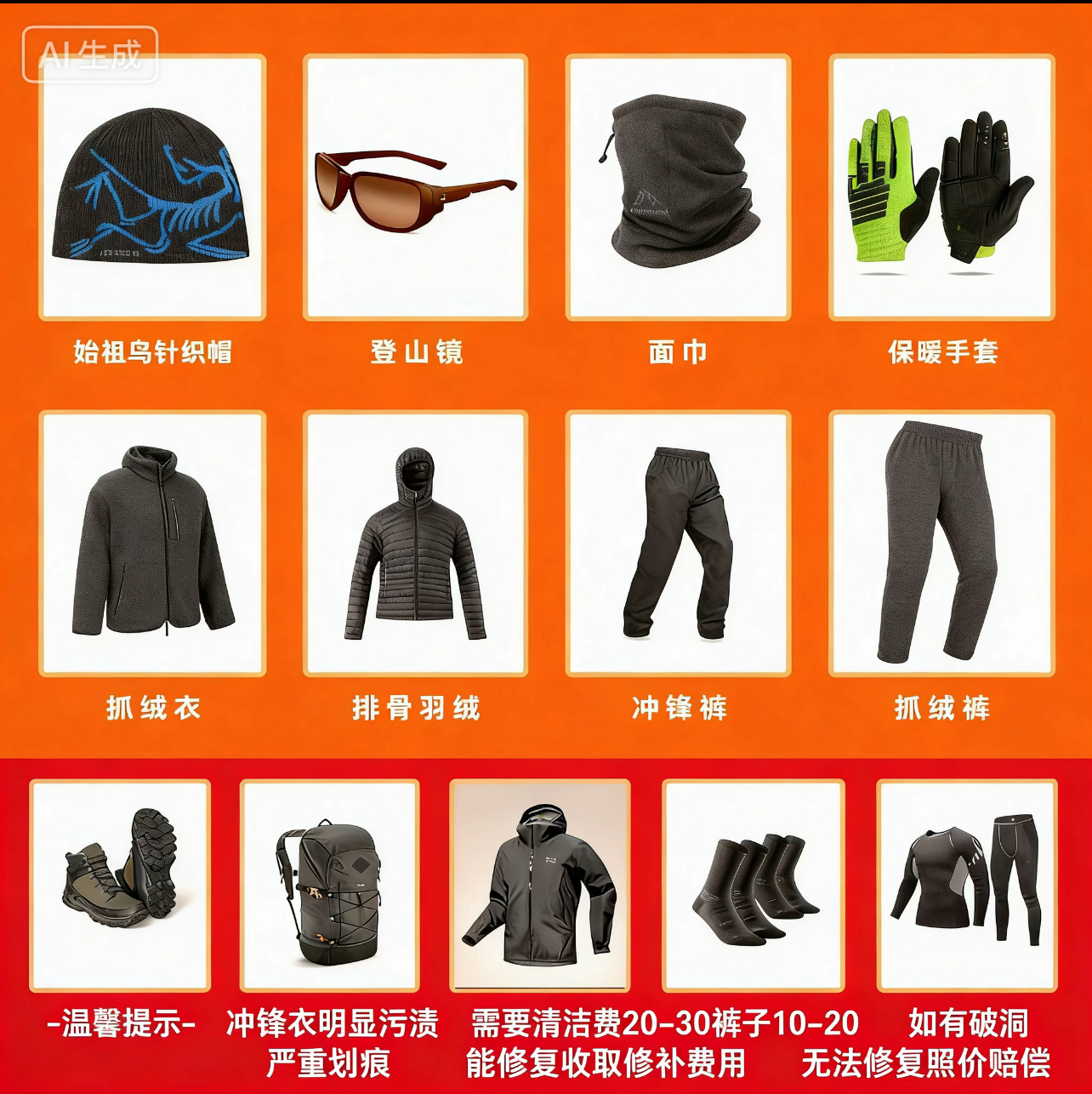 3.装备:护膝、头灯、登山杖、雪套、冰爪(俱乐部提供克不带)4.其他:身份证