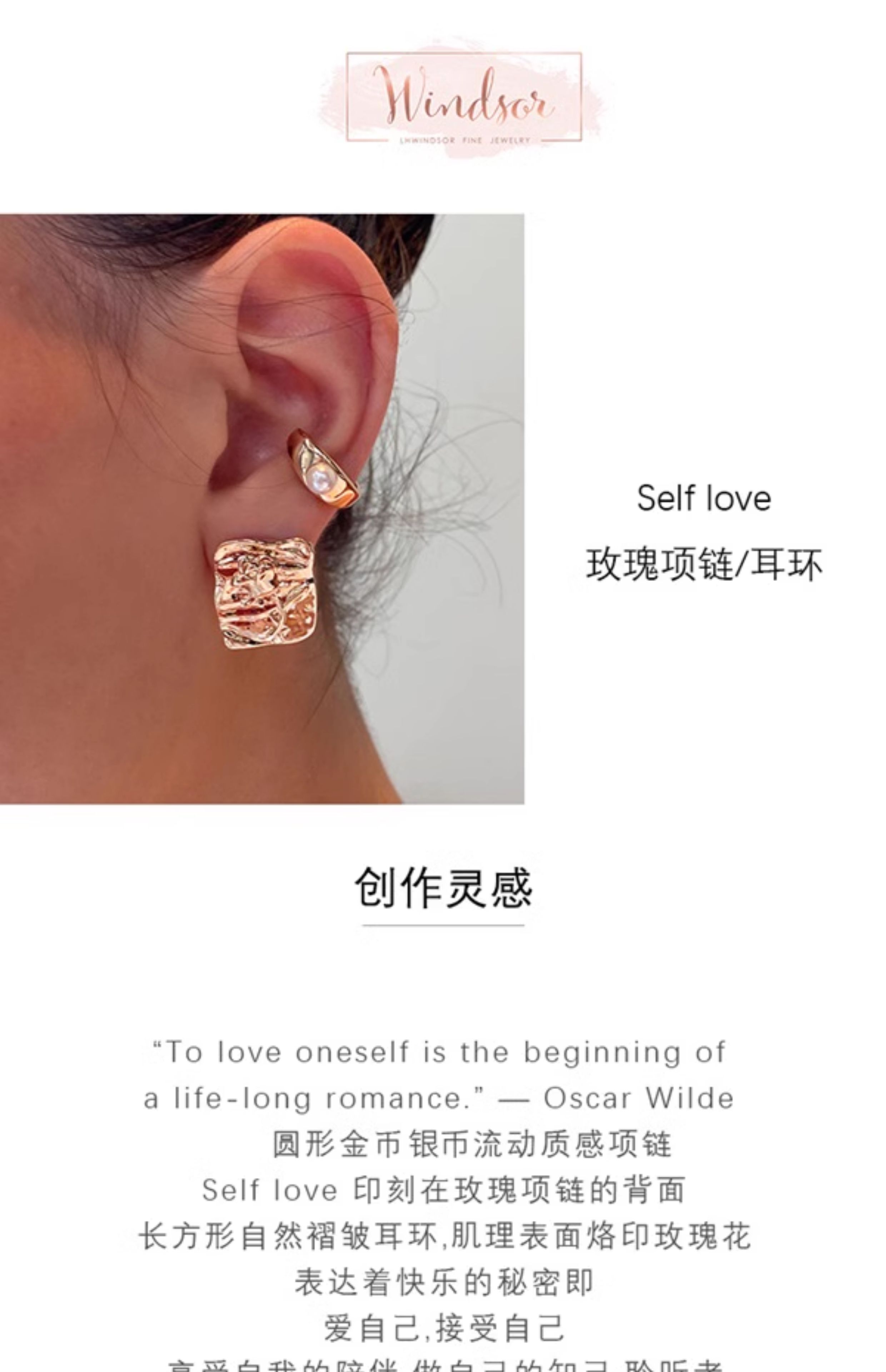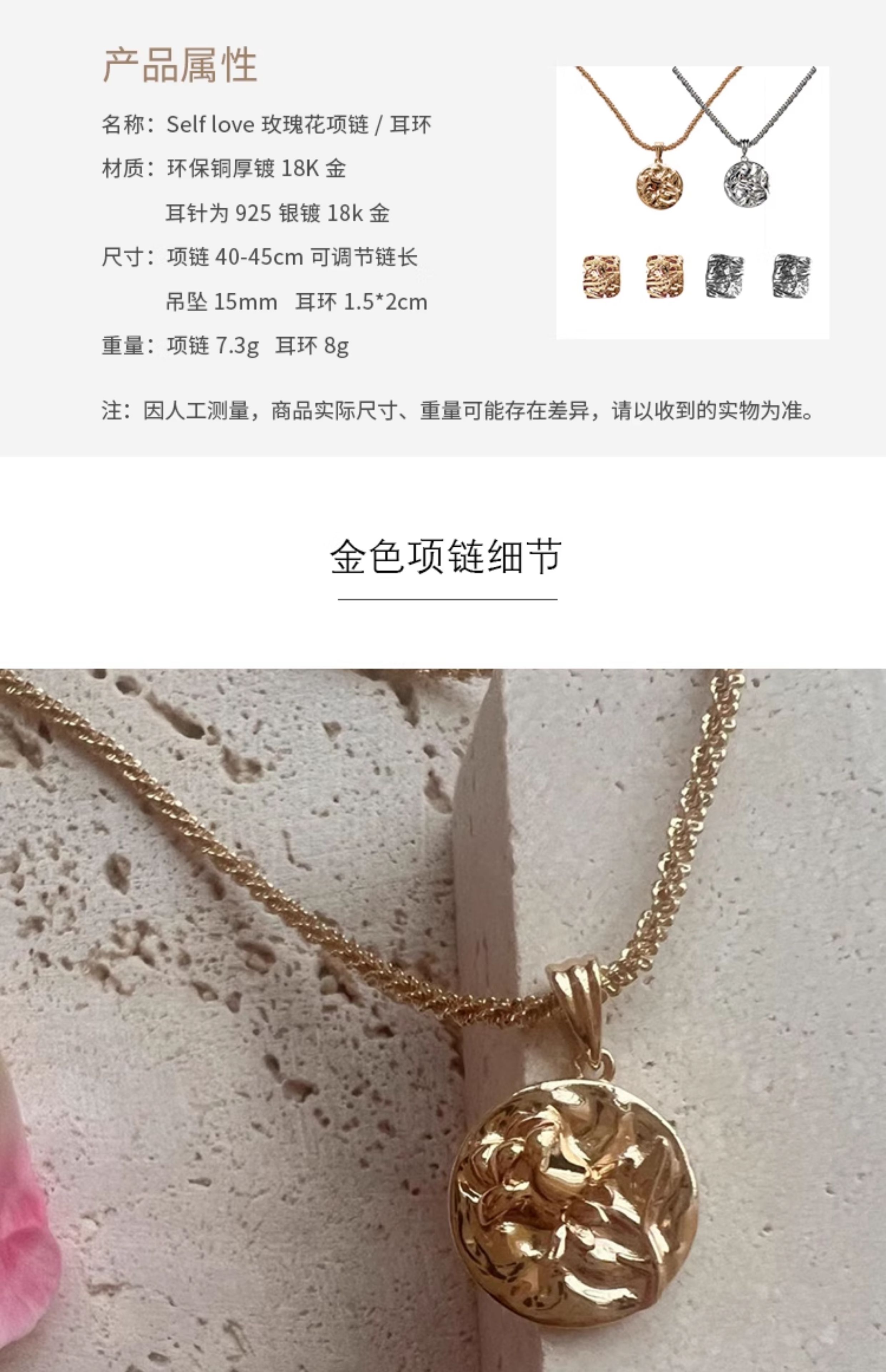LHWINDSOR Self love玫瑰花项链耳钉套装