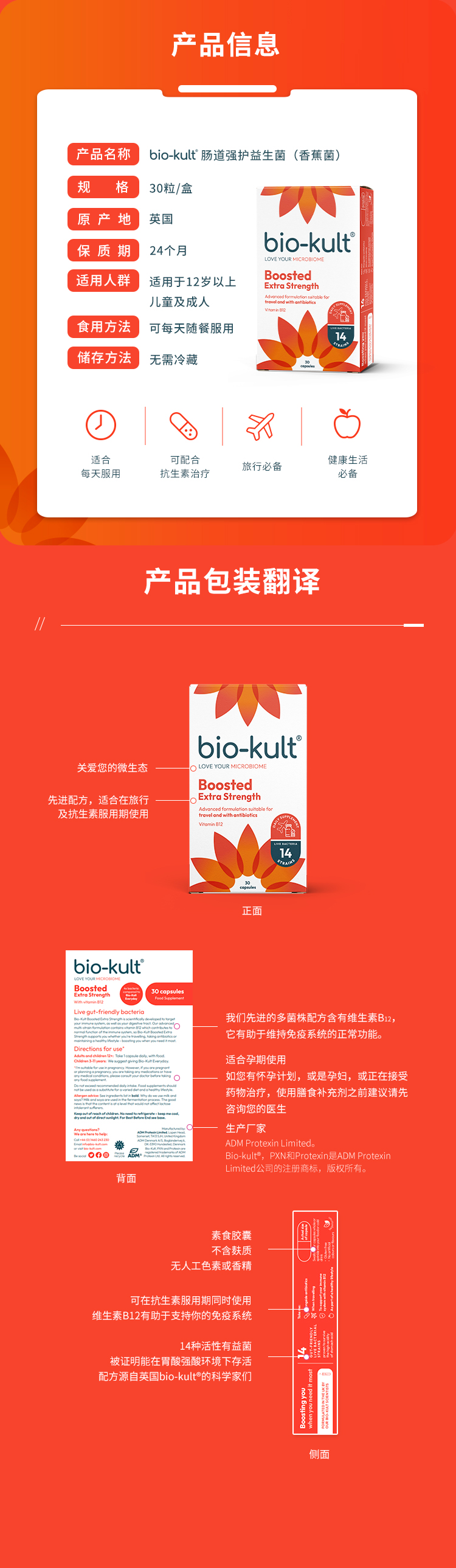 【香蕉菌】英国bio-kult百康百德肠道强护益生菌IBS肠应激30粒多规格