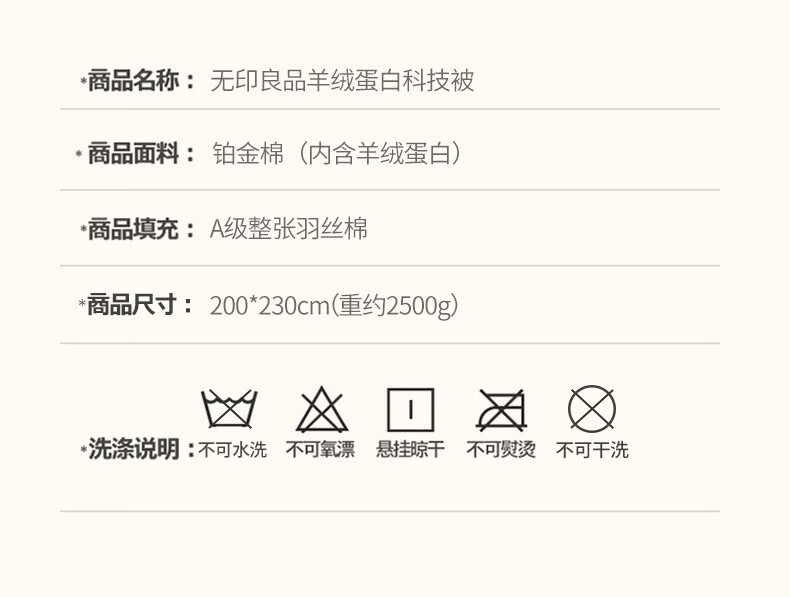 無印羊绒蛋白科技被MUJI-B22-66 双人被200*230cm