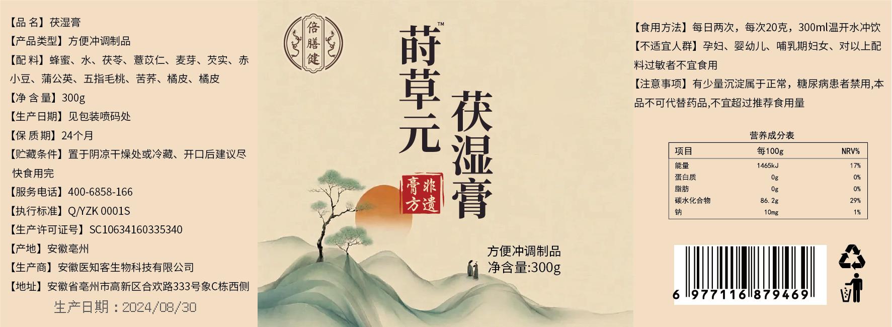 【旗舰正品】莳草元茯湿膏 伏湿膏茯苓薏仁膏匠心熬制浓缩冲饮300g