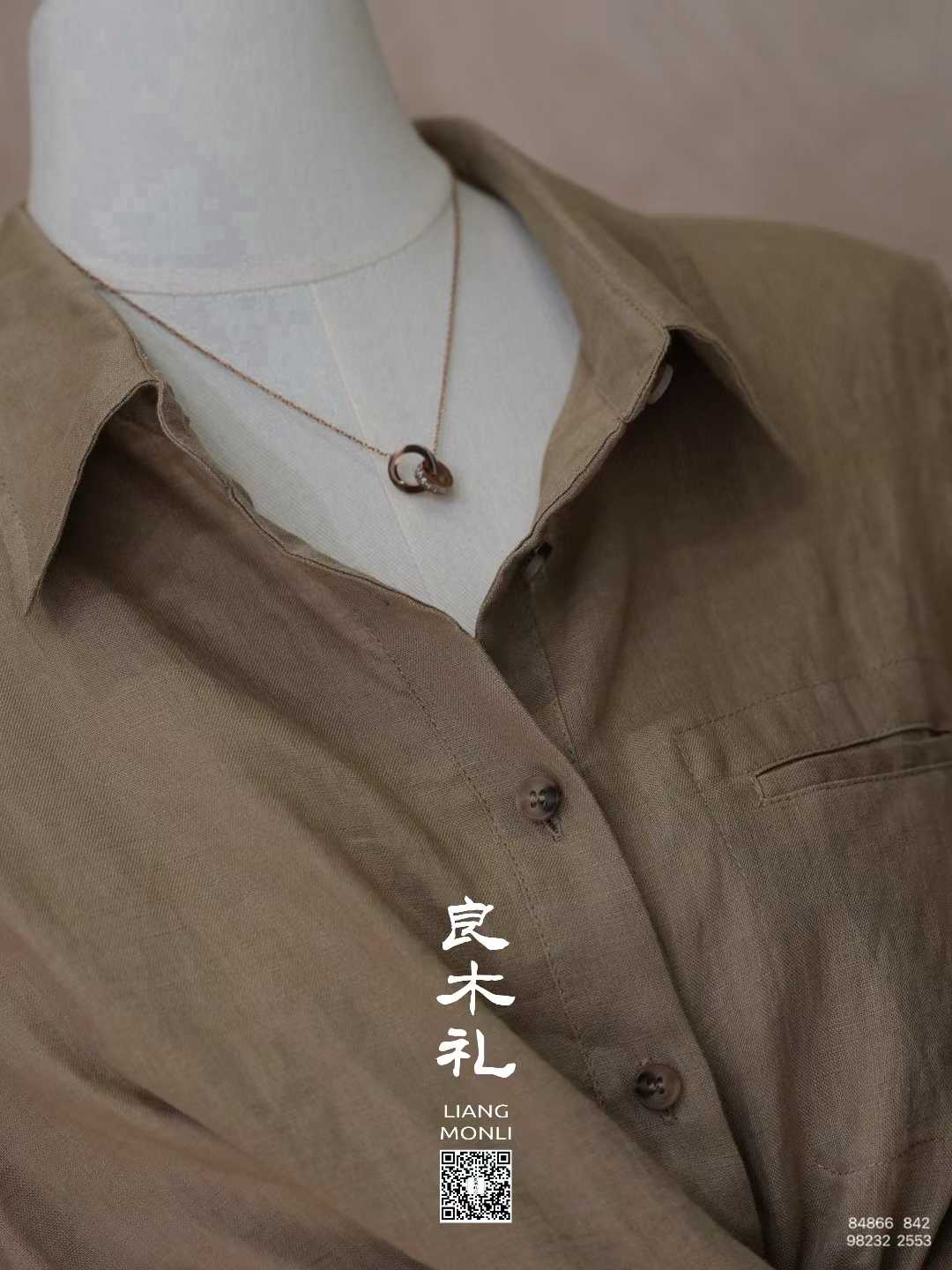 【现货】良木礼亚麻翻领衬衫(84866)