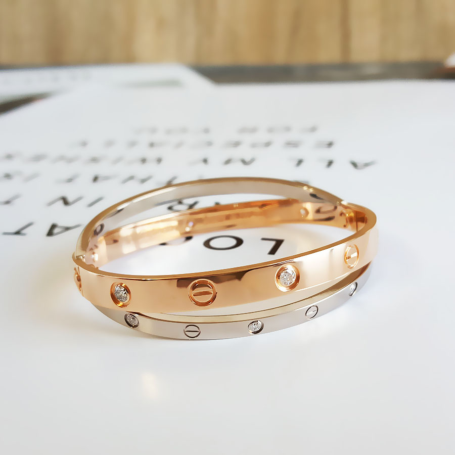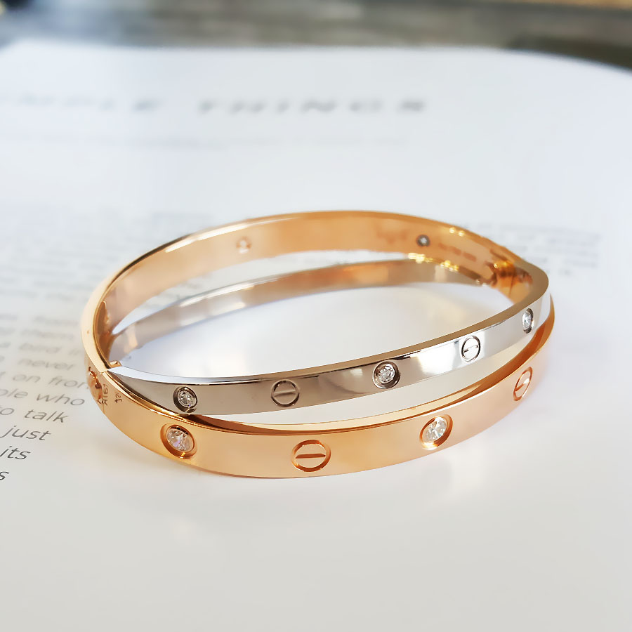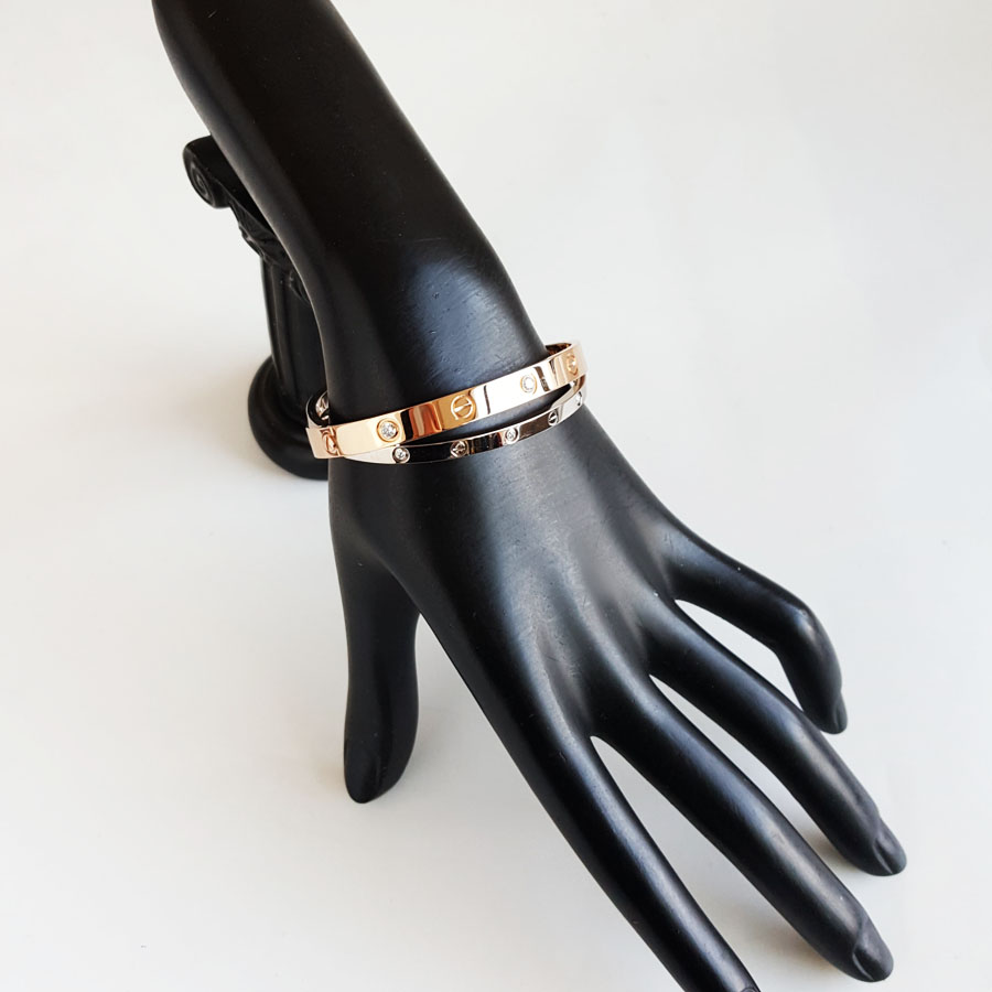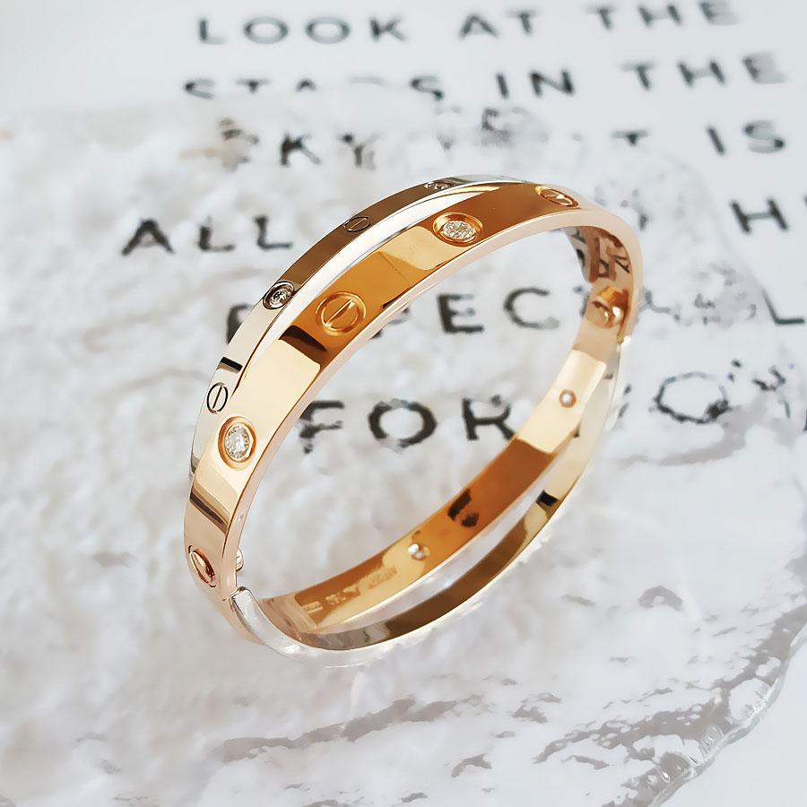 款式 | 18K玫瑰金白金双色双环交叉12钻LOVE手镯 |