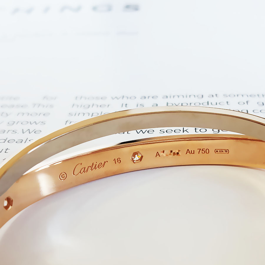 【95新】Cartier卡地亚LOVEN603911618K玫瑰金白金双色双环交叉12钻LOVE手镯16号151224TB01 现售价:54300