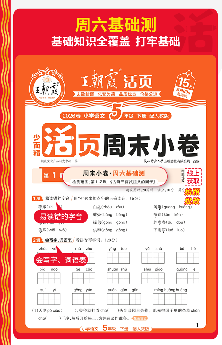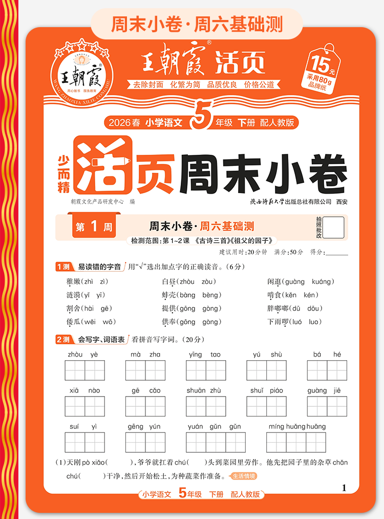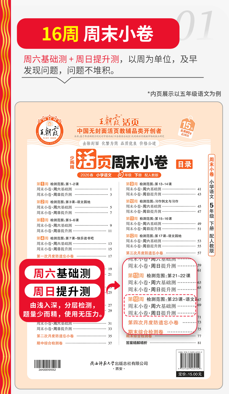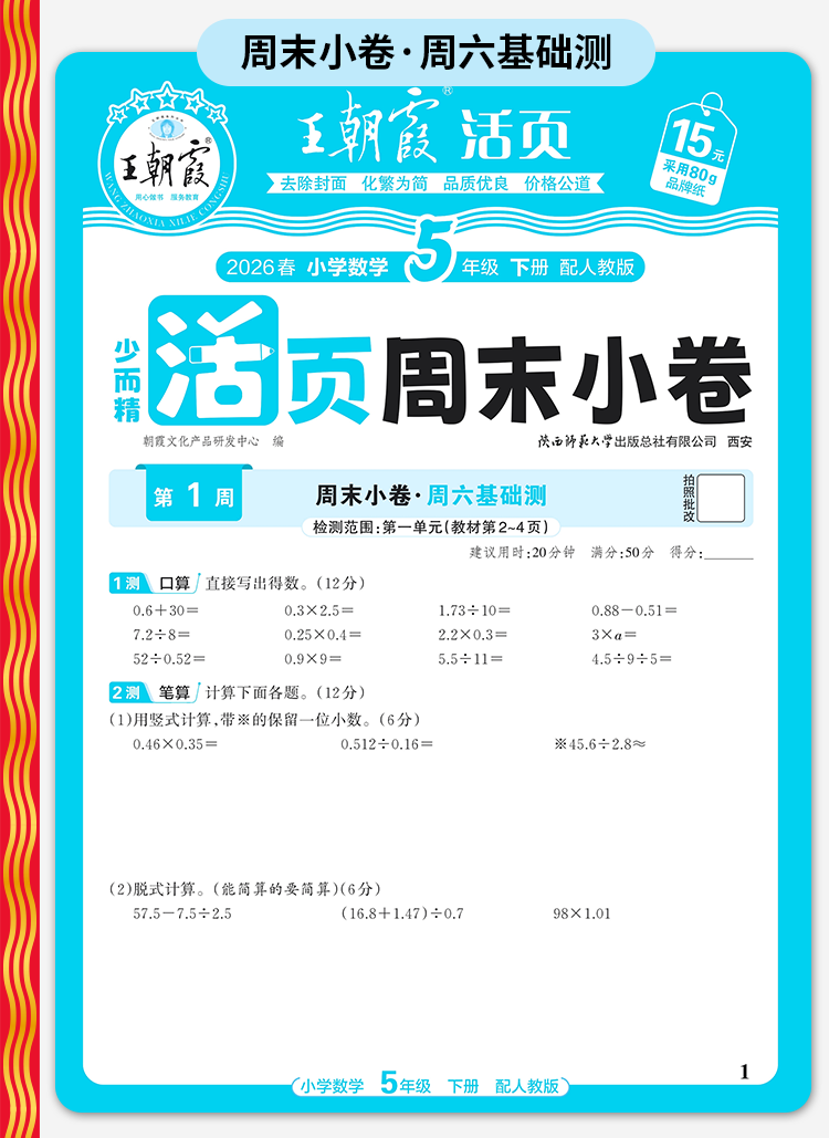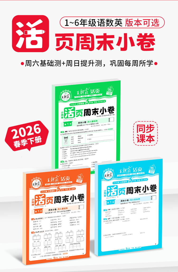 2026春下册王朝霞活页周末小卷语数英1-6年级
