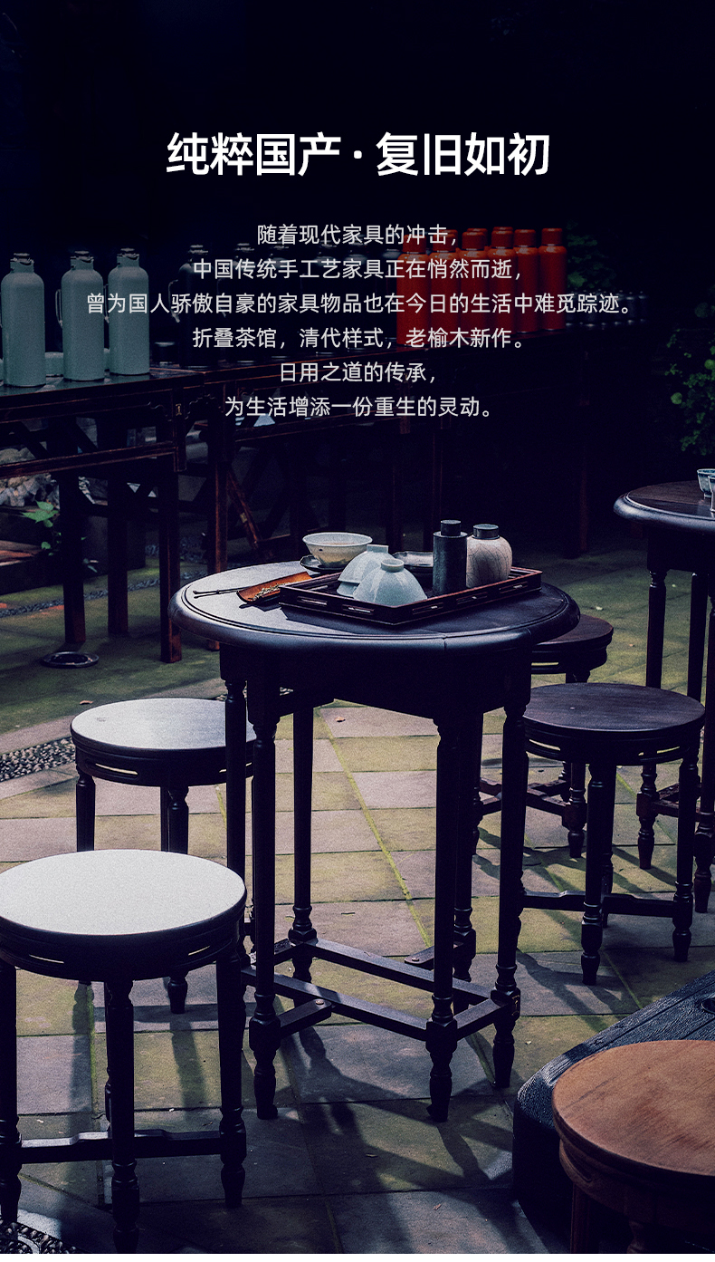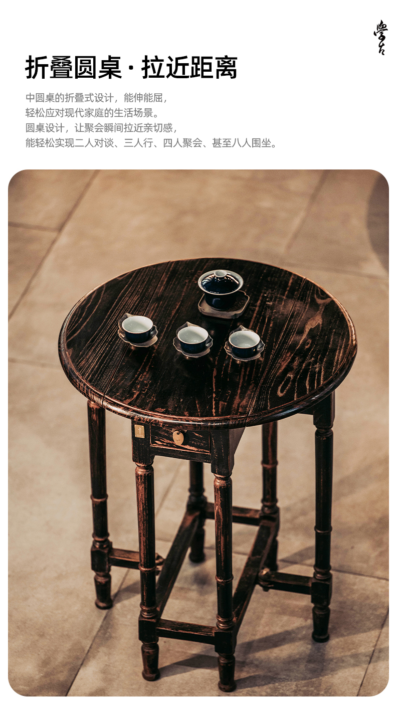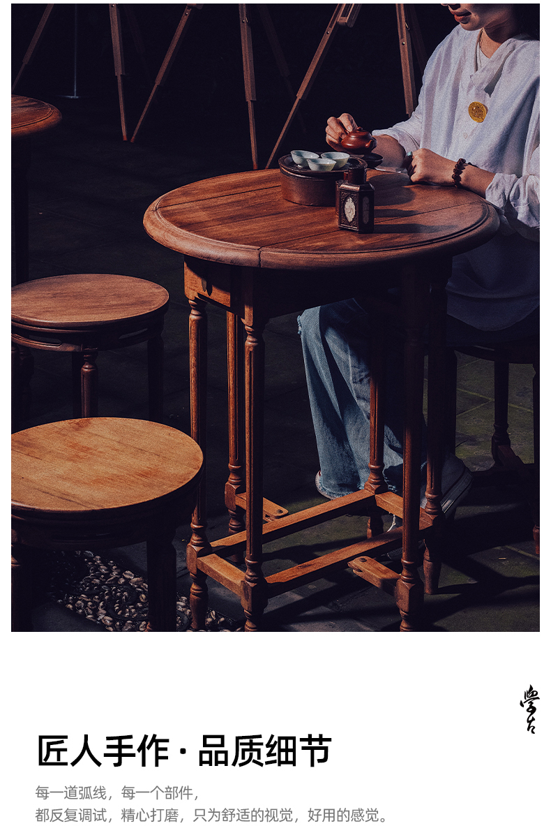娜家中圆桌 中式仿古漆榫卯结构可折叠一桌四凳