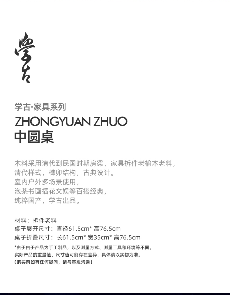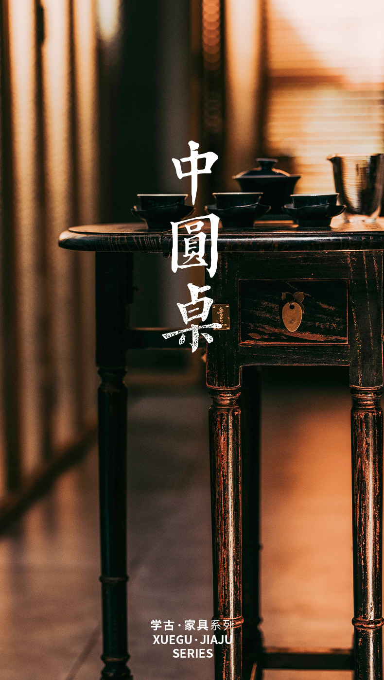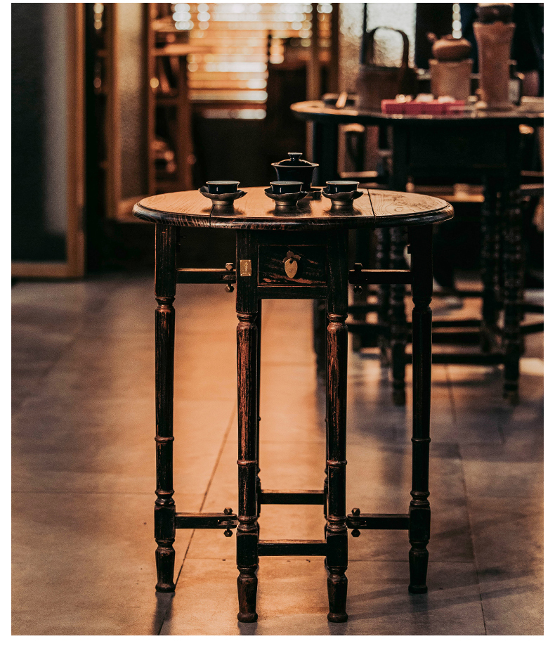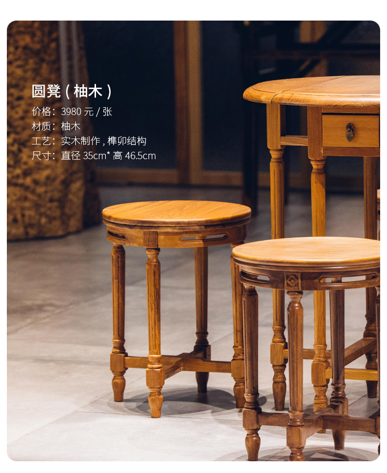 娜家中圆桌 中式仿古漆榫卯结构可折叠一桌四凳