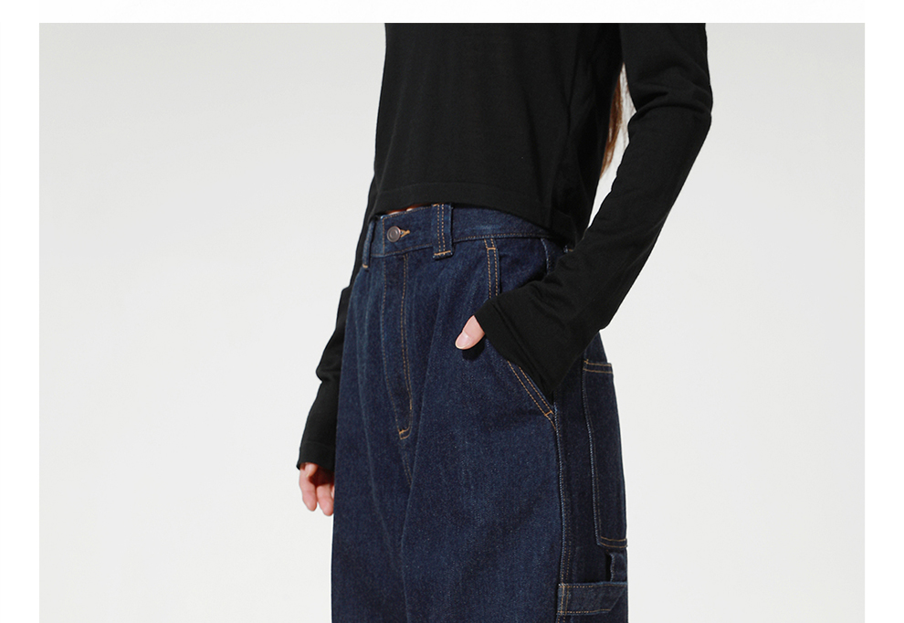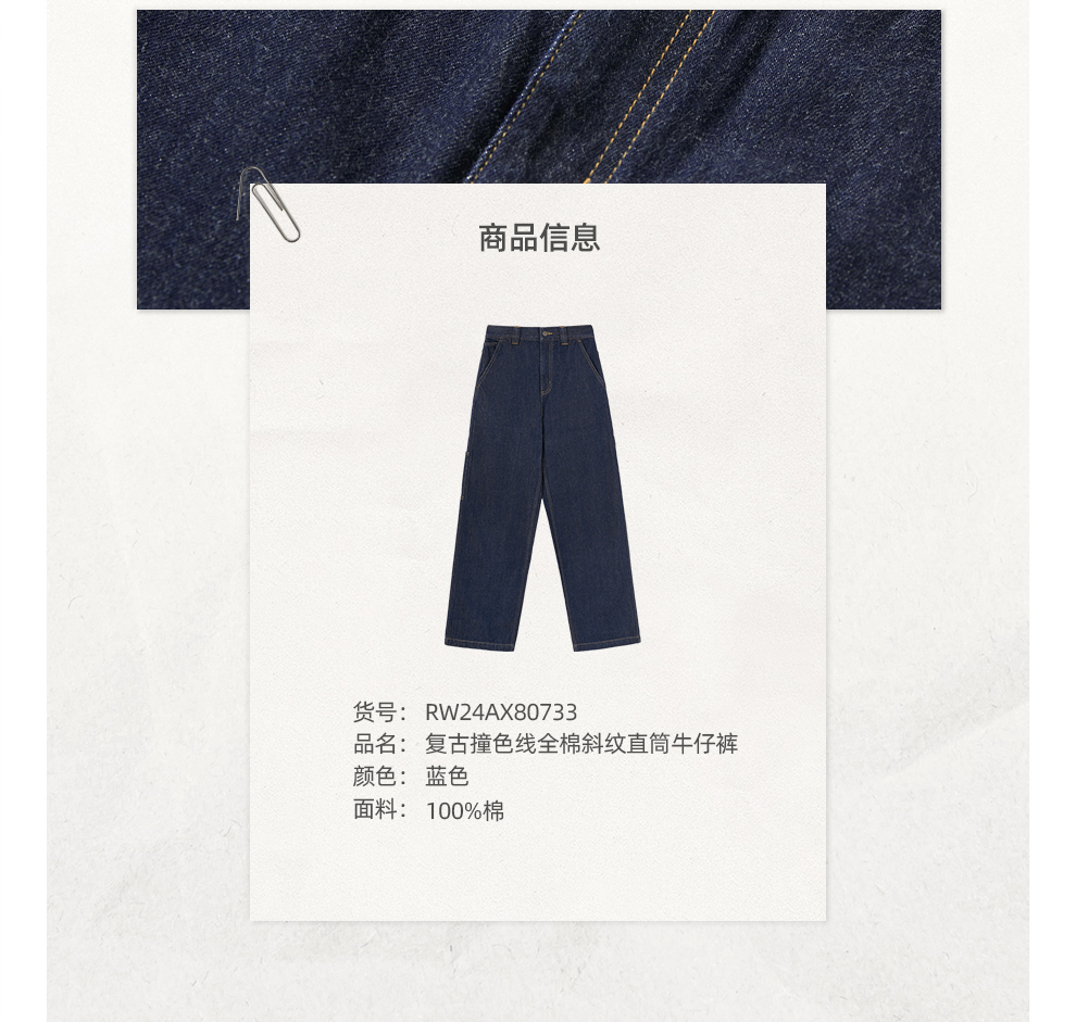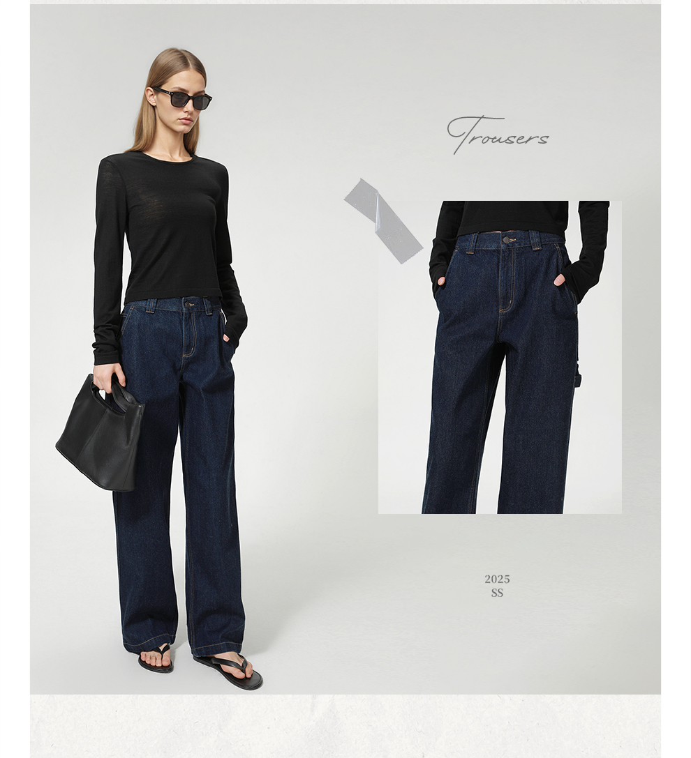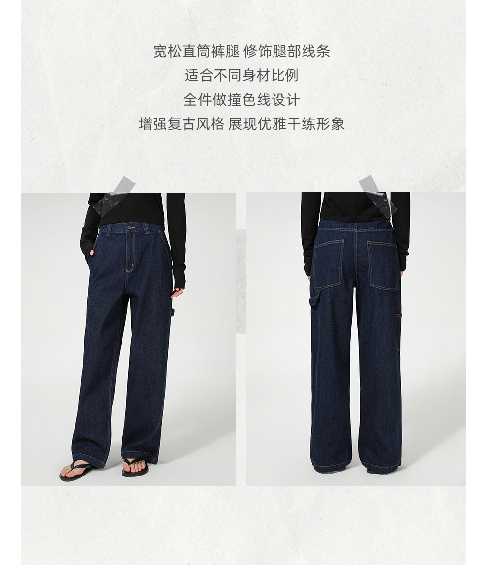 ROMI STUDIO“重磅丹宁”100%斜纹牛仔棉工装直筒牛仔裤RW24AX80733