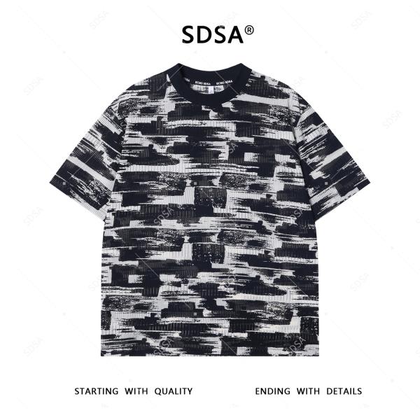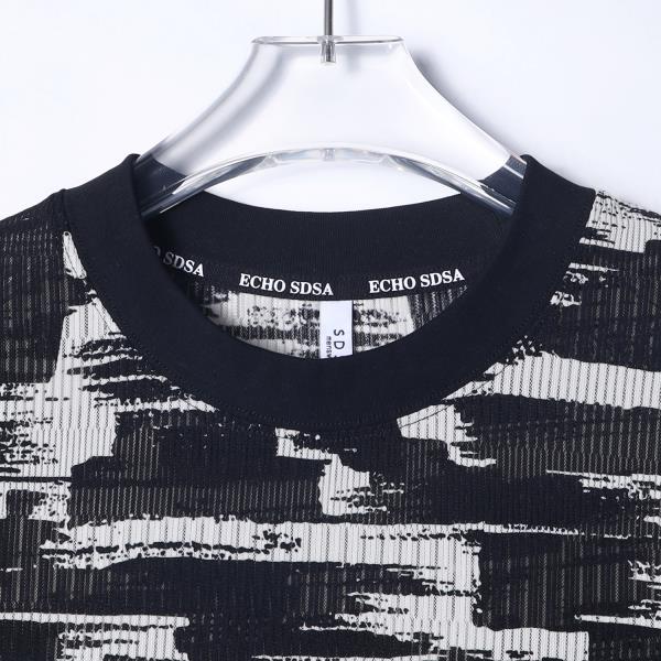 T3720夏季高级感新款男士痞帅撞色镂空短袖T恤时尚休闲宽松圆领上衣