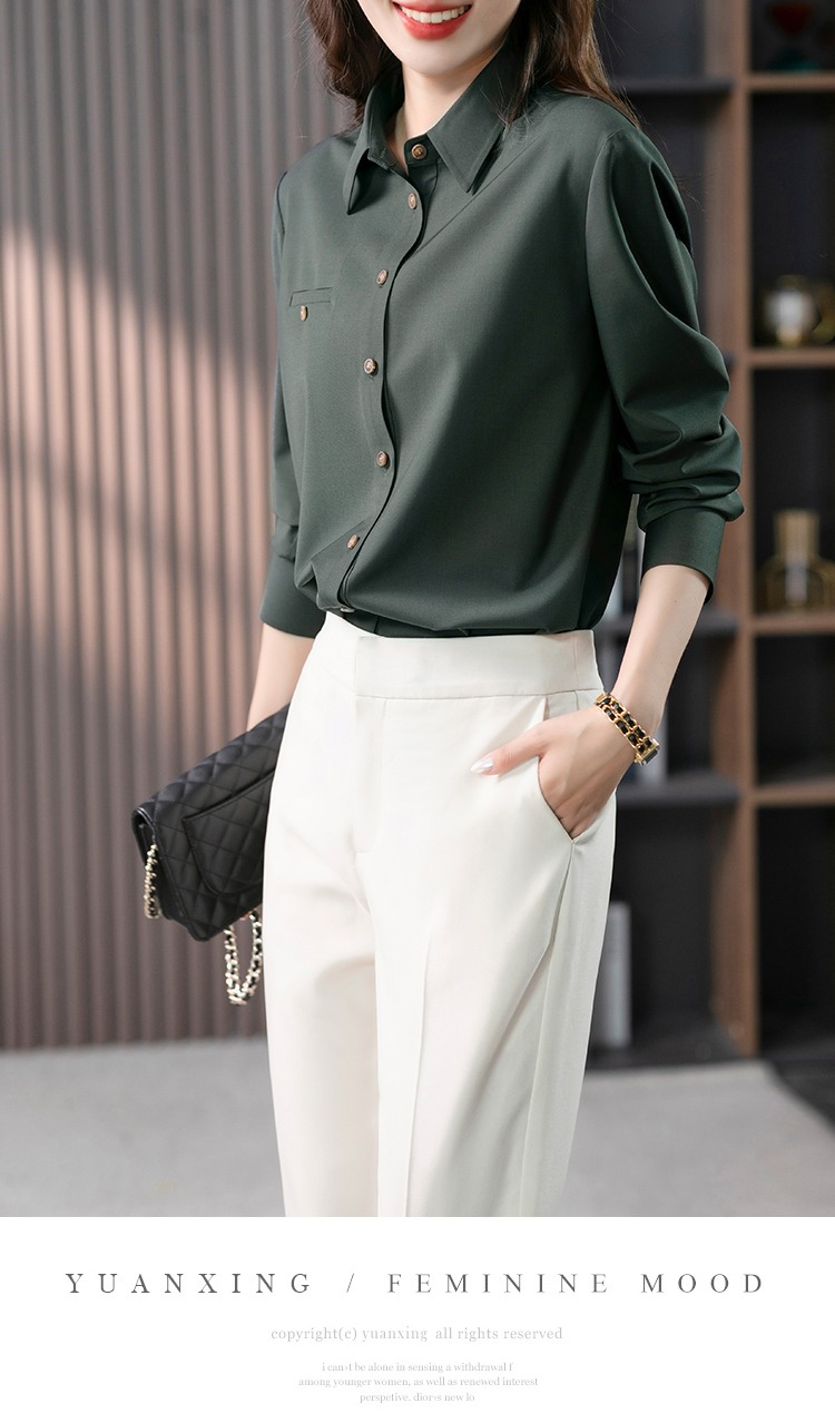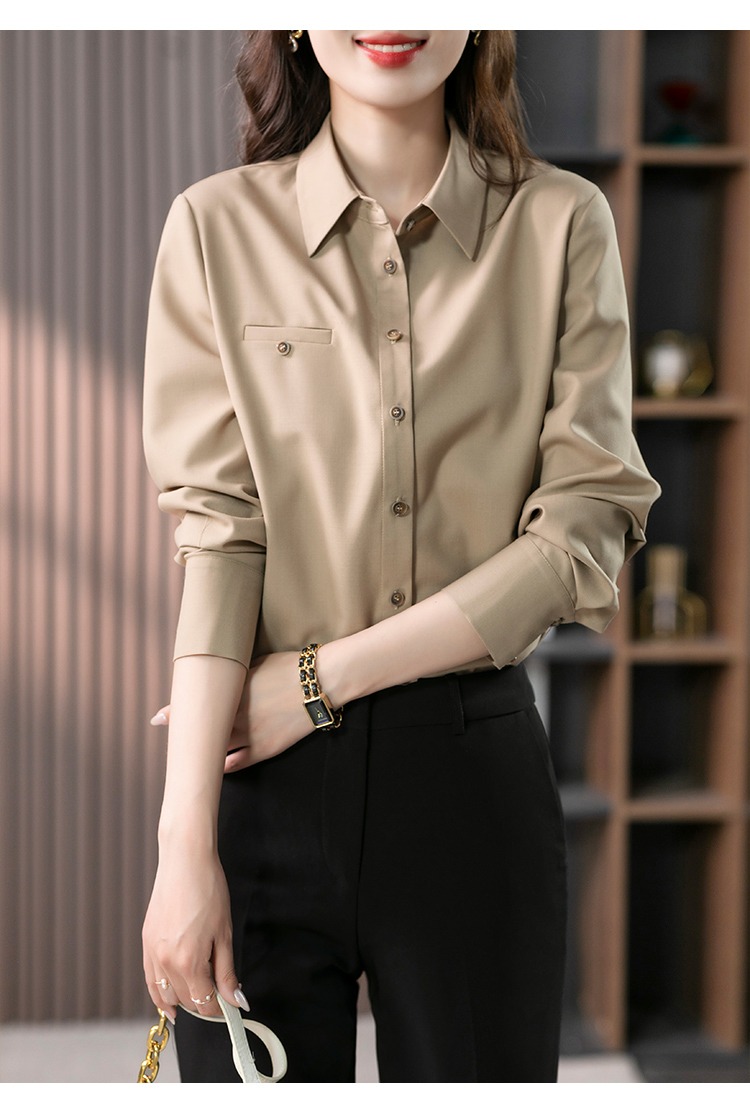 【现货7天】气质羊毛衬衫上衣女2023秋季新款韩版内搭小个子衬衣休闲洋气