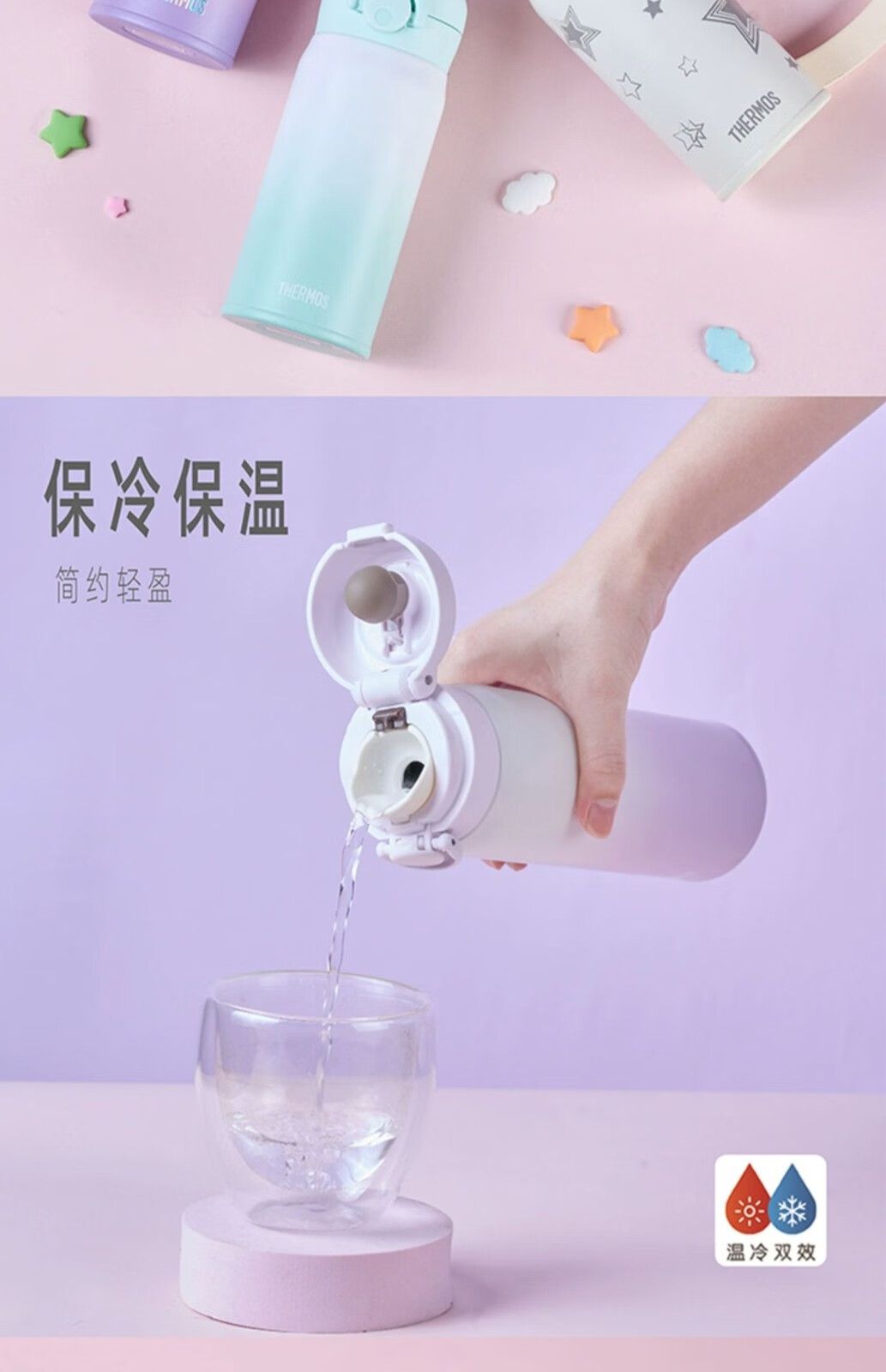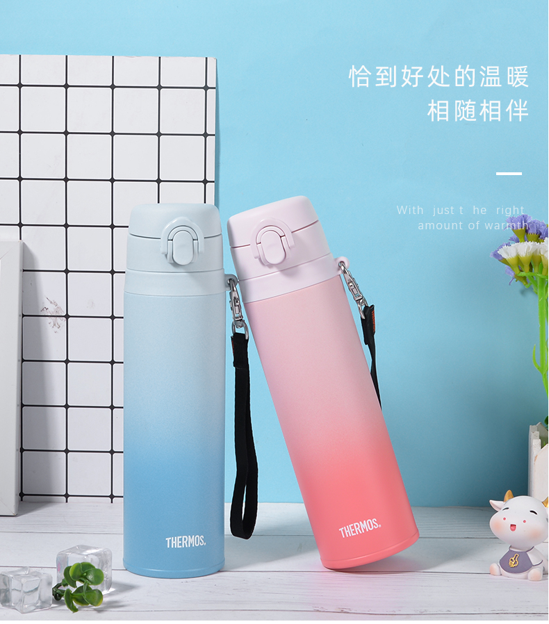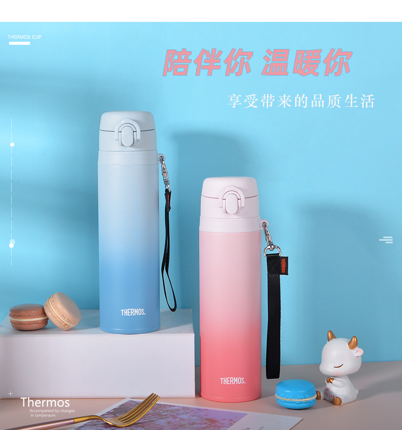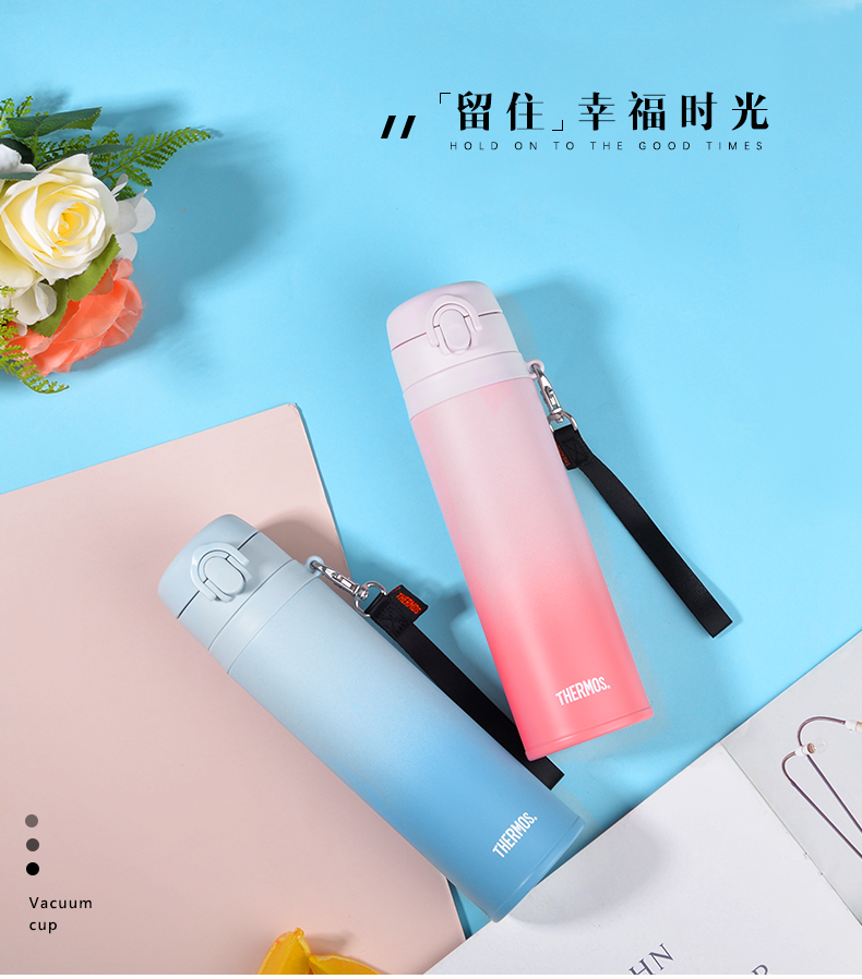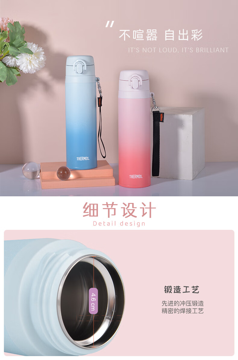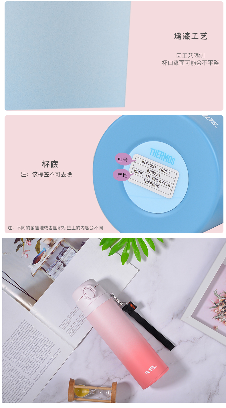 膳魔师THERMOS2023年新品304不锈钢渐变色保温杯带提绳便携男女学生水杯 JNT-551渐变粉 带提绳550毫升