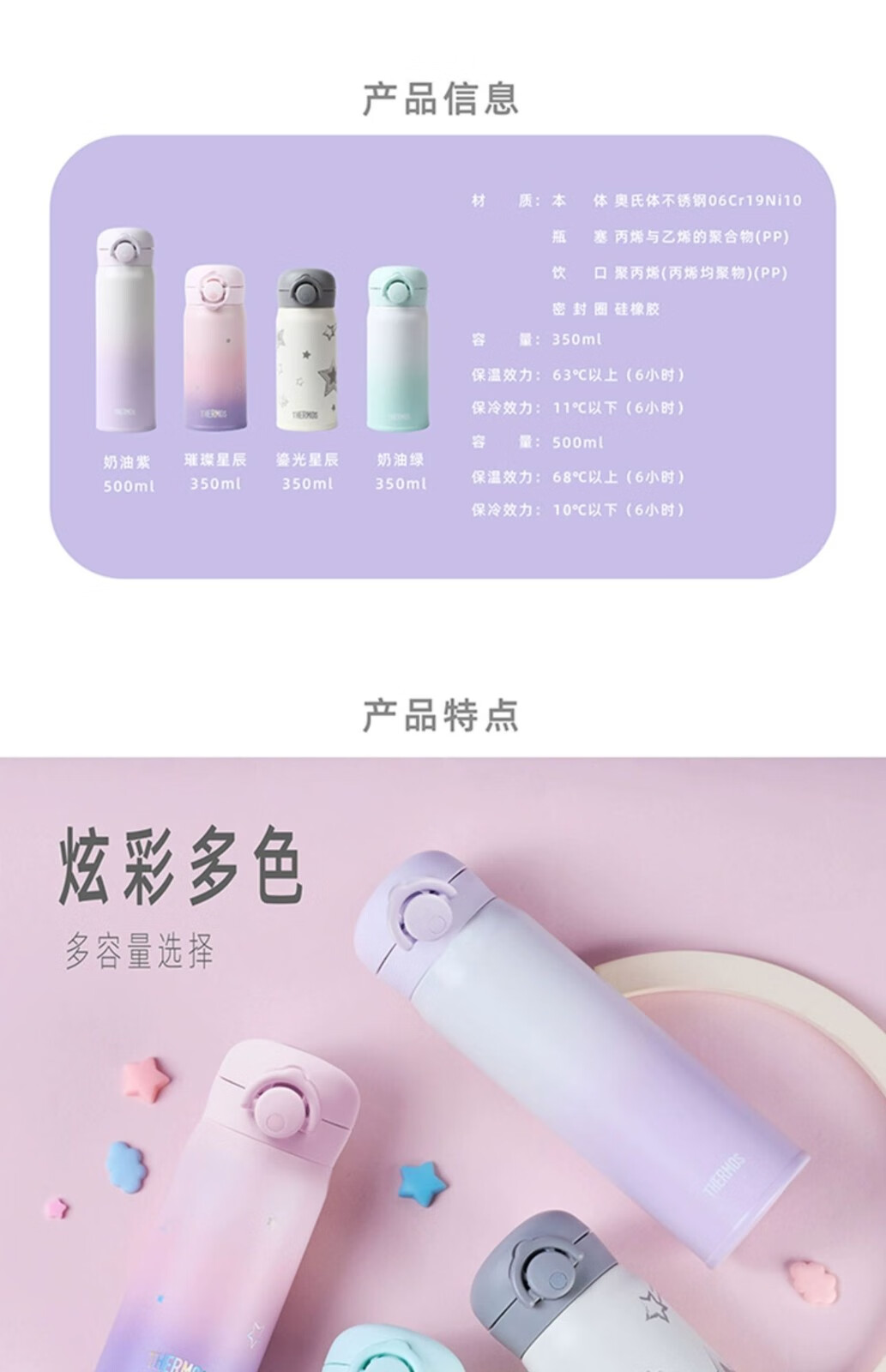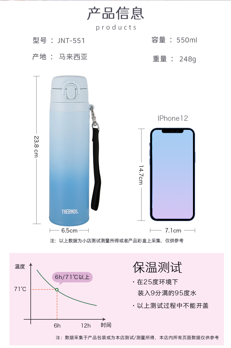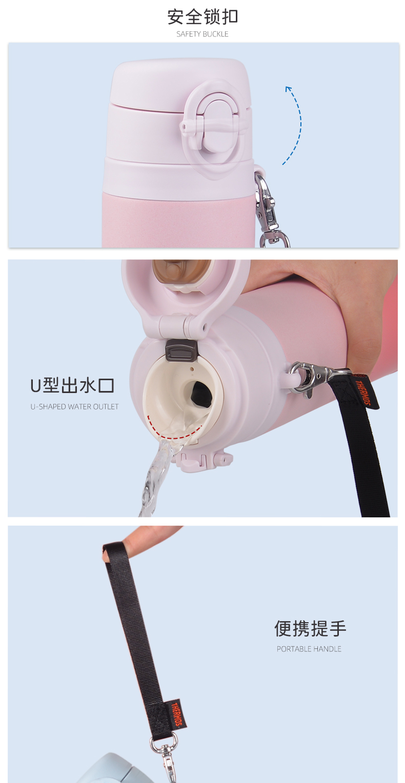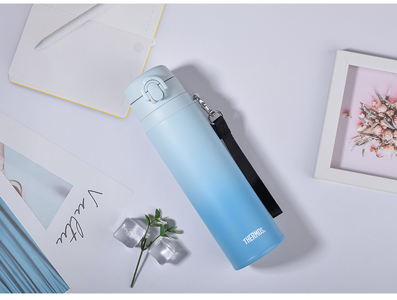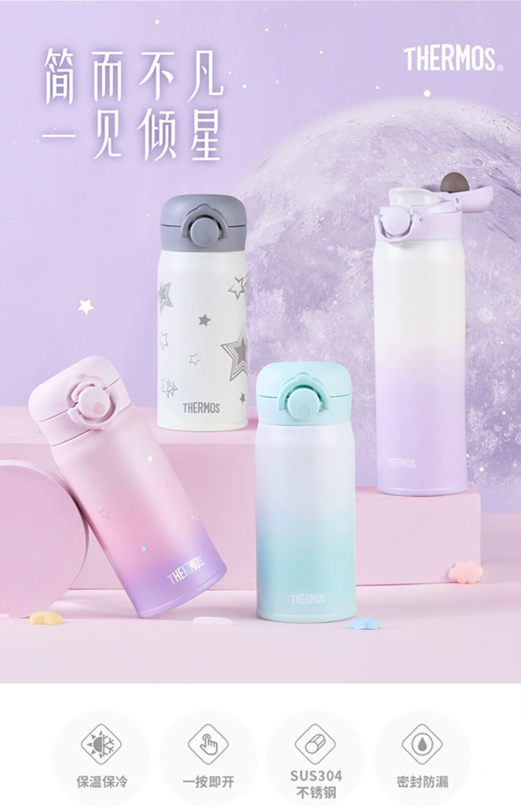 膳魔师THERMOS2023年新品304不锈钢渐变色保温杯带提绳便携男女学生水杯 JNT-551渐变粉 带提绳550毫升