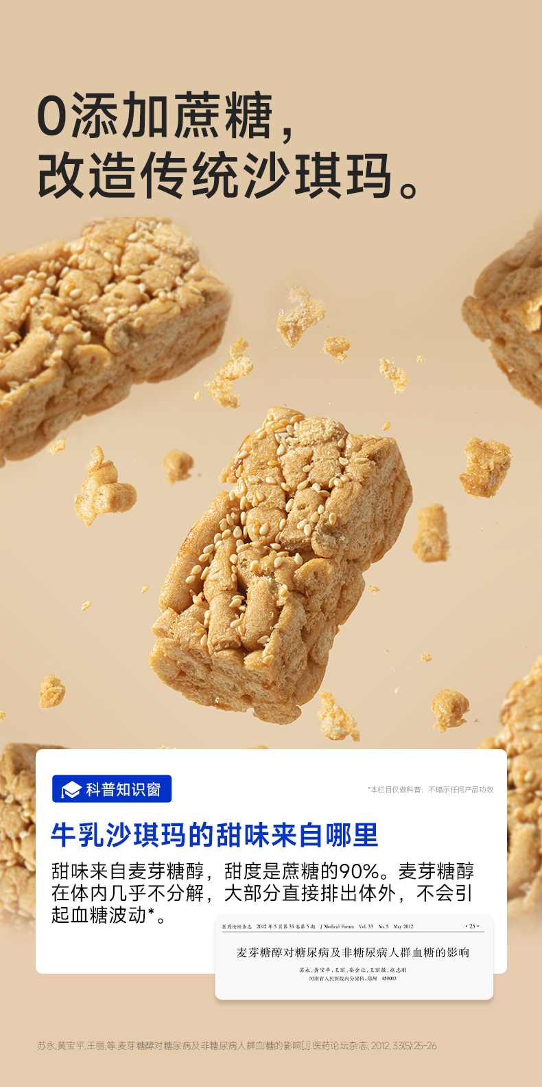 【9两健康】牛乳沙琪玛0蔗糖1盒145g9支装