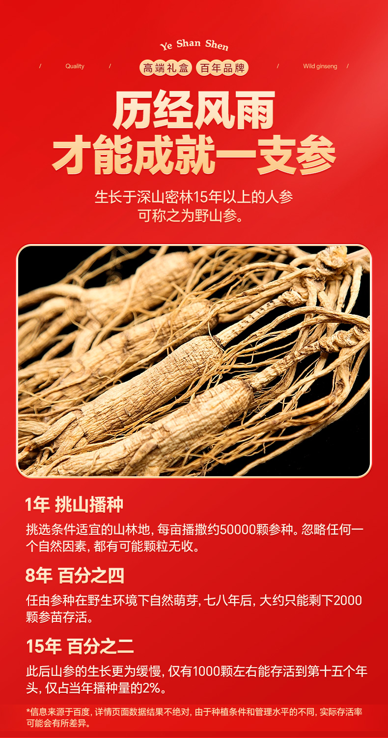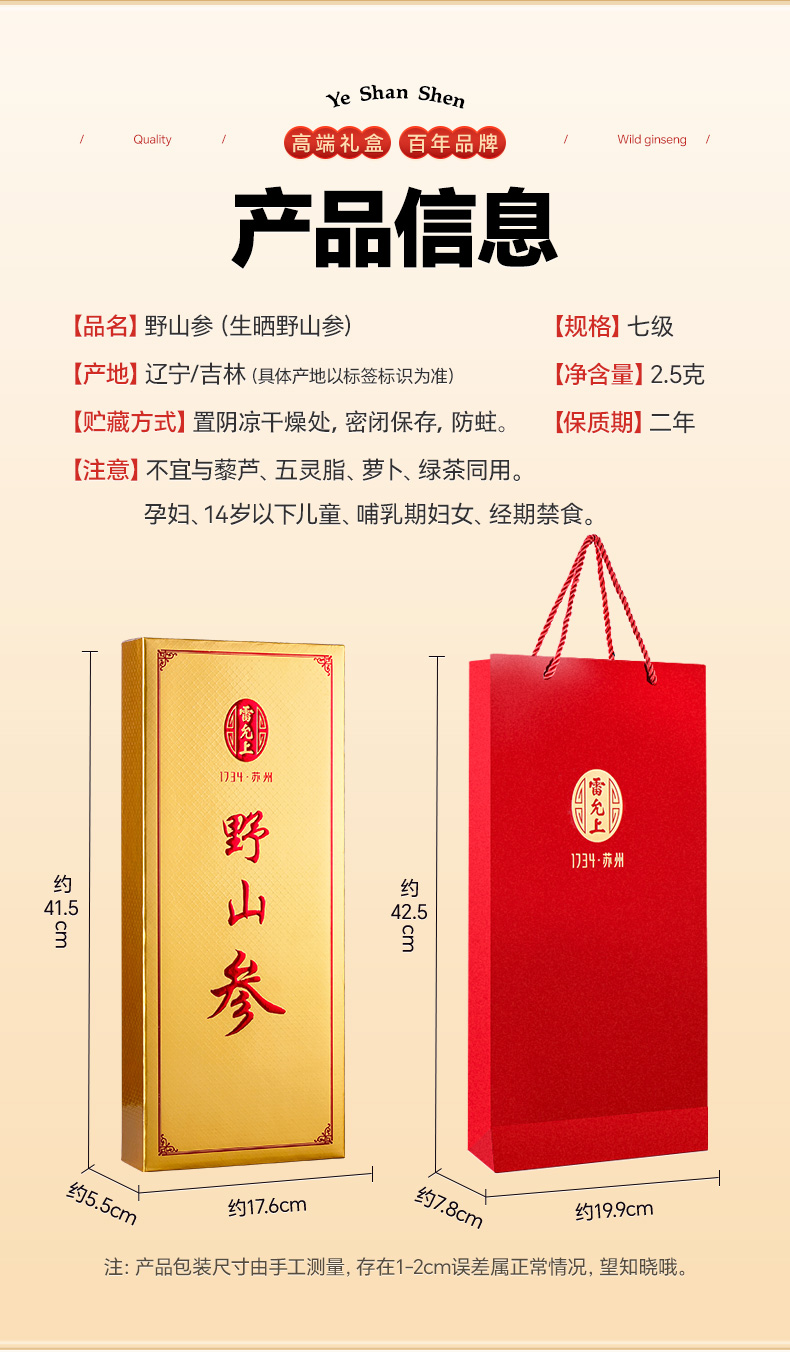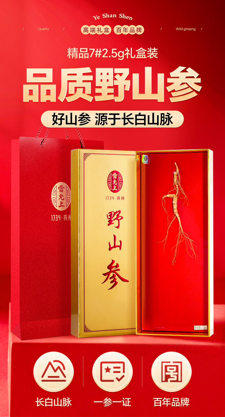 雷允上15年整支野山参2.5g/盒(二等七级)
