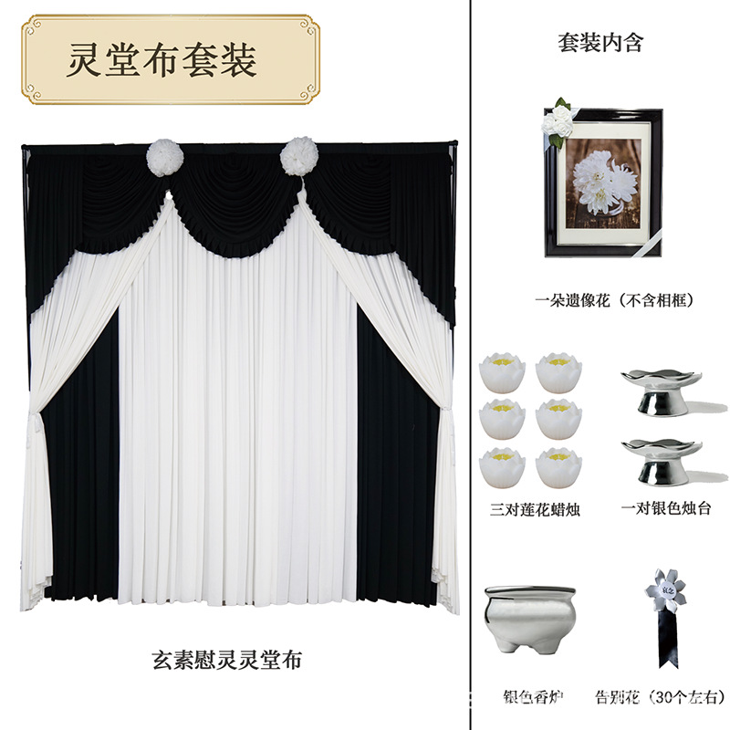 玄素慰灵灵堂布套装套装高级灵堂殡仪馆家用悼念灵堂布置套装(灵布、一朵遗像花,不含相框、三对莲花蜡烛、一对银色烛台、银色香炉、告别花,30个左右)