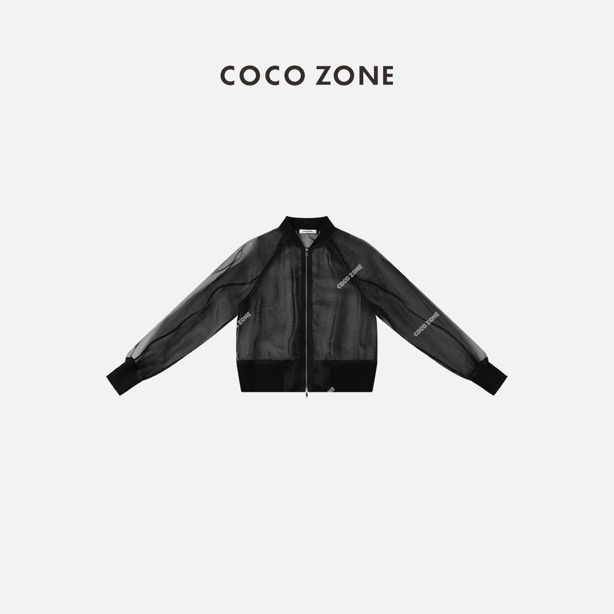 COCO ZONE 轻薄透明款拉链休闲外套罗纹袖口上衣 23C18675