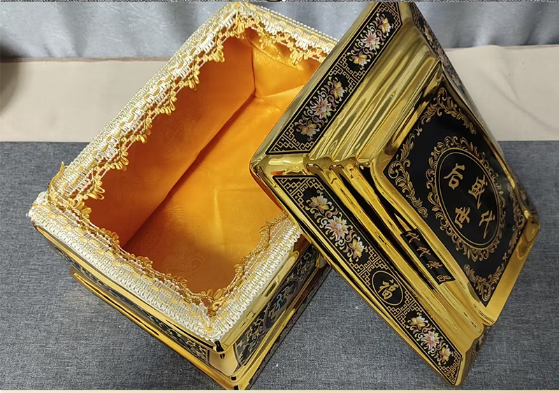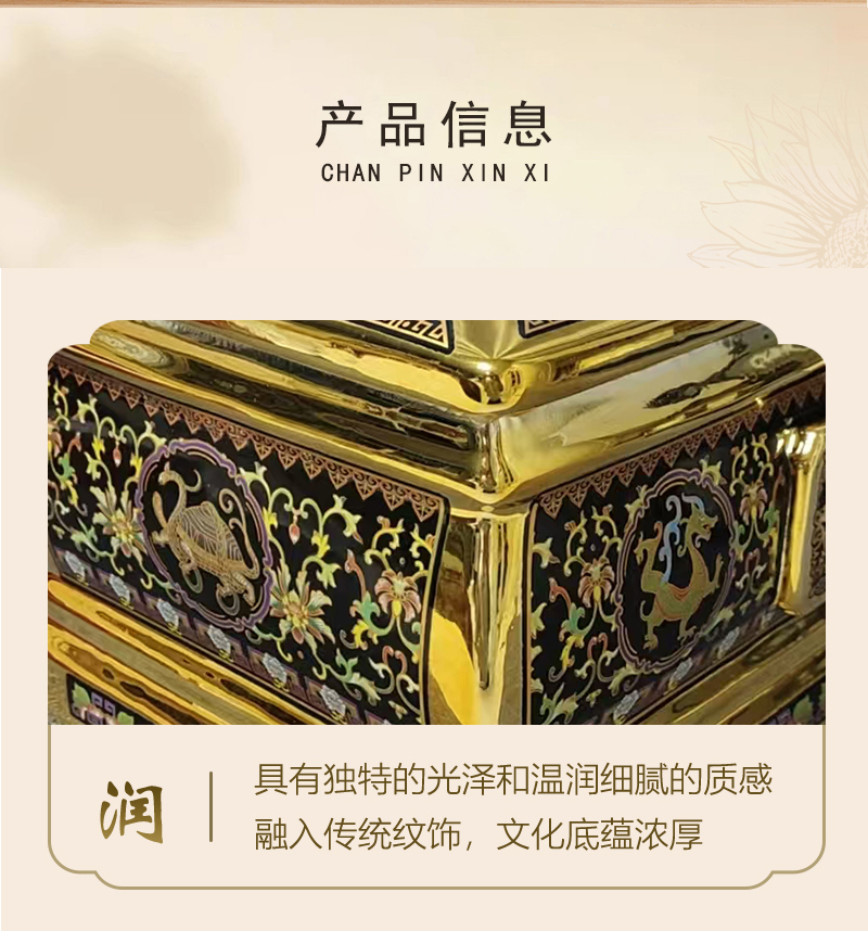 黄琉璃骨灰坛地藏王万字骨灰桶骨灰坛20*20cm