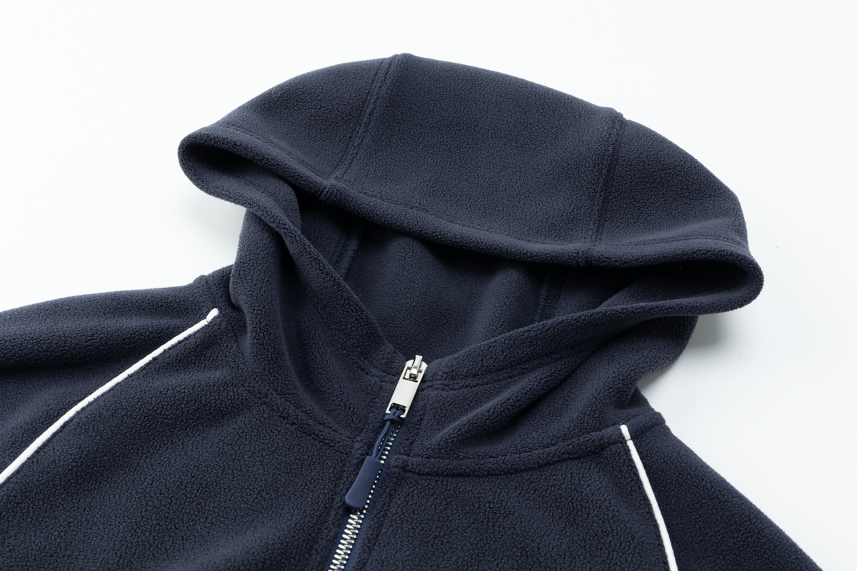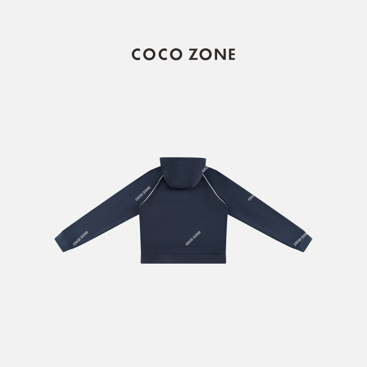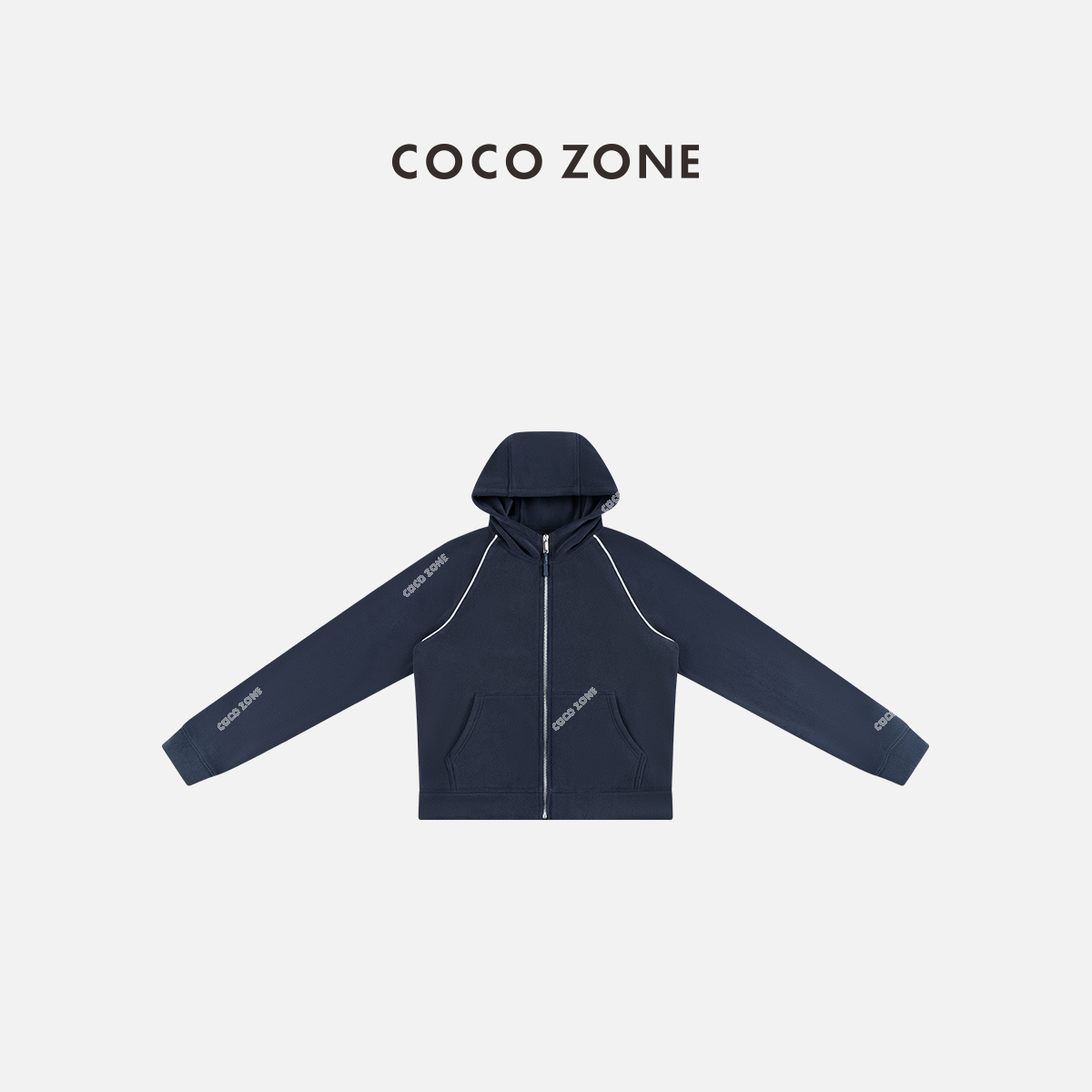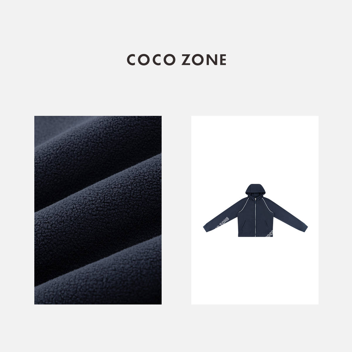COCO ZONE 秋季美式小摇粒绒撞色连帽拉链外套CC2D2954