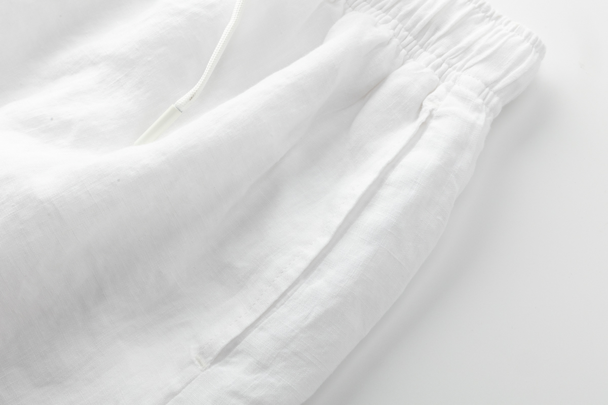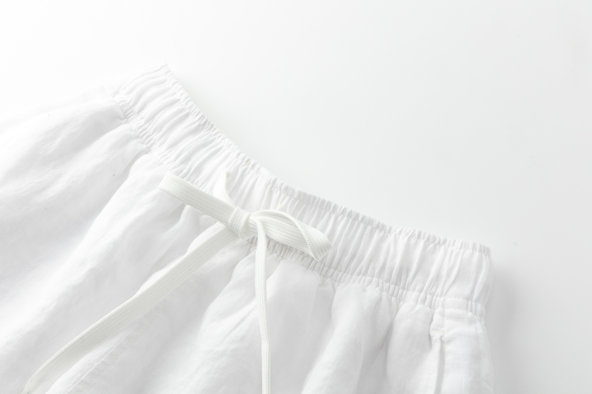 COCO ZONE 刘一一 100亚麻美式松紧腰抽绳运动休闲短裤CD1A0318